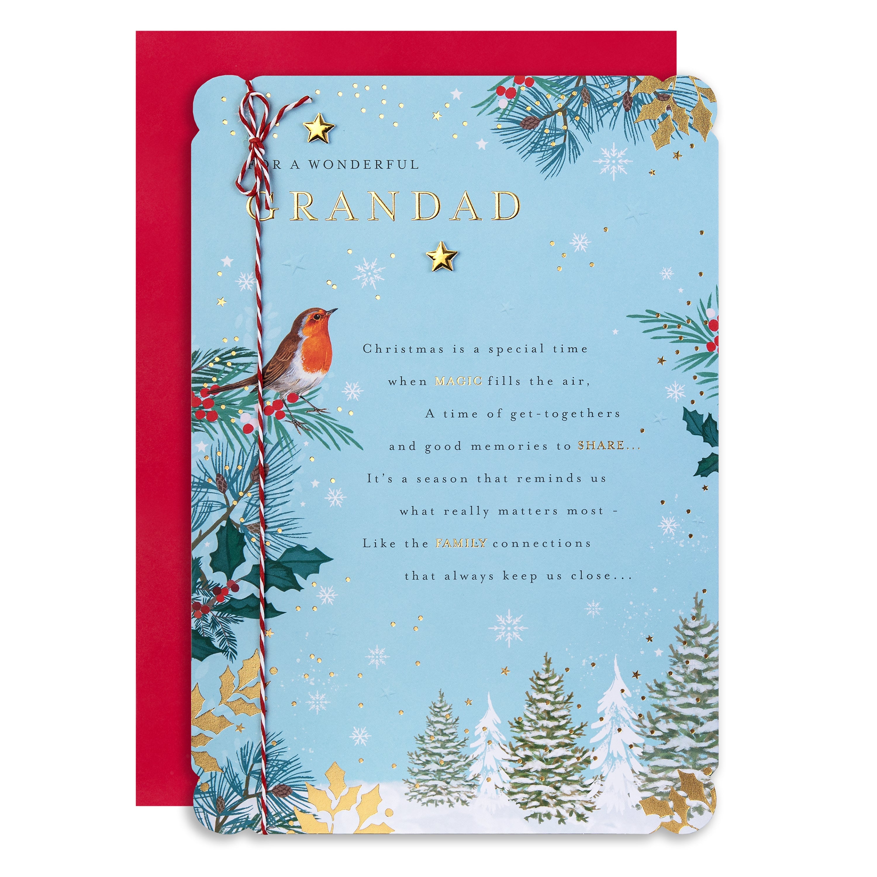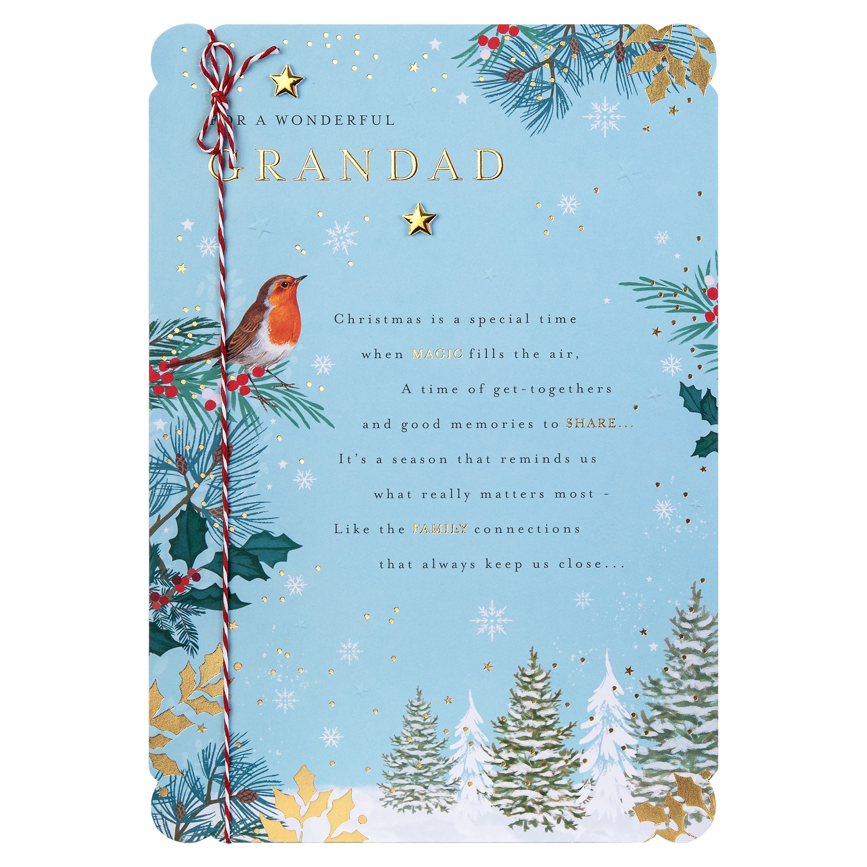 Message On Front Reads: For a wonderful Grandad Christmas is a special time when magic filled the air, A time of get-togethers and good memories to share… It’s a season that reminds us what really matters most - like the family connections that always keep us close…