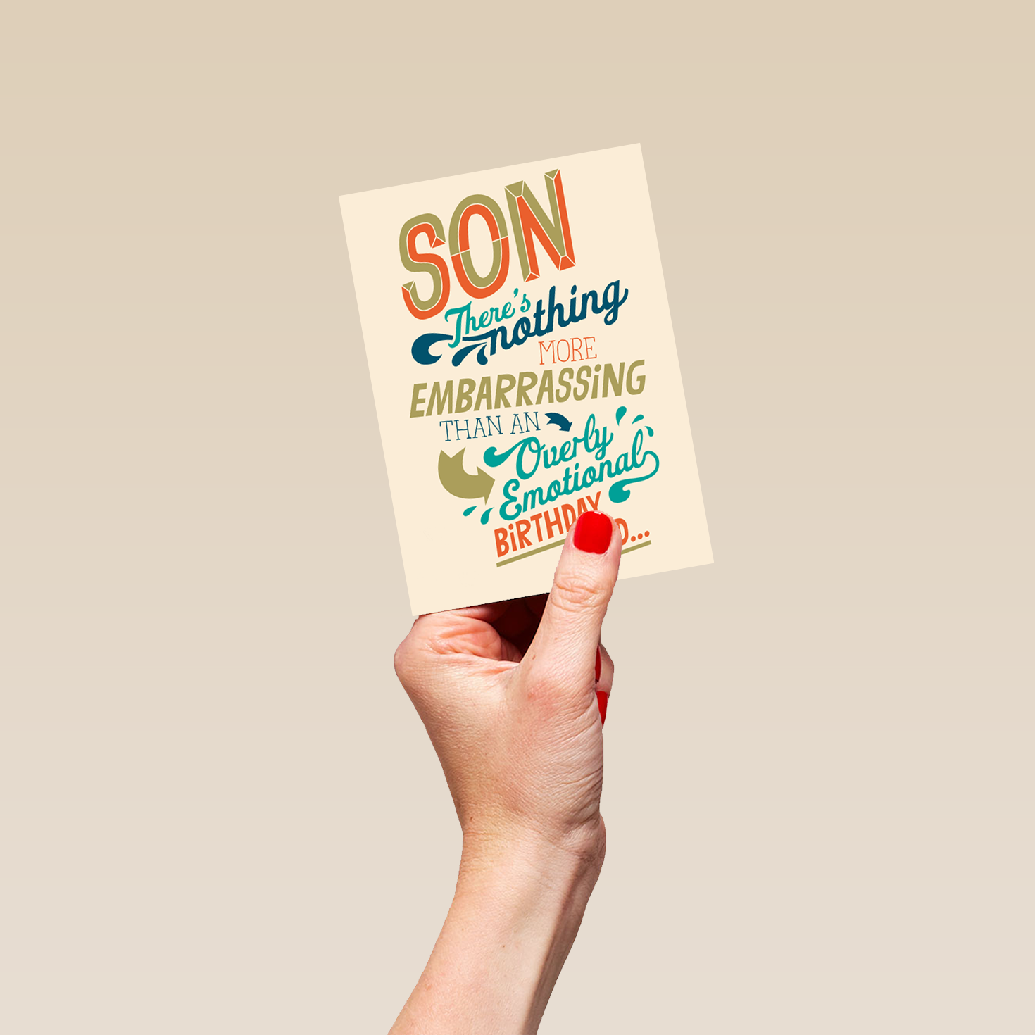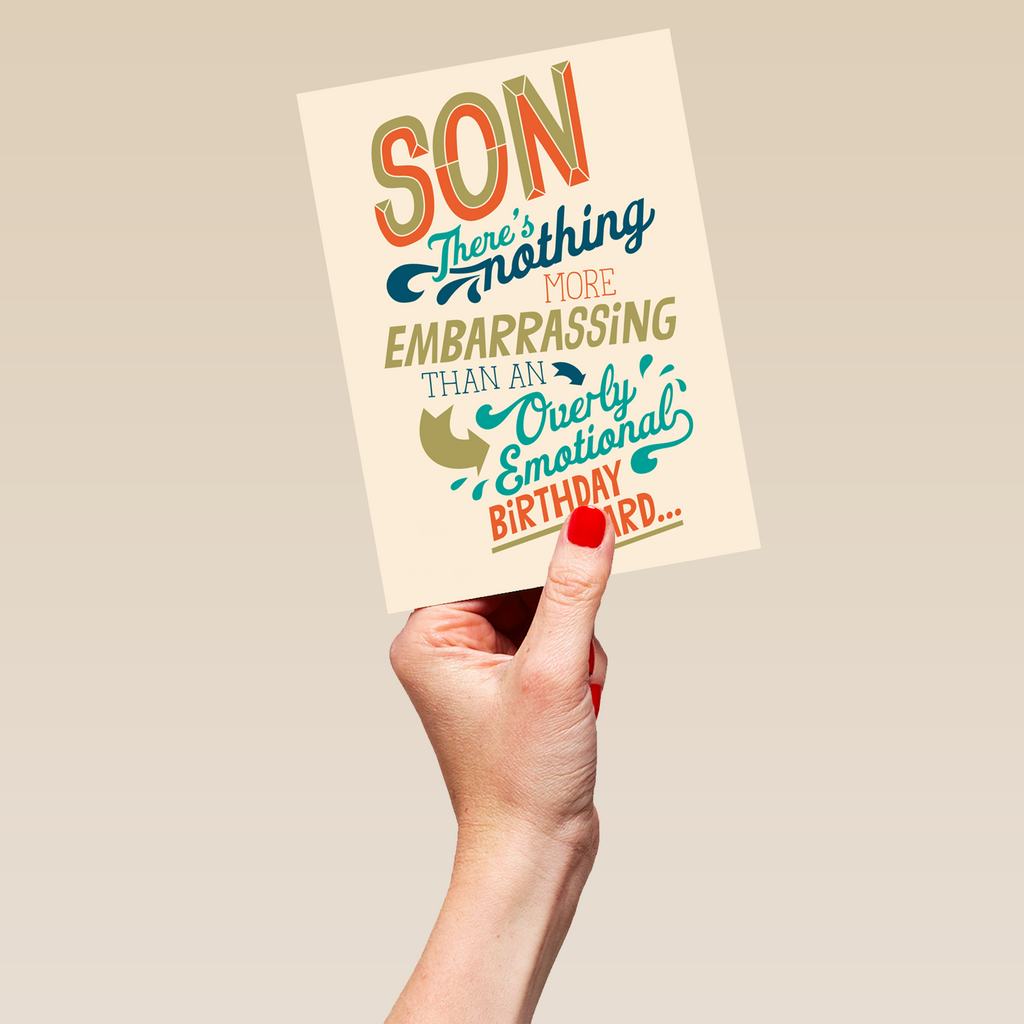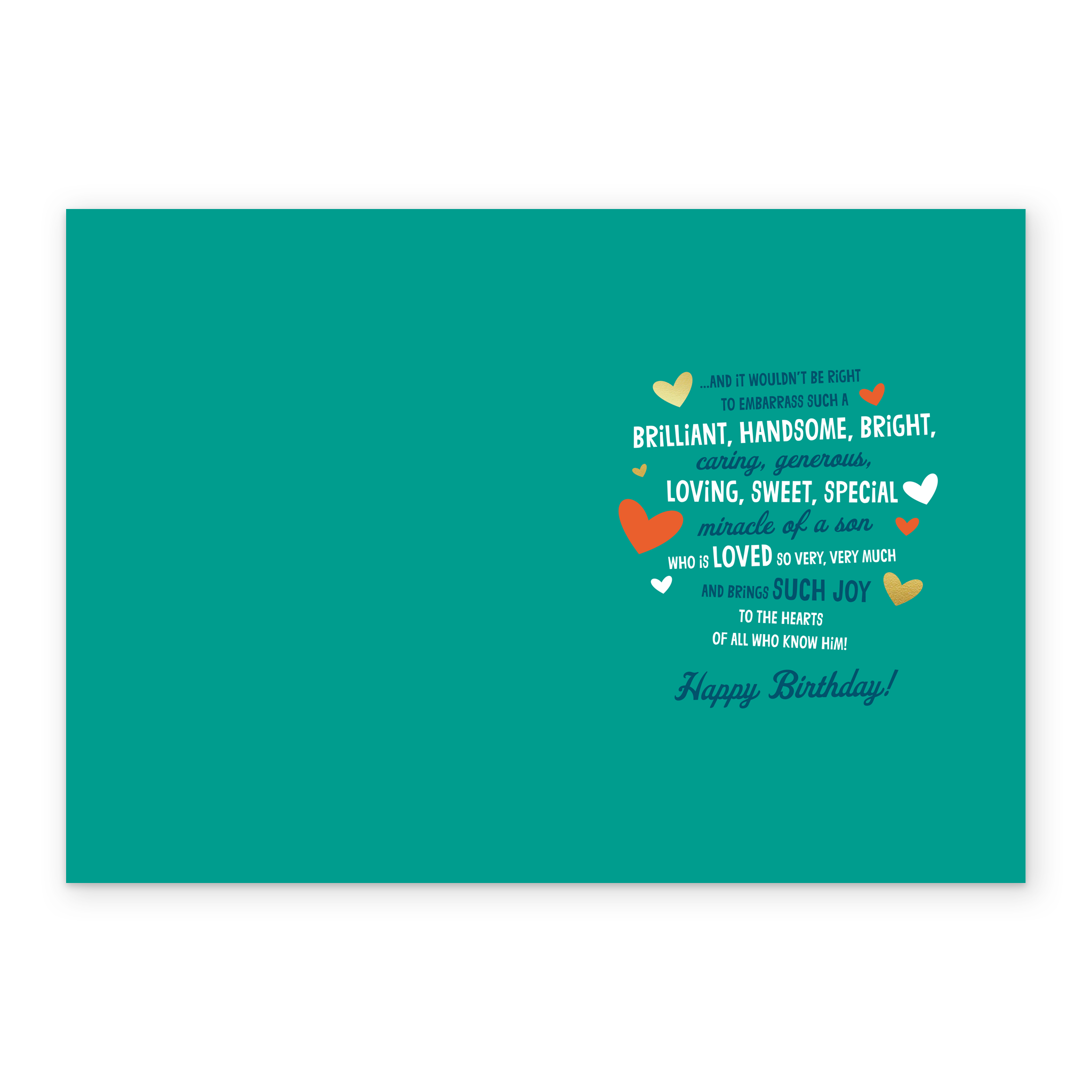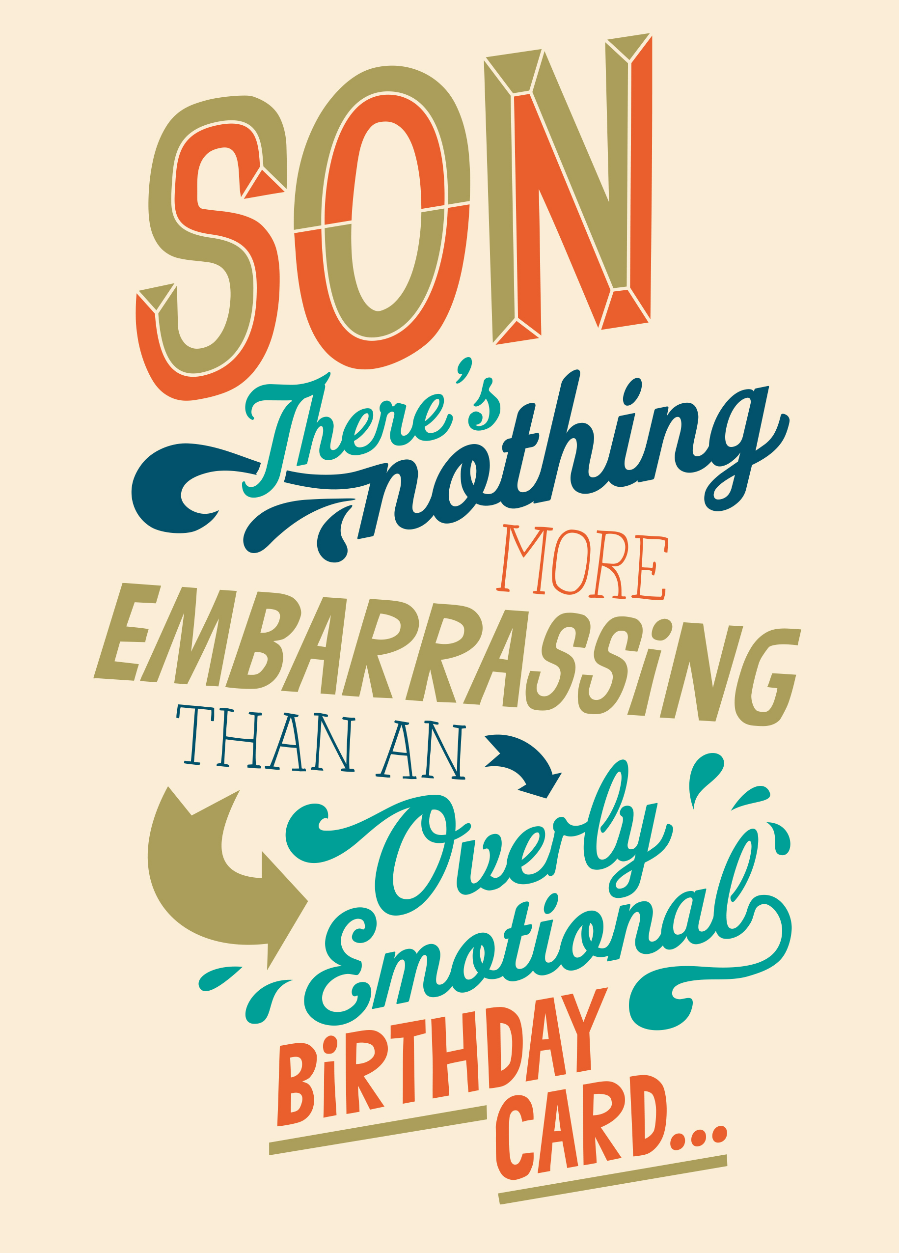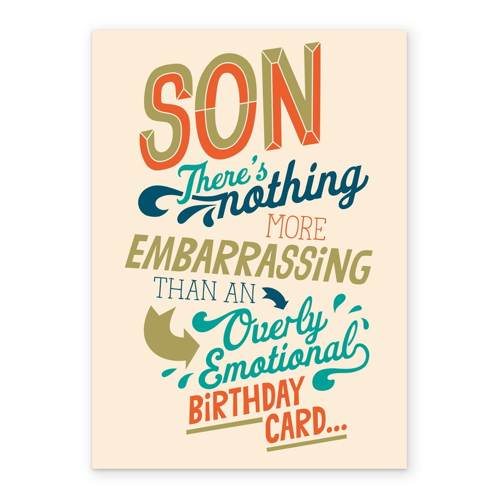 Show them you care with a personalised embarrassing son birthday card from Hallmark. Our birthday cards are printed on premium quality, FSC®-certified card & delivered nationwide. This card is available as standard 12cm by 16.7cm and large 15.5cm by 21.6cm.