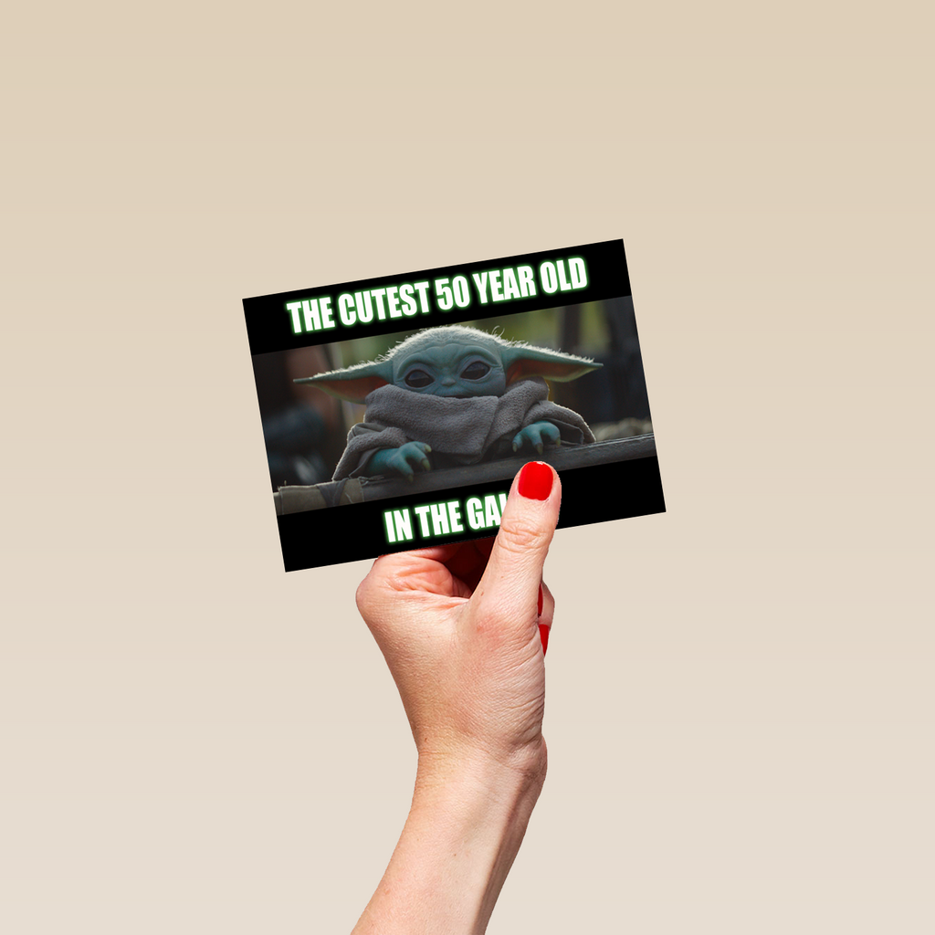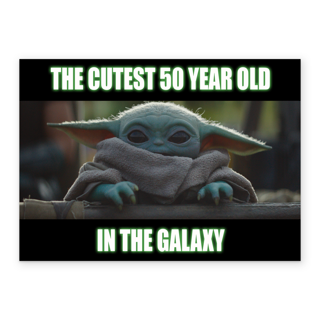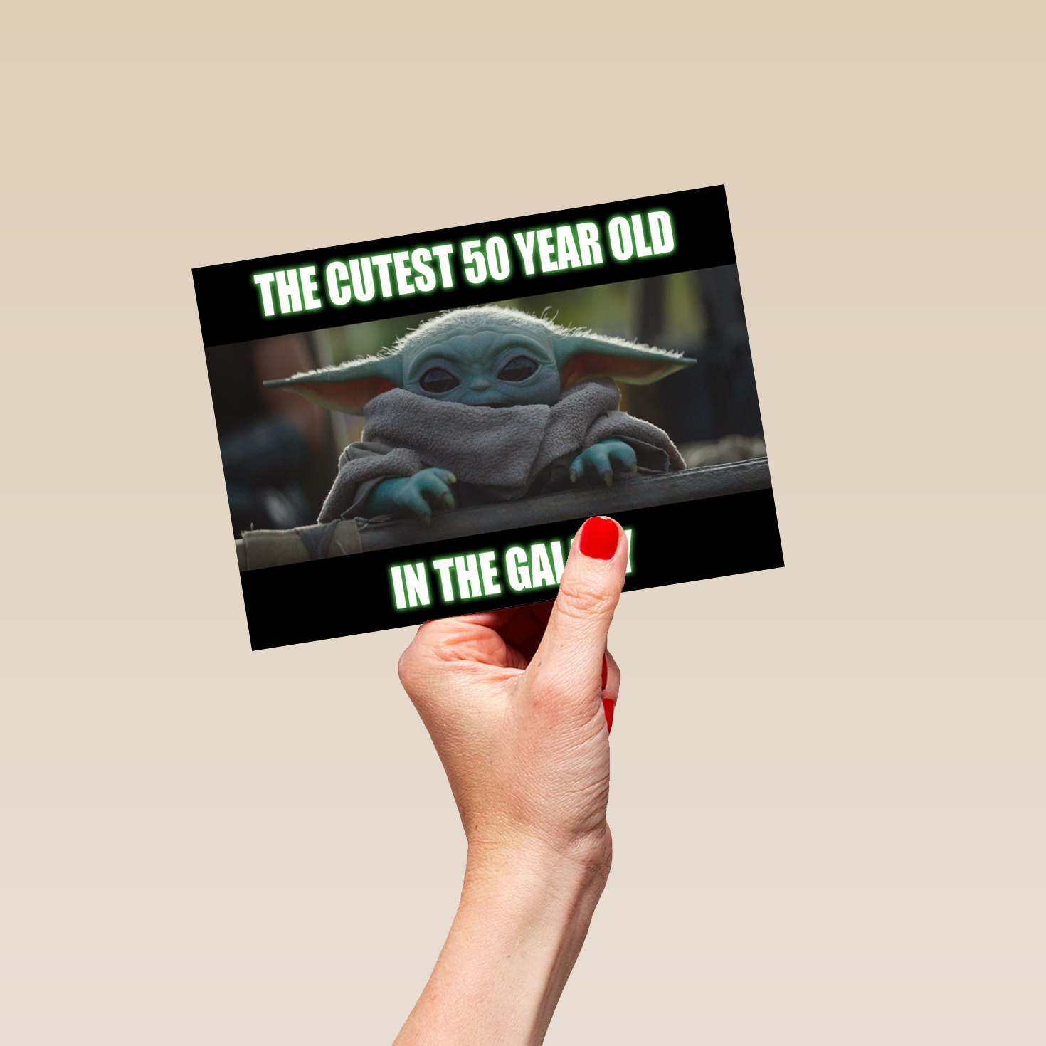 Printed on premium-quality board, this card features a cute image of Grogu™ from The Mandalorian™, with the message ‘The cutest 50 year old in the galaxy', and comes complete with a co-ordinating white envelope.