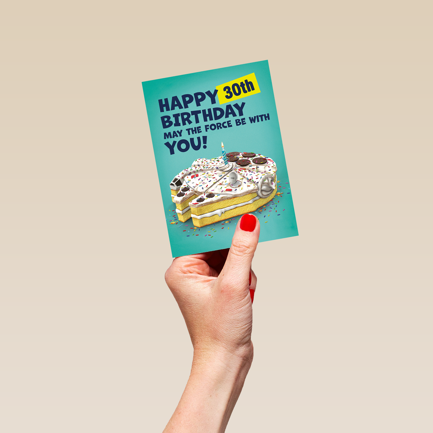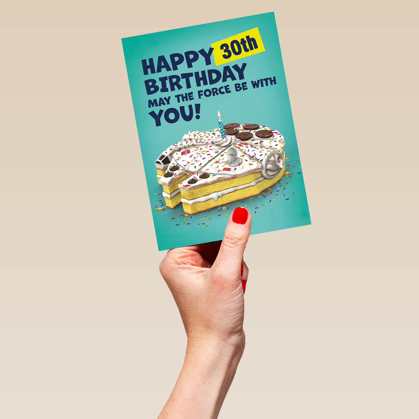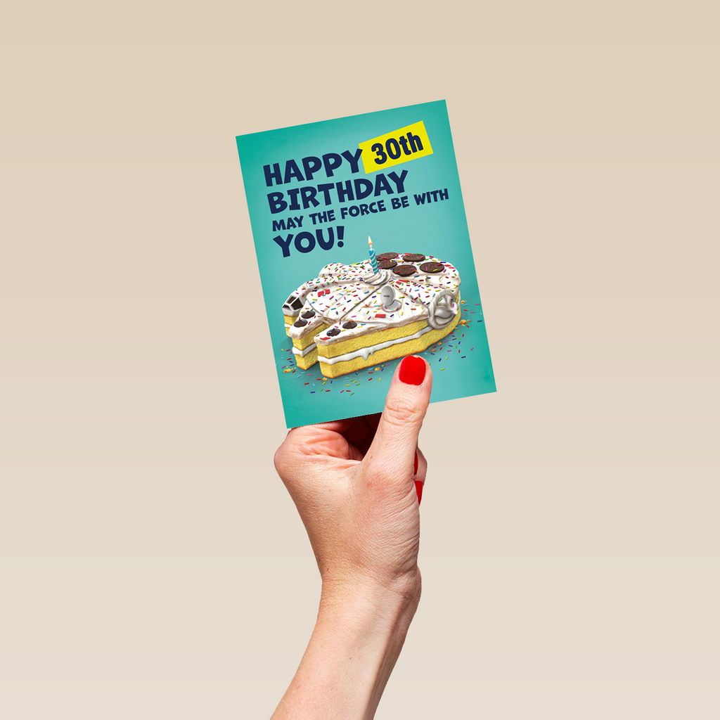 Wish them a brilliant 30th Birthday and make sure they have a blast, with this awesome personalised and editable 30th Birthday card inspired by Star Wars™. The perfect way to combine their two favourite things, Star Wars™ and cake!