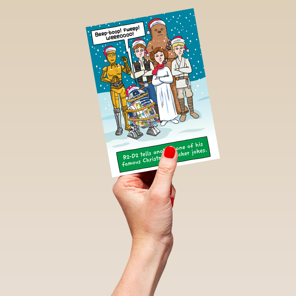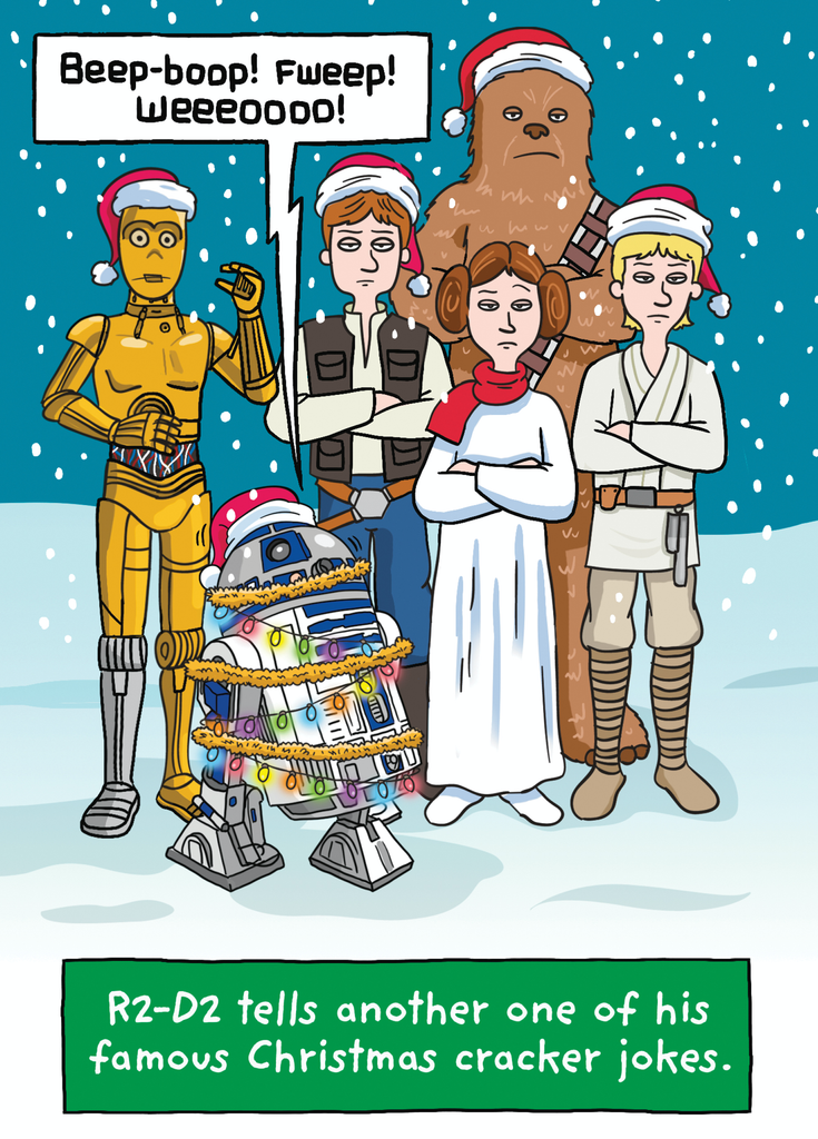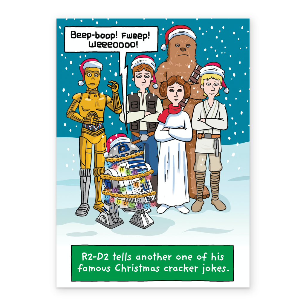 Show them you care with a personalised funny Star Wars™ Christmas card from Hallmark. Our Christmas cards are printed on premium quality, FSC®-certified card & delivered nationwide. This card is available as standard 12cm by 16.7cm and large 15.5cm by 21.6cm.