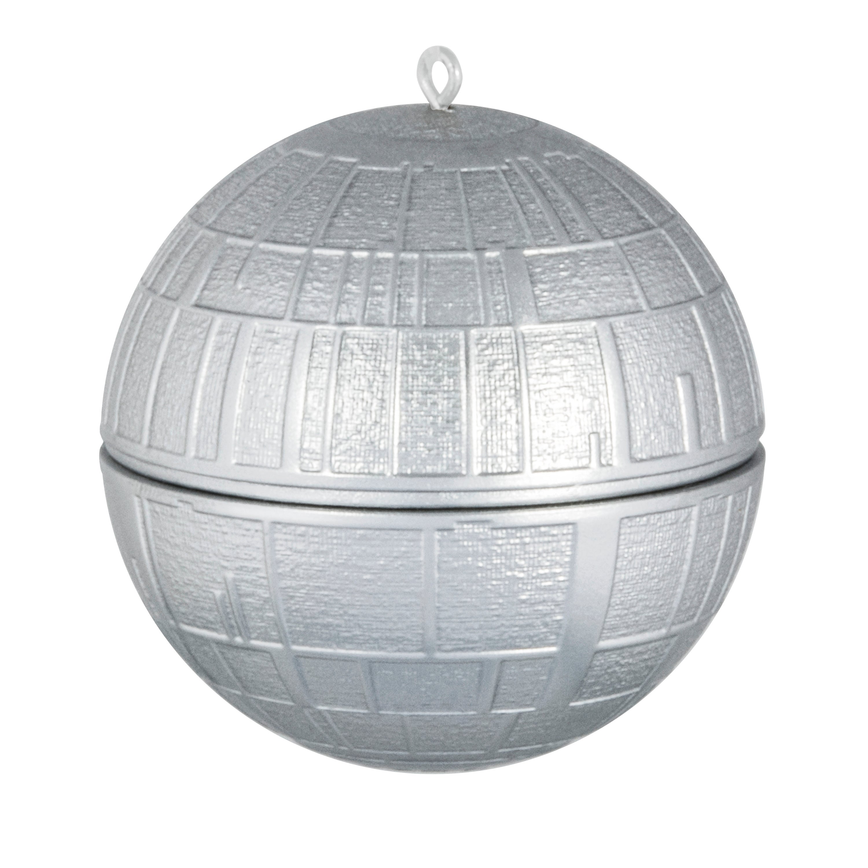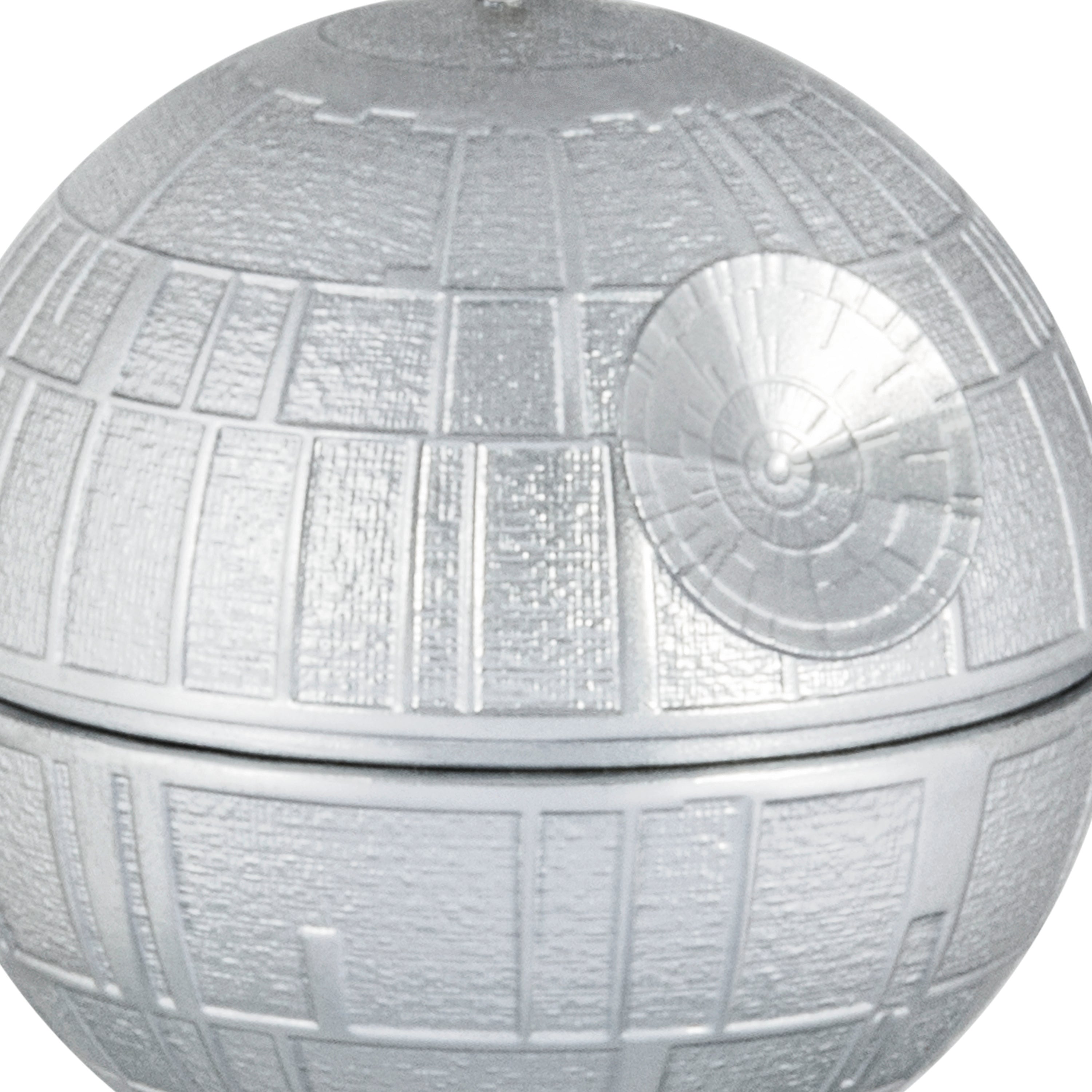 This Keepsake Hanging Ornament is made from hard-wearing resin and features the Death Star from Star Wars™ with a shiny silver finish. This hanging ornament includes a hanger attachment and gift box.