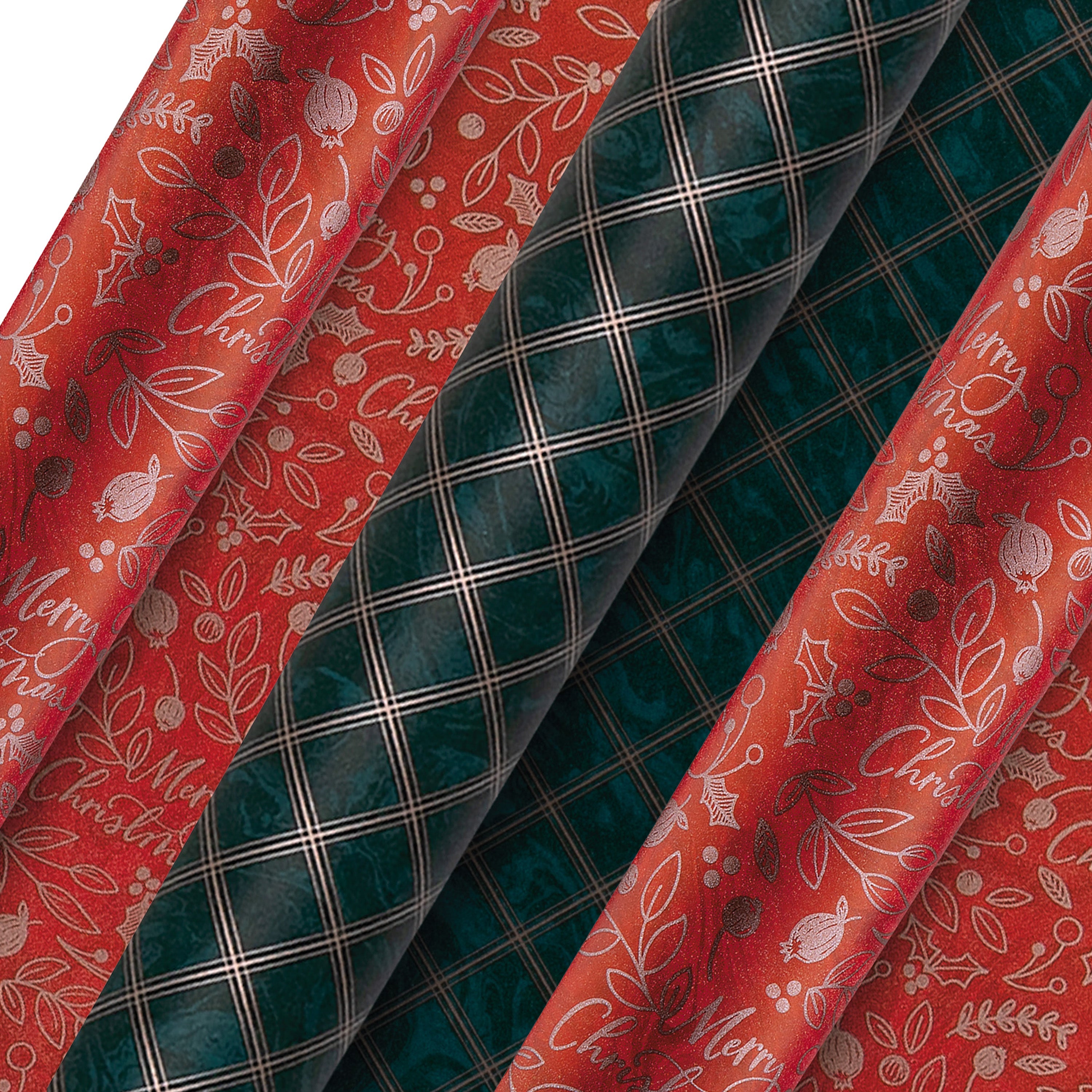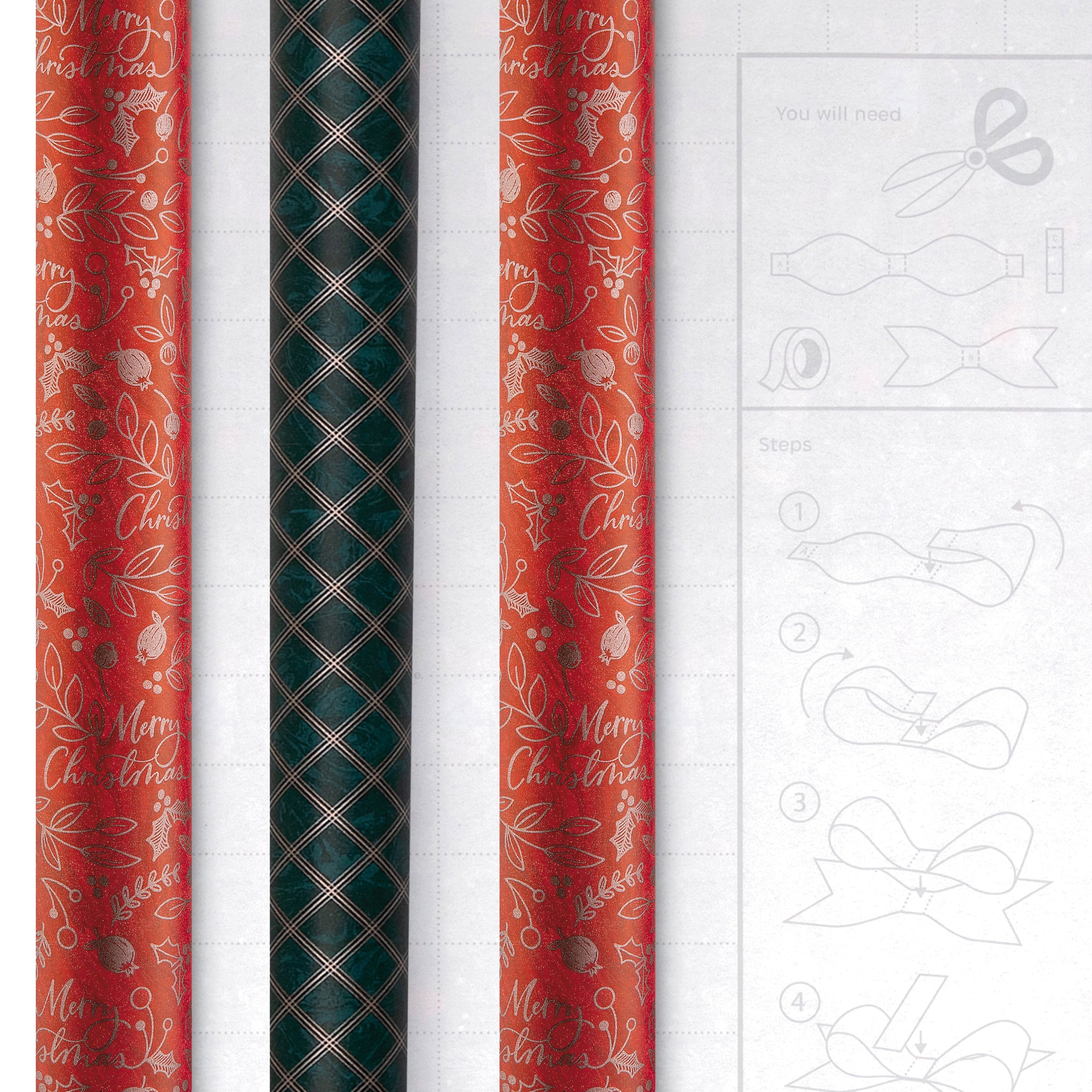 9M Classic Red & Green Christmas Wrapping Paper Multipack - 3 x 3M Rolls