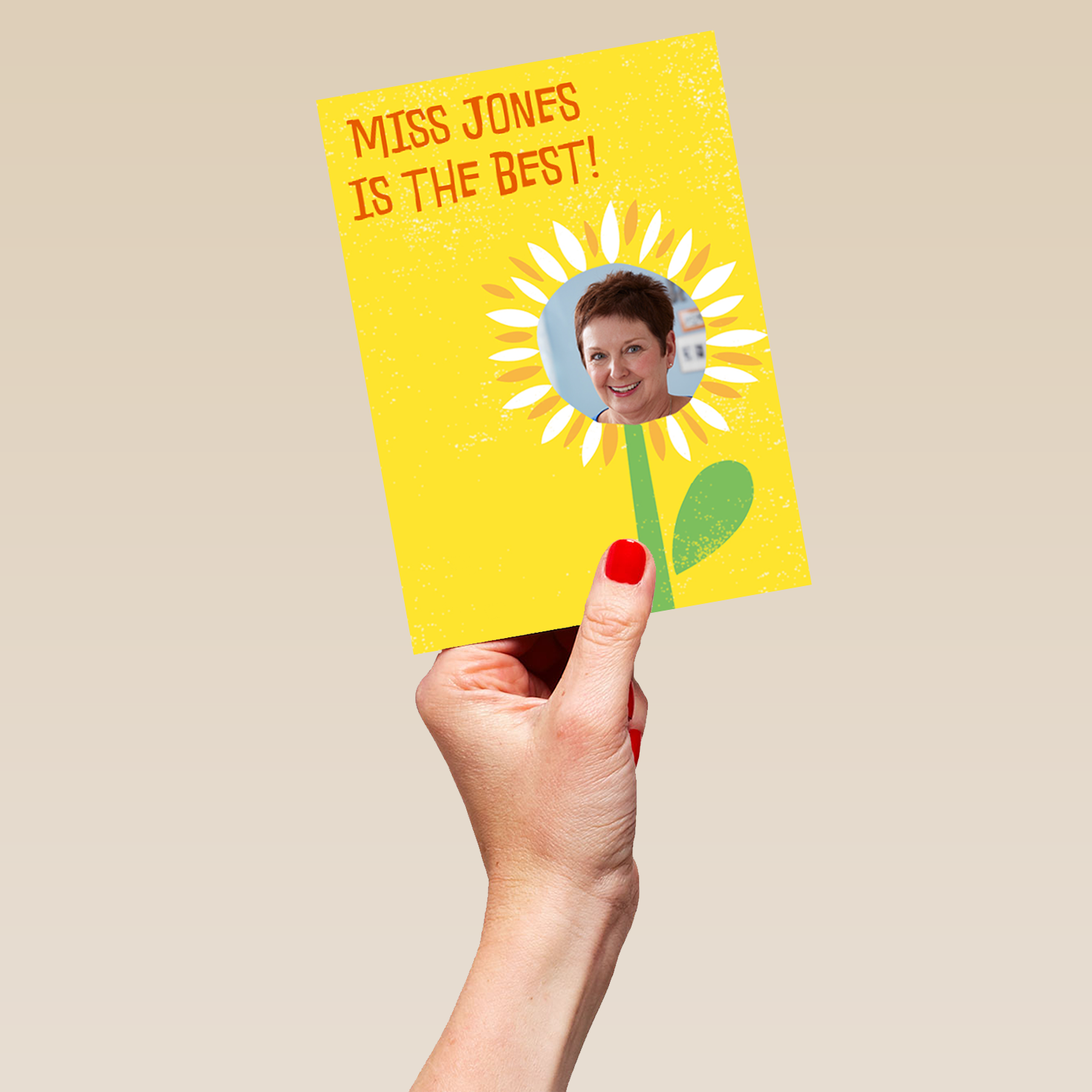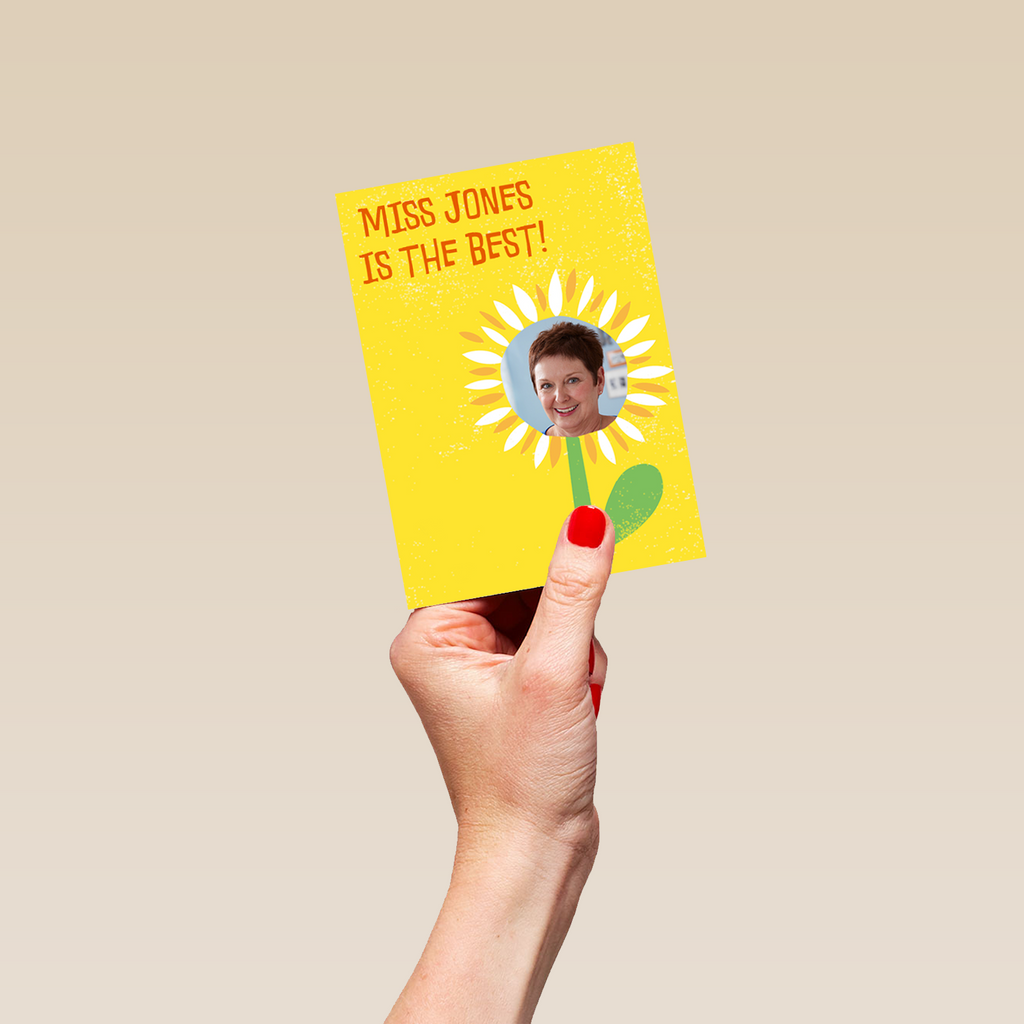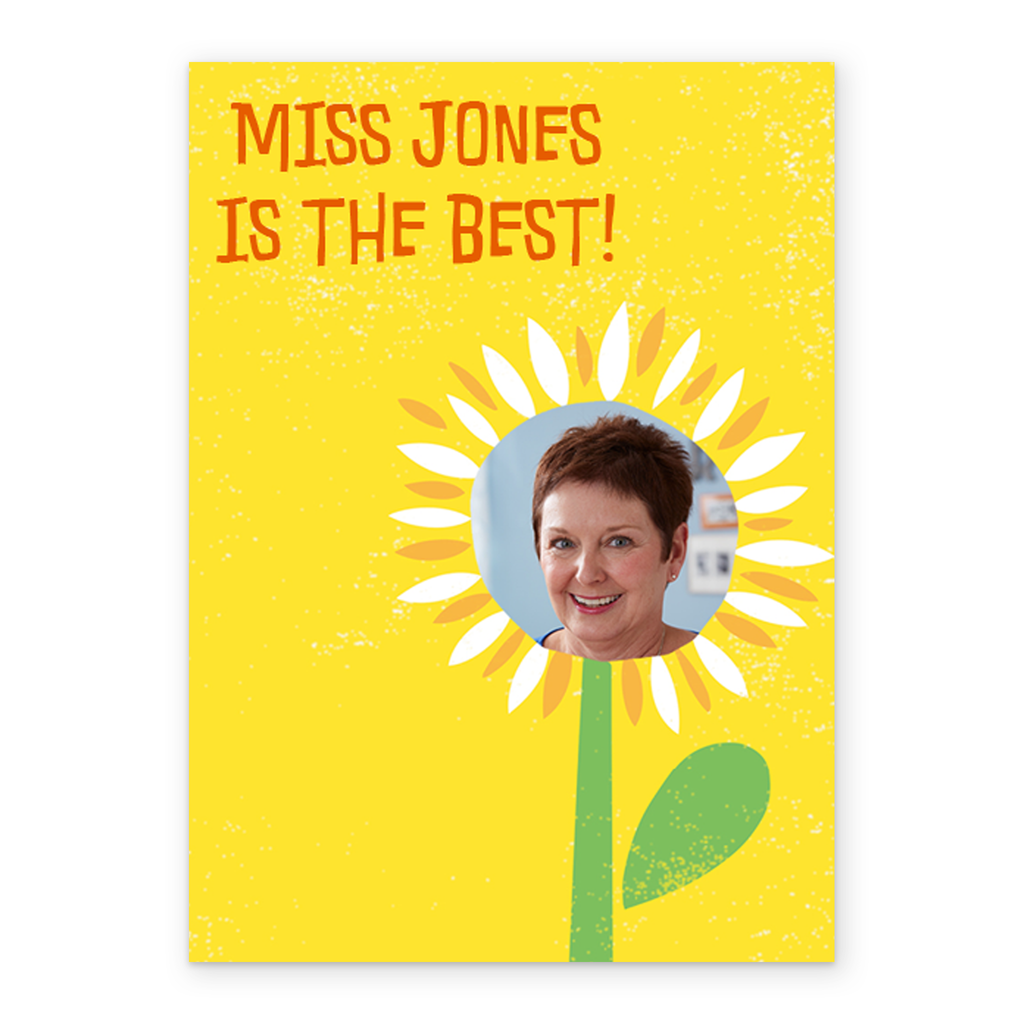 Show them you care with a personalised editable thank you teacher photo upload card from Hallmark. Our thank you cards are printed on premium quality, FSC®-certified card & delivered nationwide. This card is available as standard 12cm by 16.7cm and large 15.5cm by 21.6cm.