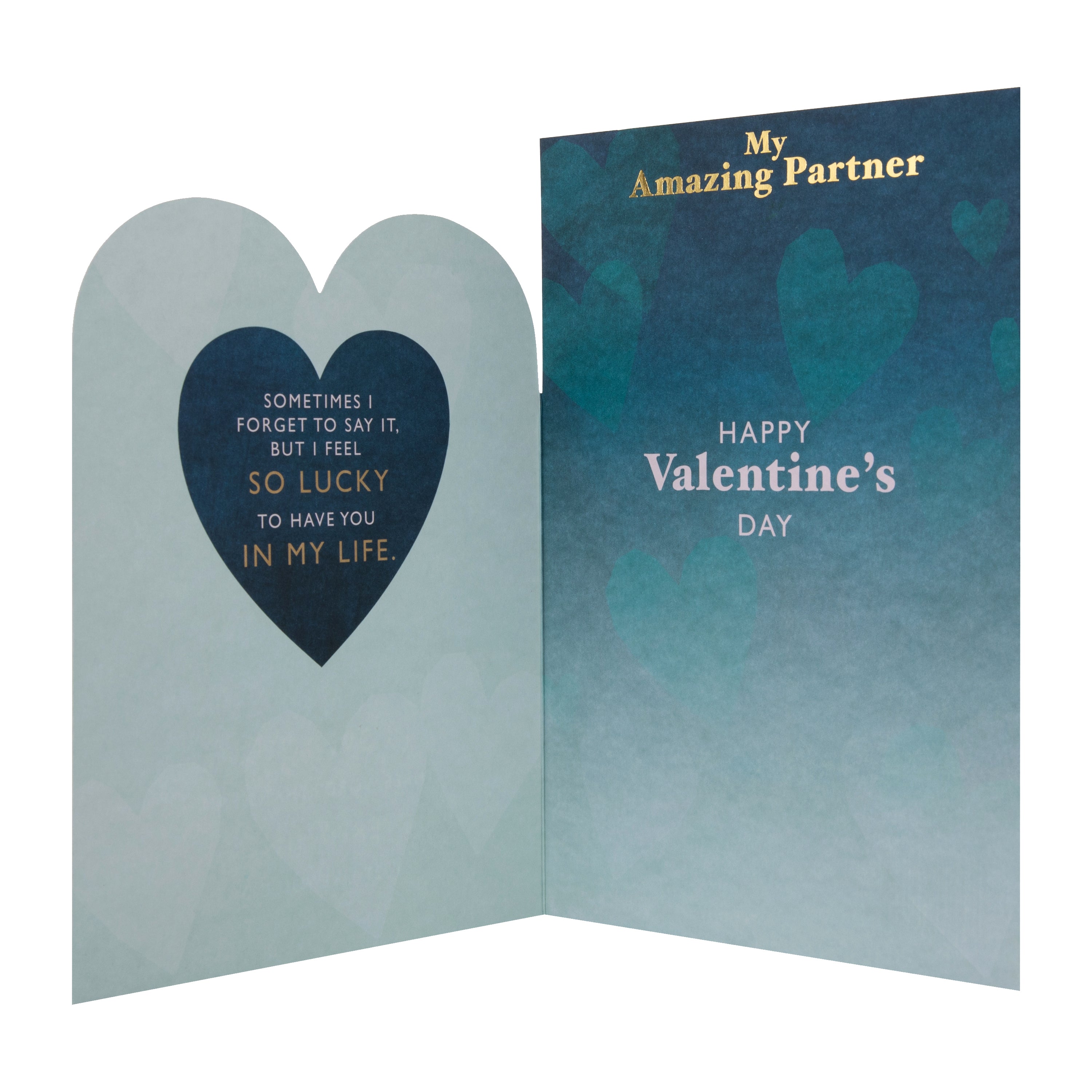 Valentine's Day Card for Partner - Blue with Gold Heart Design