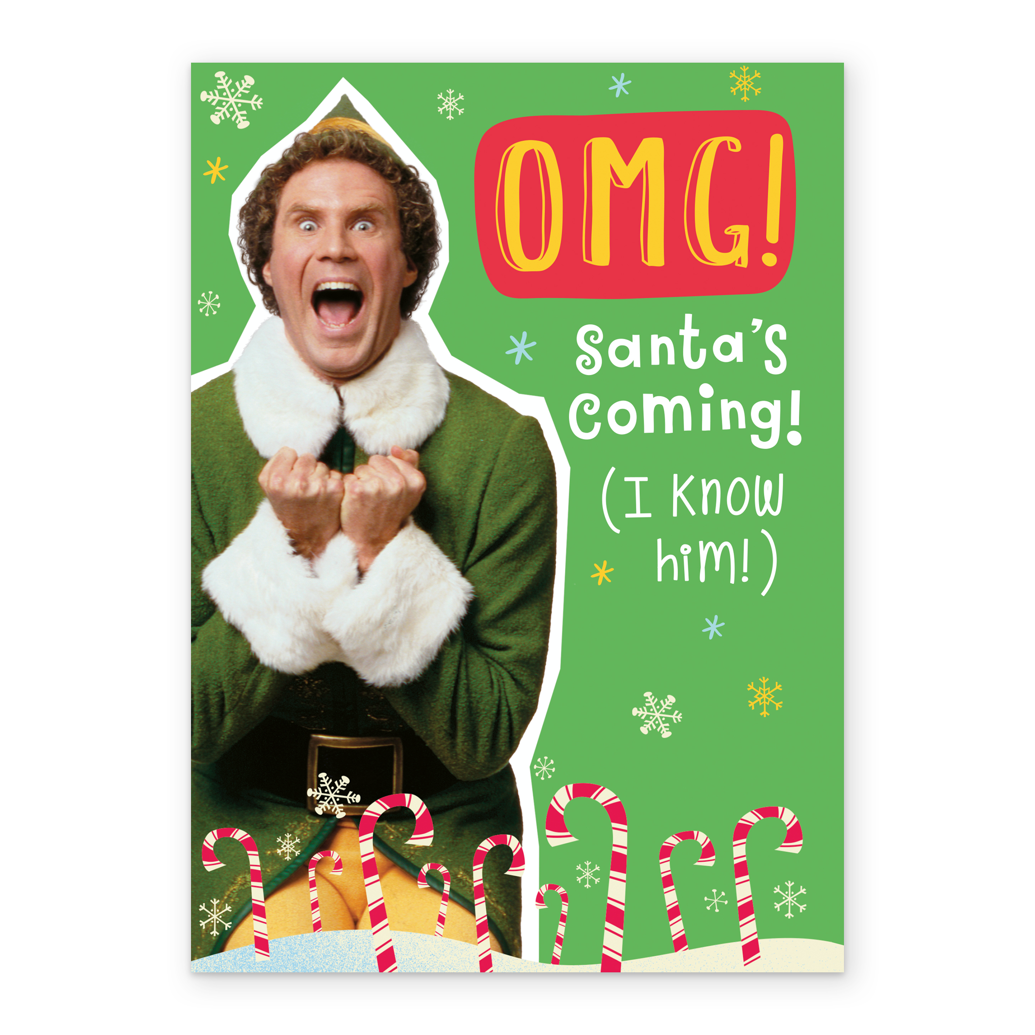 Show them you care with a personalised funny Elf OMG Christmas card from Hallmark. Our Christmas cards are printed on premium quality, FSC®-certified card & delivered nationwide. This card is available as standard 12cm by 16.7cm and large 15.5cm by 21.6cm.