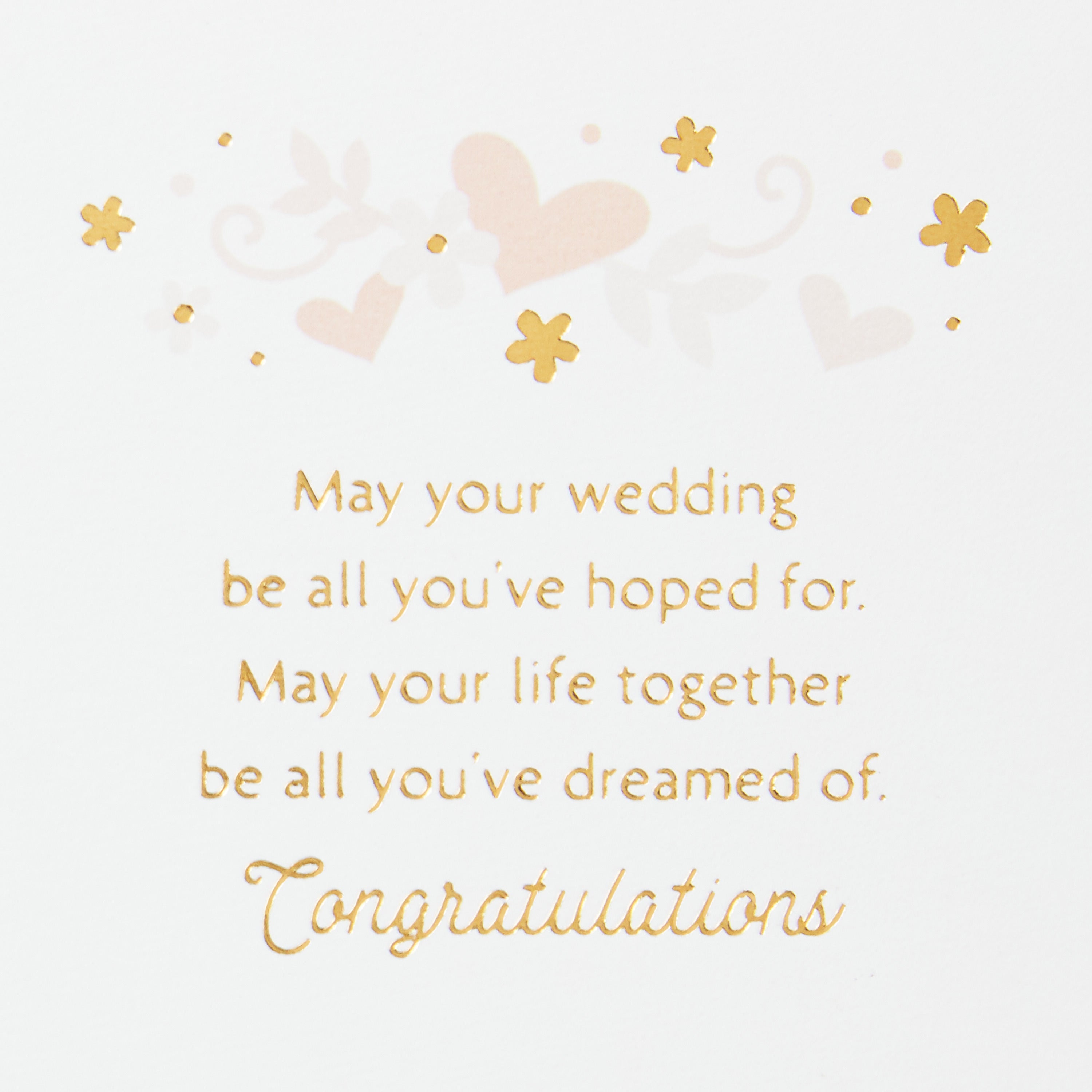 Message On Back Reads: May your wedding be all you've hoped for. May your life together be all you've dreamed of. Congratulations