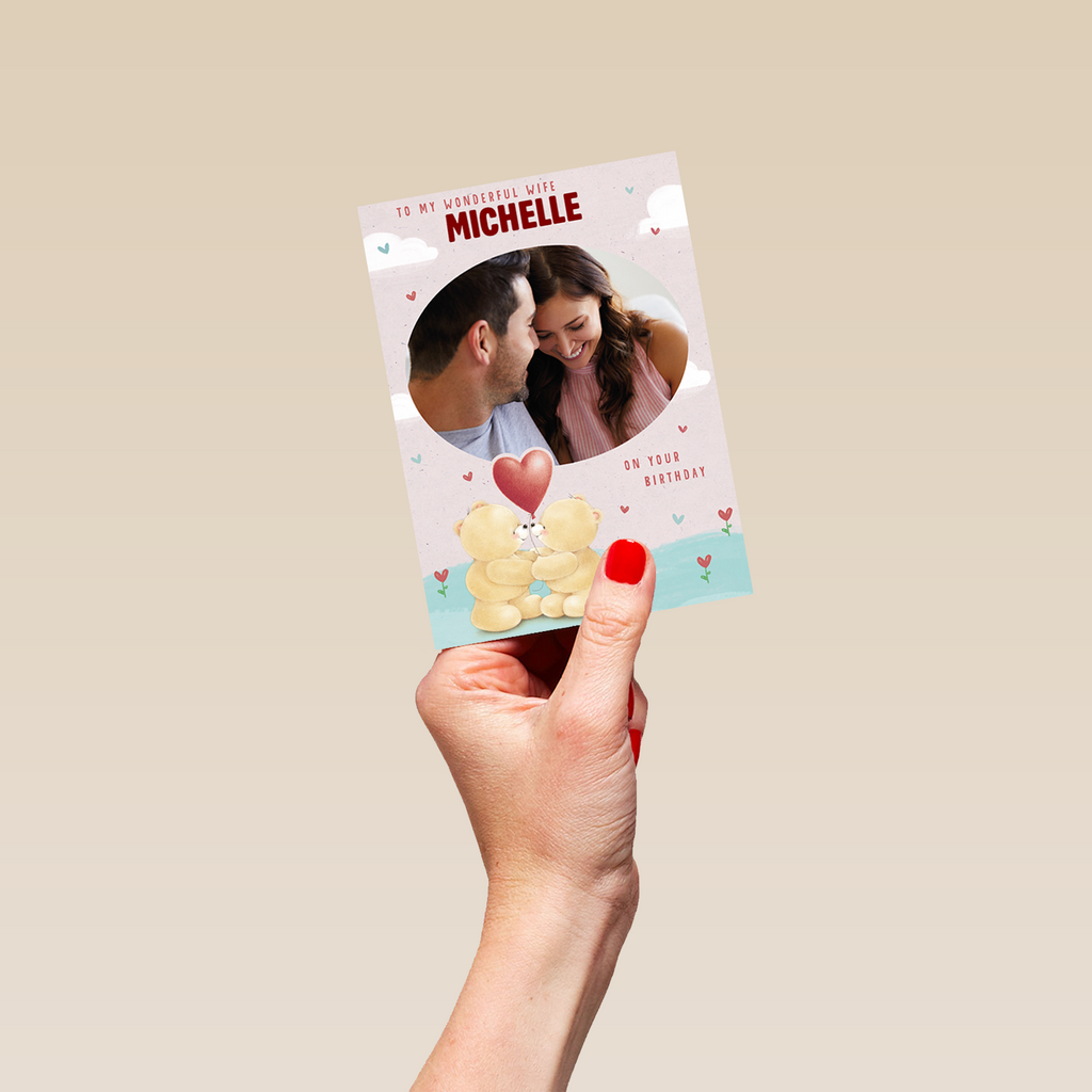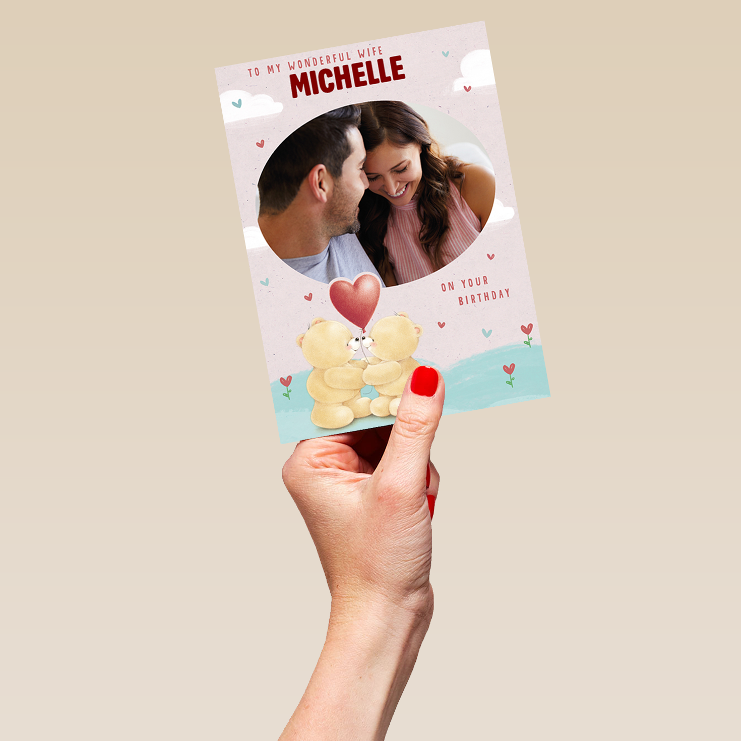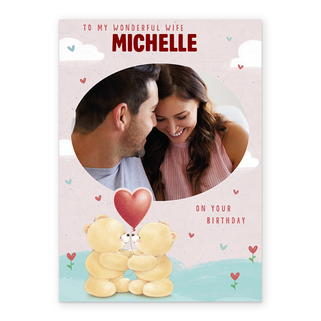Show them you care with a personalised Forever Friends photo birthday card for wife from Hallmark. Our birthday cards are printed on premium quality, FSC®-certified card & delivered nationwide. This card is available as standard 12cm by 16.7cm and large 15.5cm by 21.6cm.