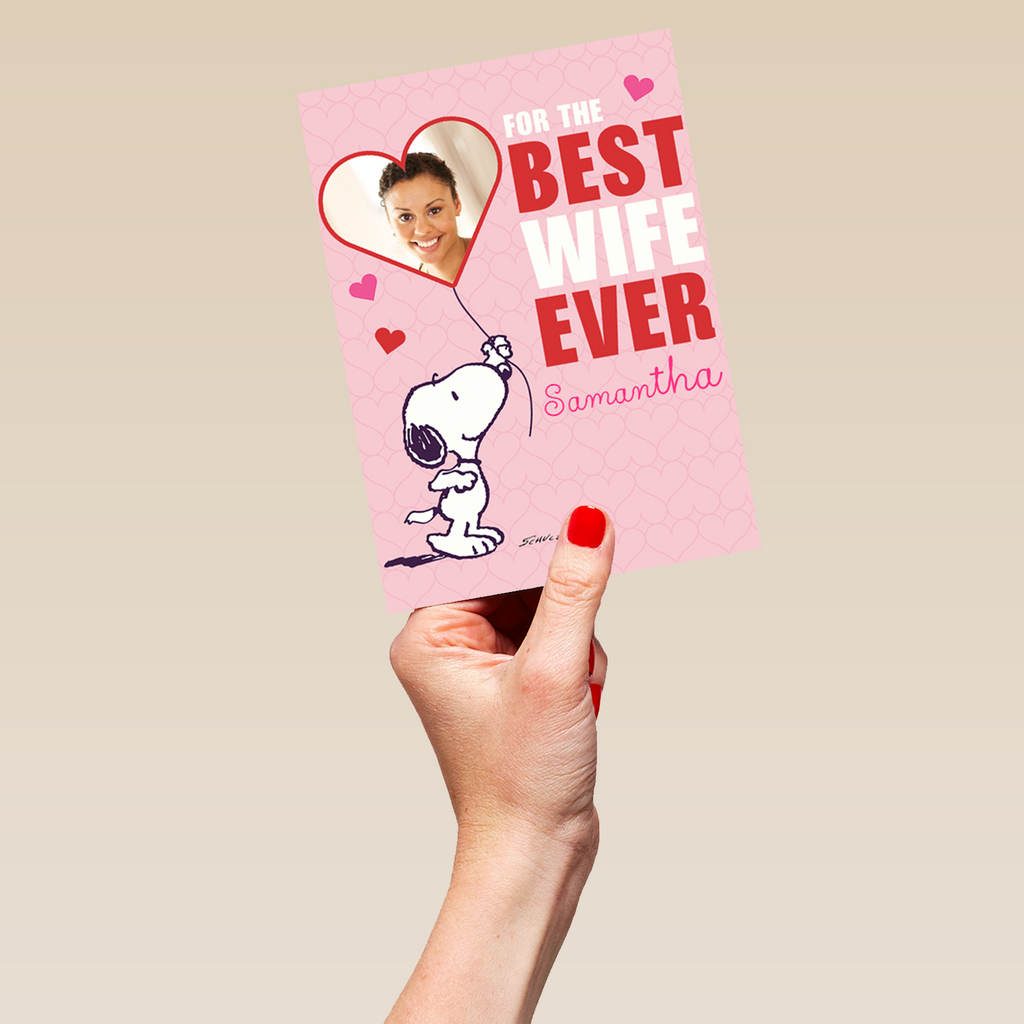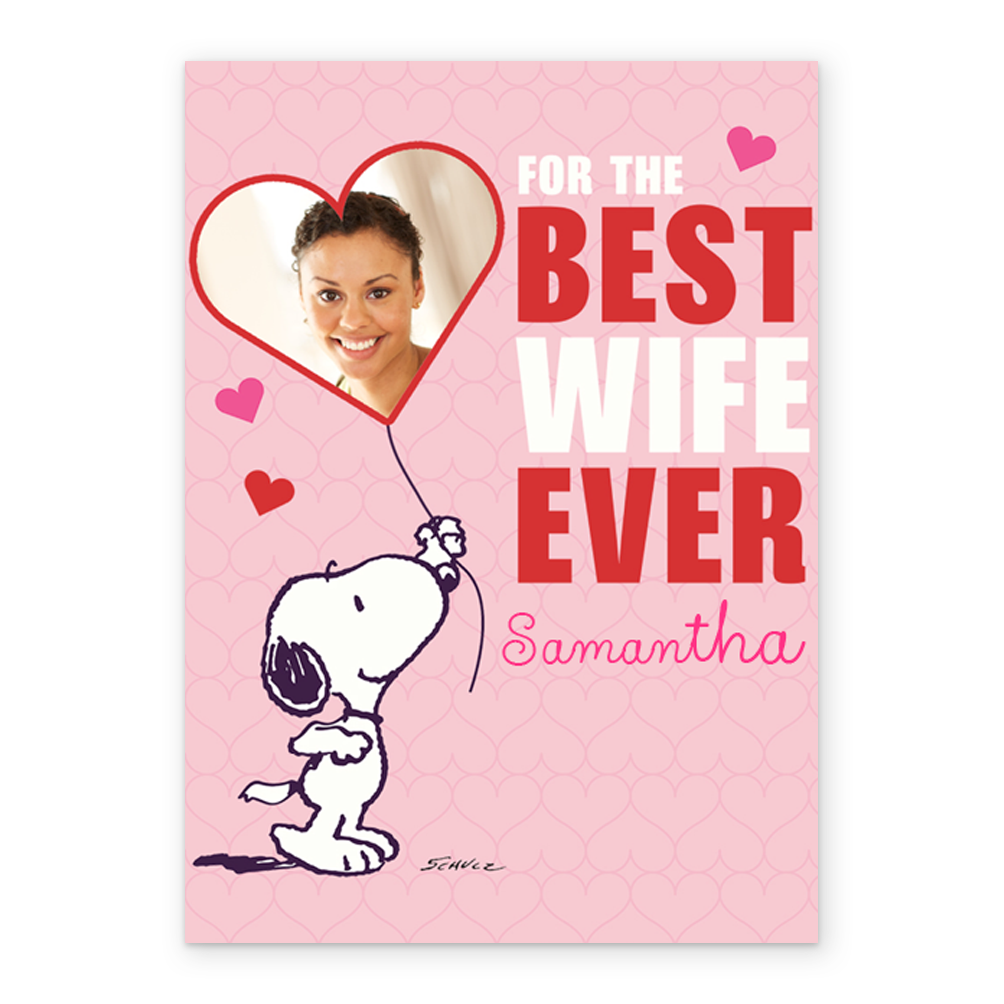 Show them you care with a personalised SNOOPY photo birthday card for the best ever wife from Hallmark. Our birthday cards are printed on premium quality, FSC®-certified card & delivered nationwide. This card is available as standard 12cm by 16.7cm and large 15.5cm by 21.6cm.