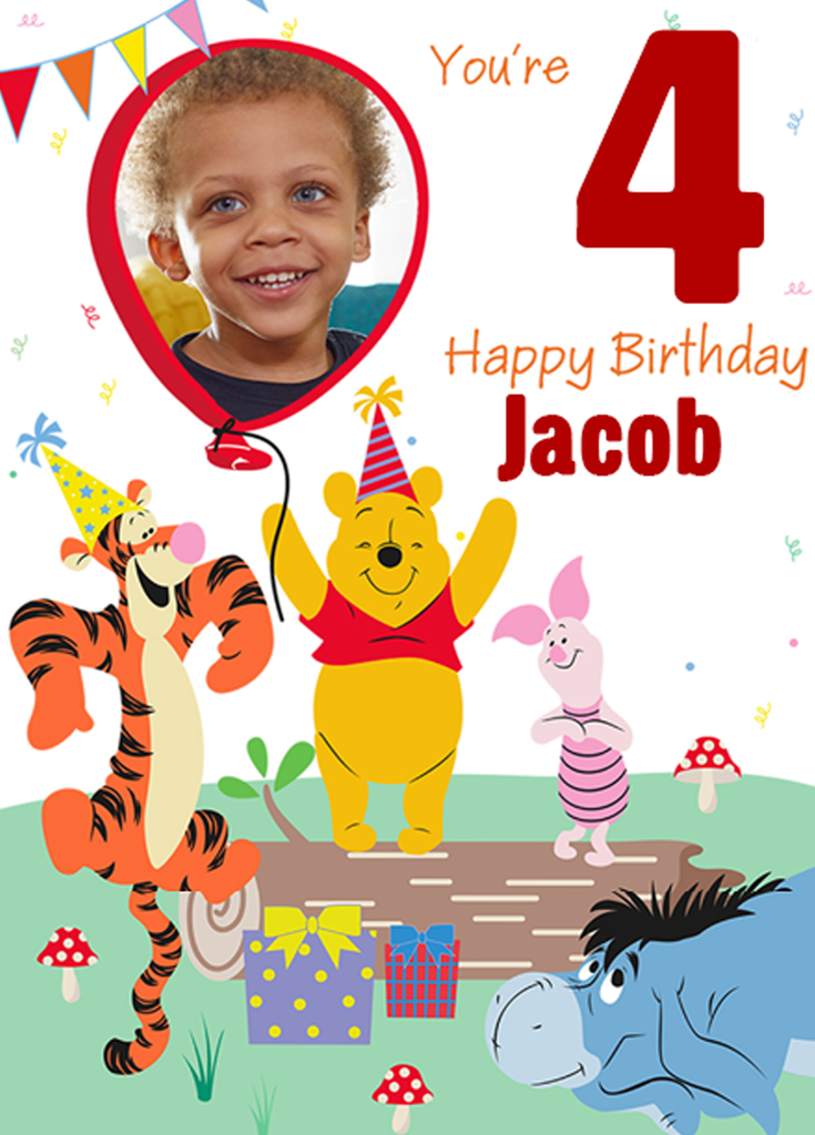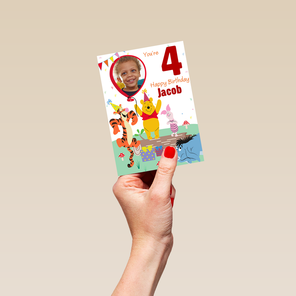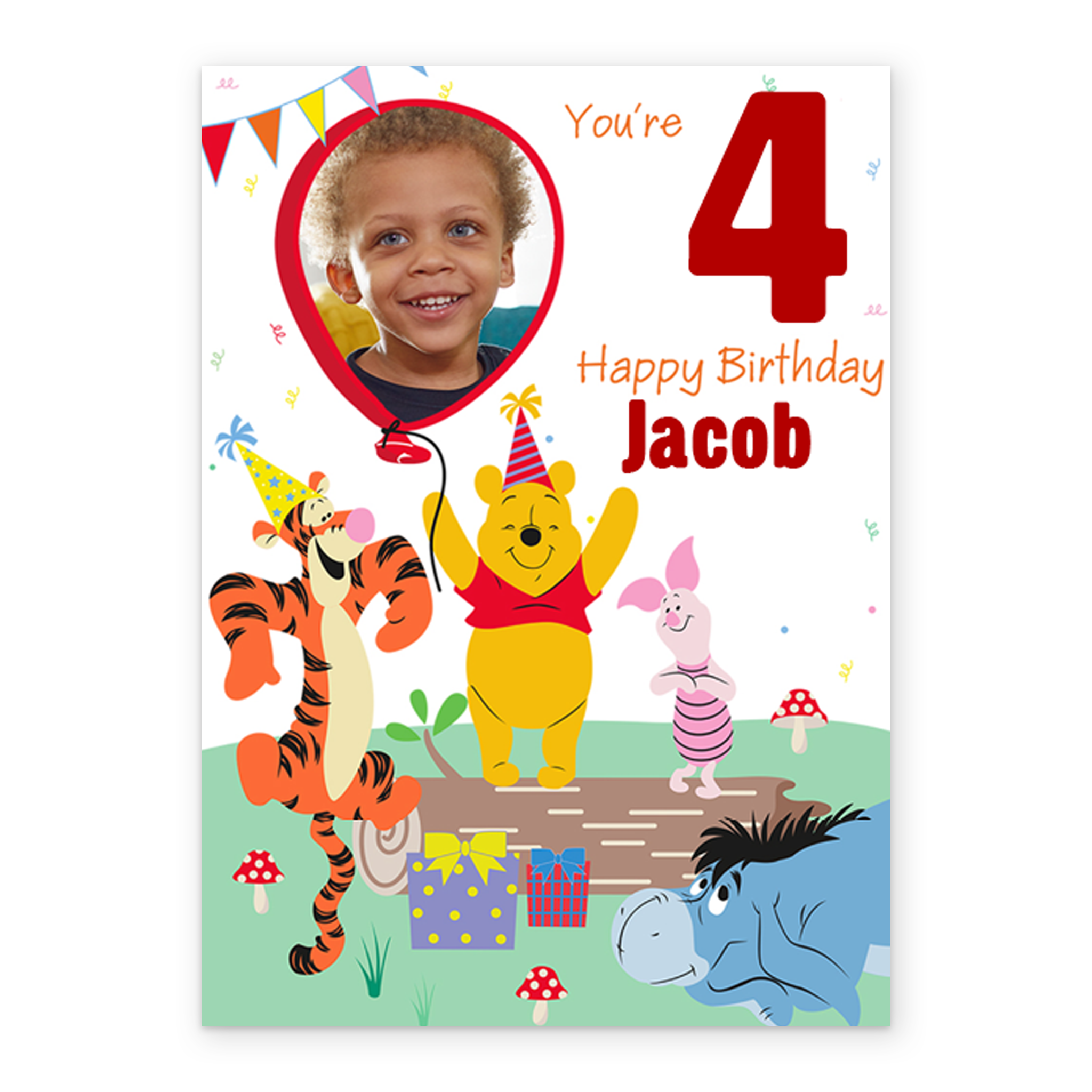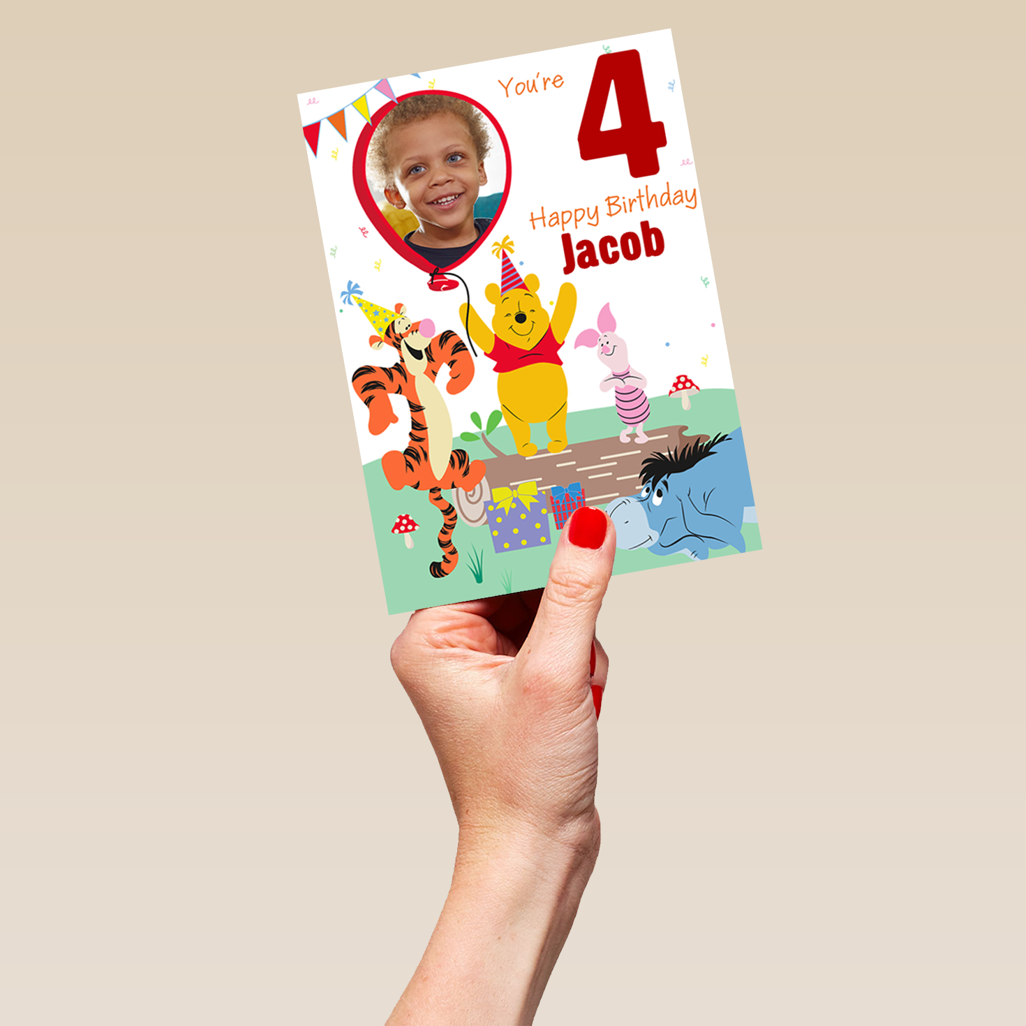 Personalised Kids Disney Winnie the Pooh Photo Birthday Card