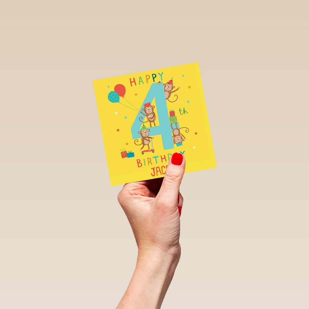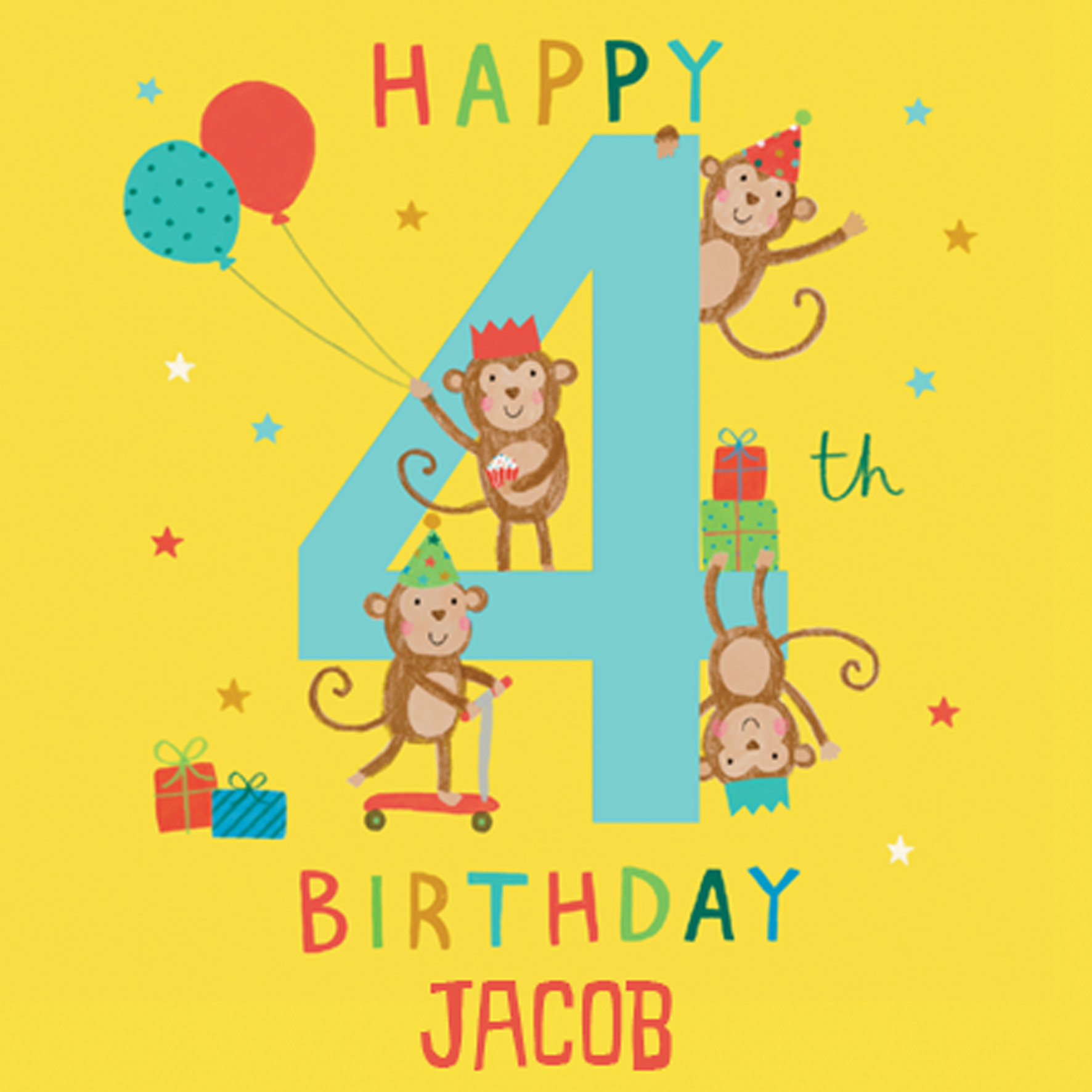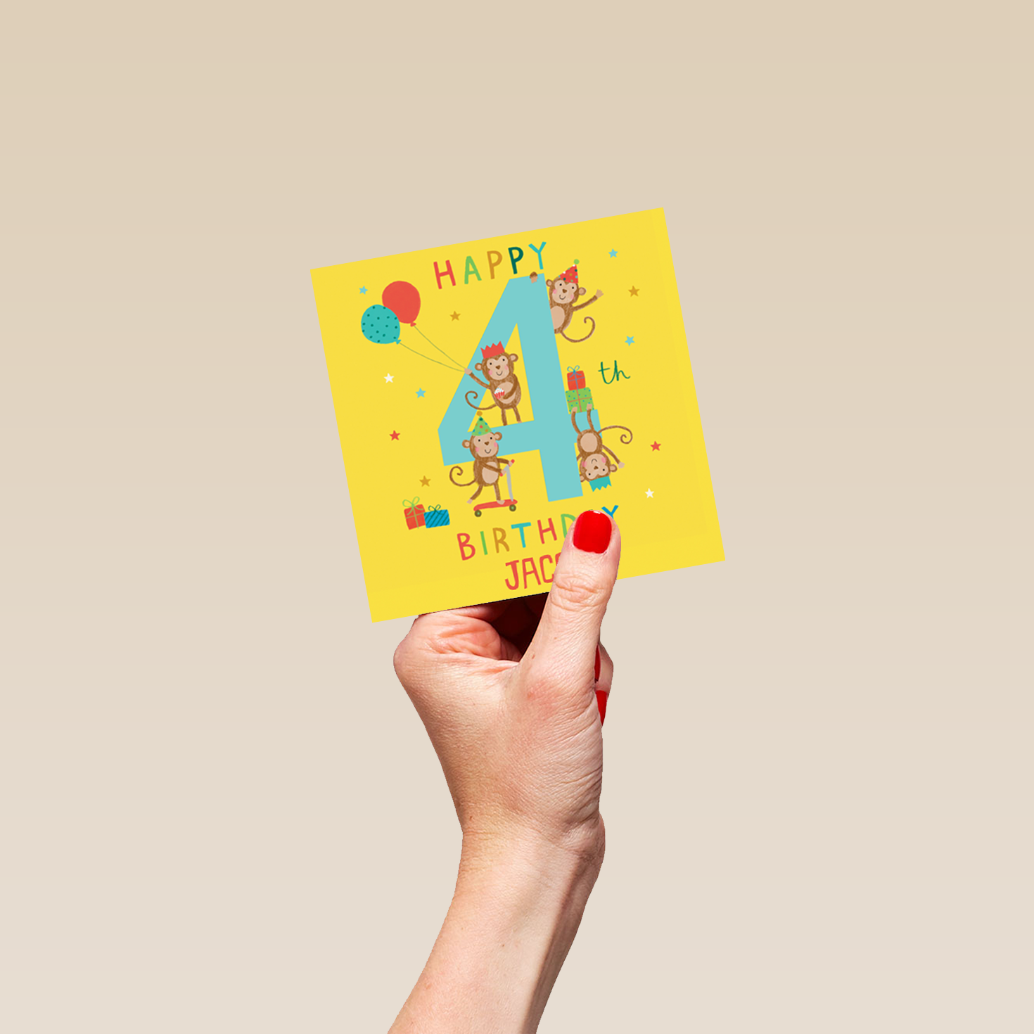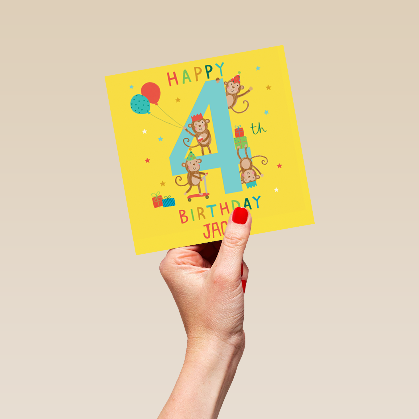 Personalised Cheeky Monkeys Party 4th Birthday Card