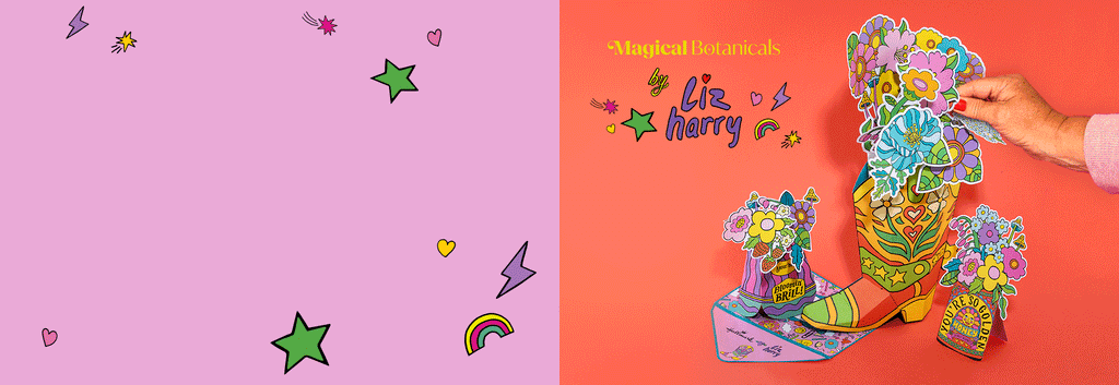 Our very first Magical Botanicals collab features our creative friend, the amazing Liz Harry! Illustrator, crafter, colour obsessive, giant pencil maker, rainbow romantic, dopamine dresser, mental health advocate and celebrator of women!