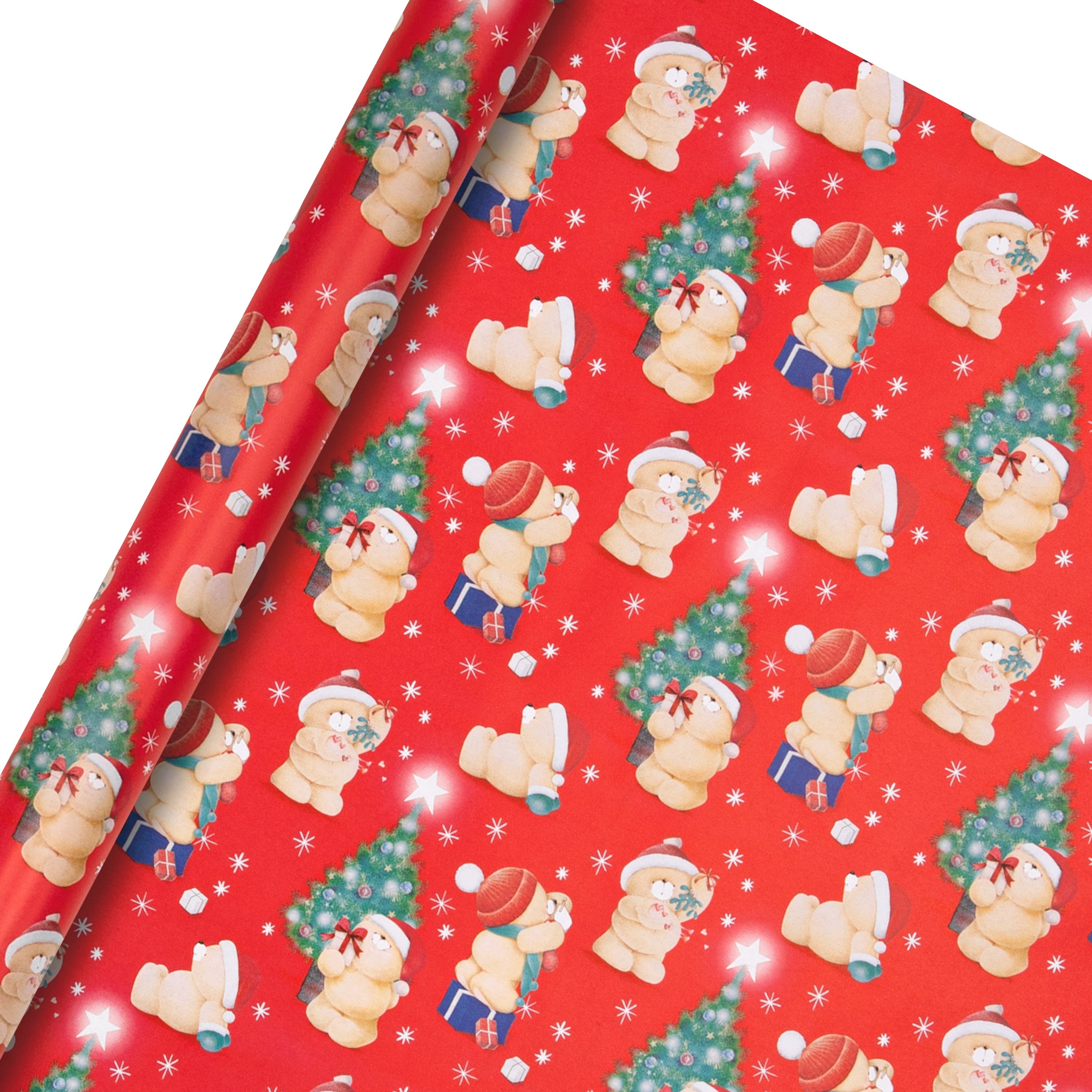 This pack of 3 Christmas wrapping paper comes in 1 adorable design, with a red background and Hallmark's Forever Friends bears getting festive with gift wrapping, mistletoe and decorating the tree.
