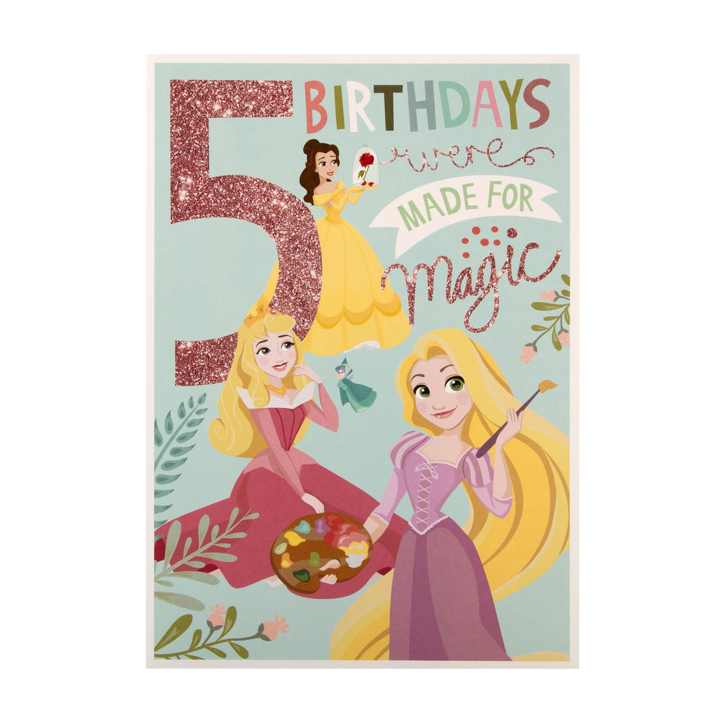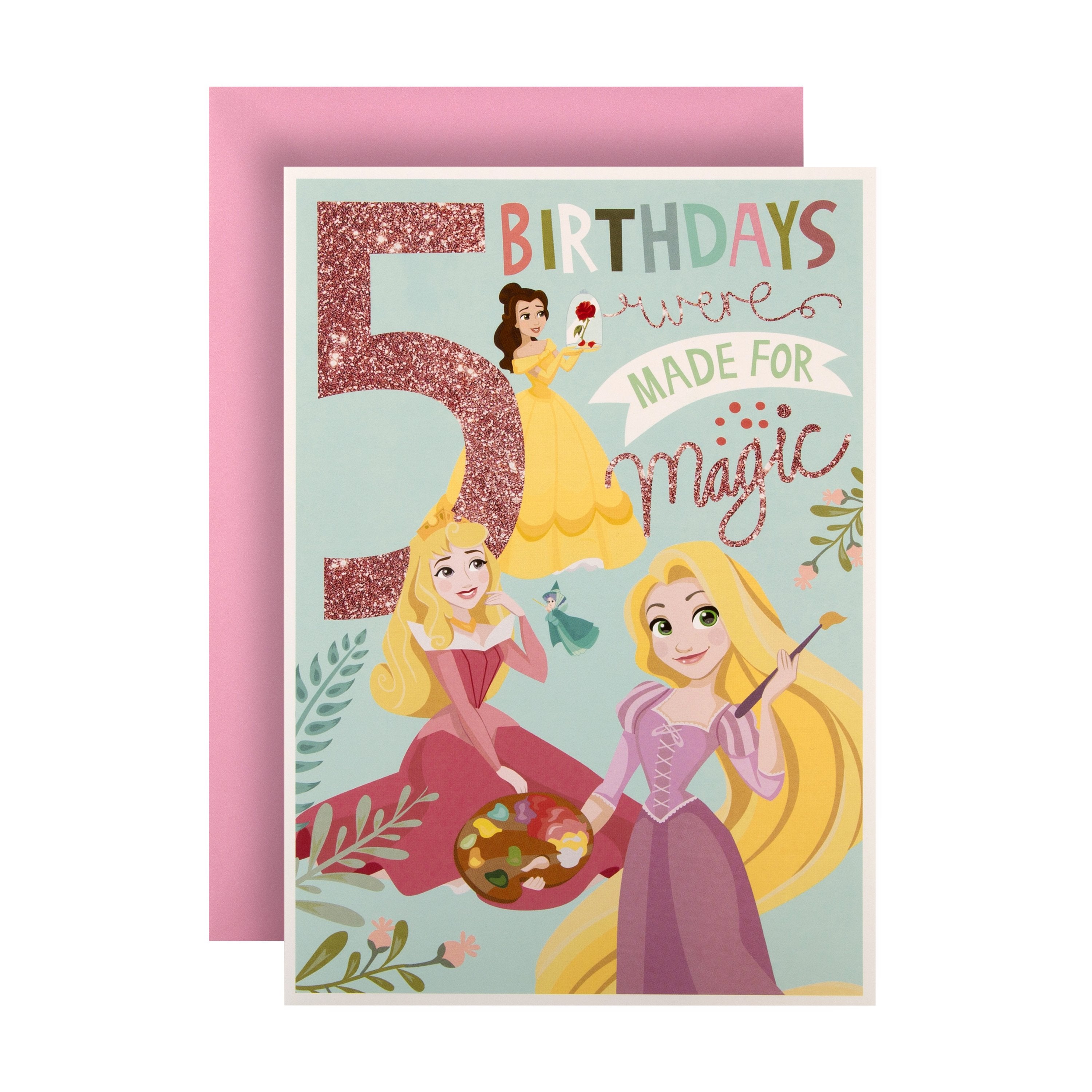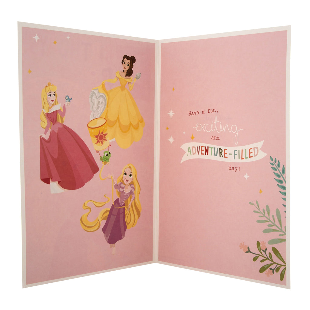 Printed on high-quality board, this card features Disney Princesses Rapunzel, Belle and Aurora, and comes complete with co-ordinating branded envelope.