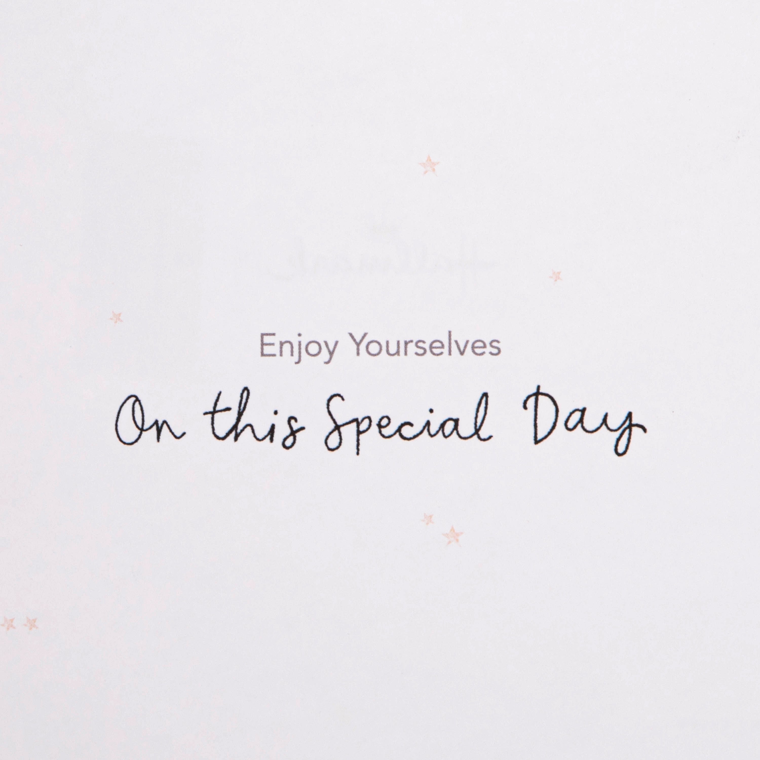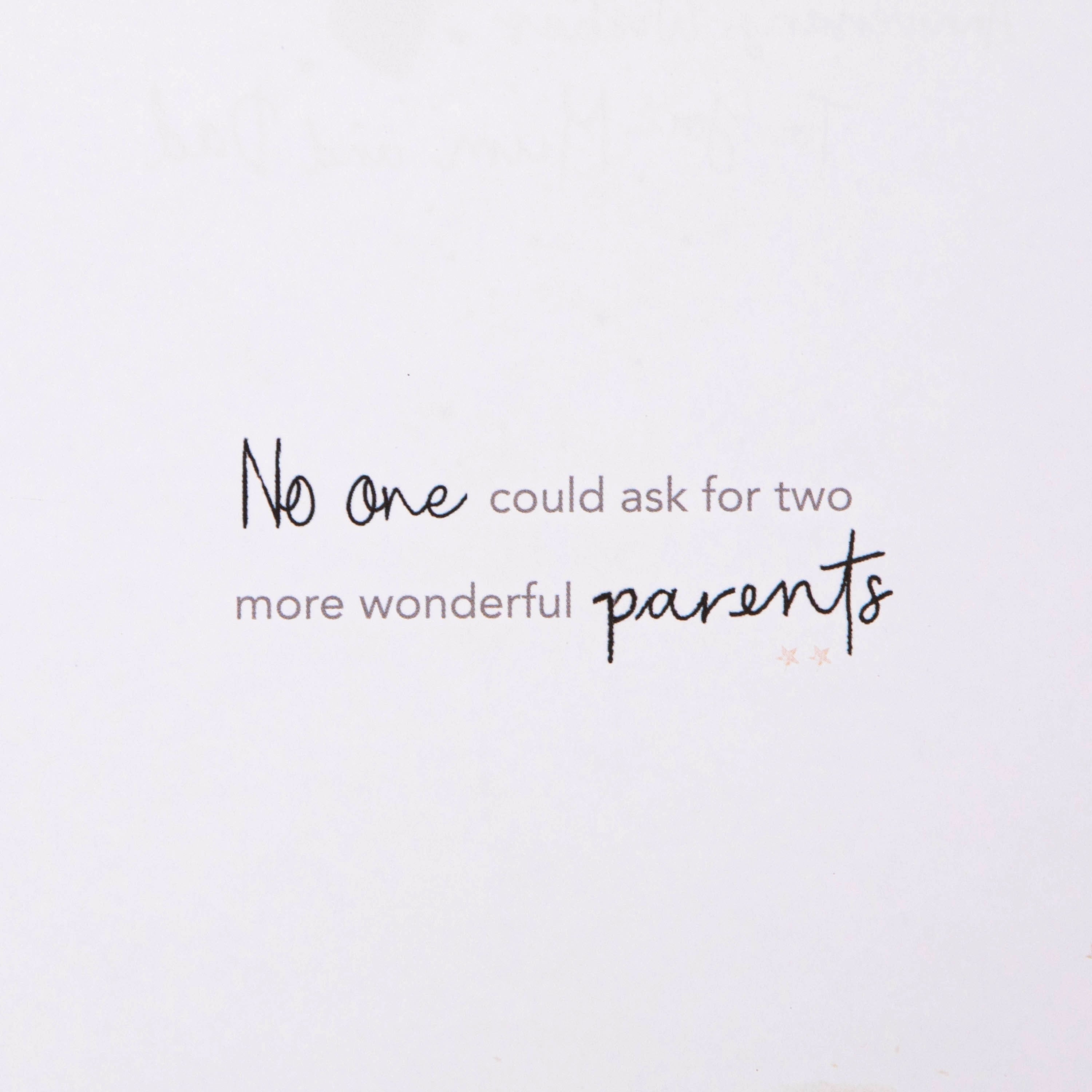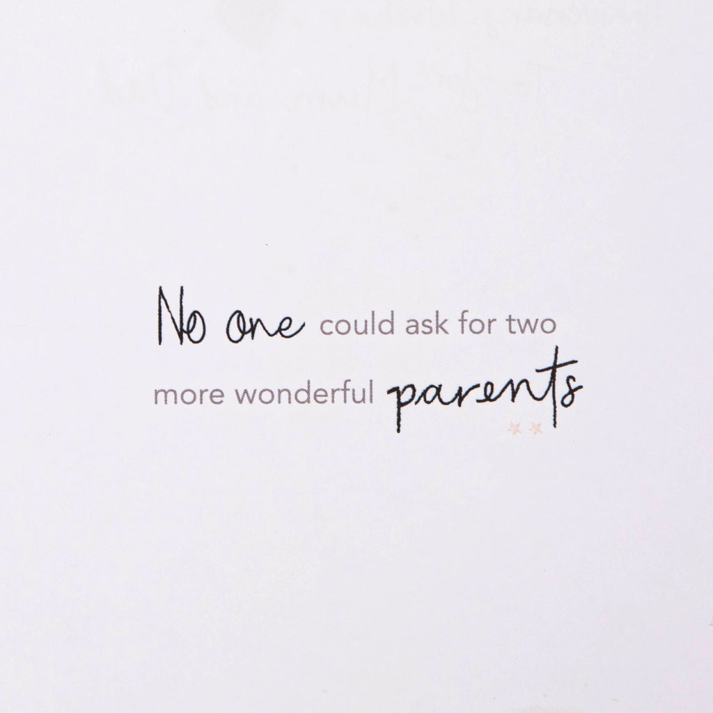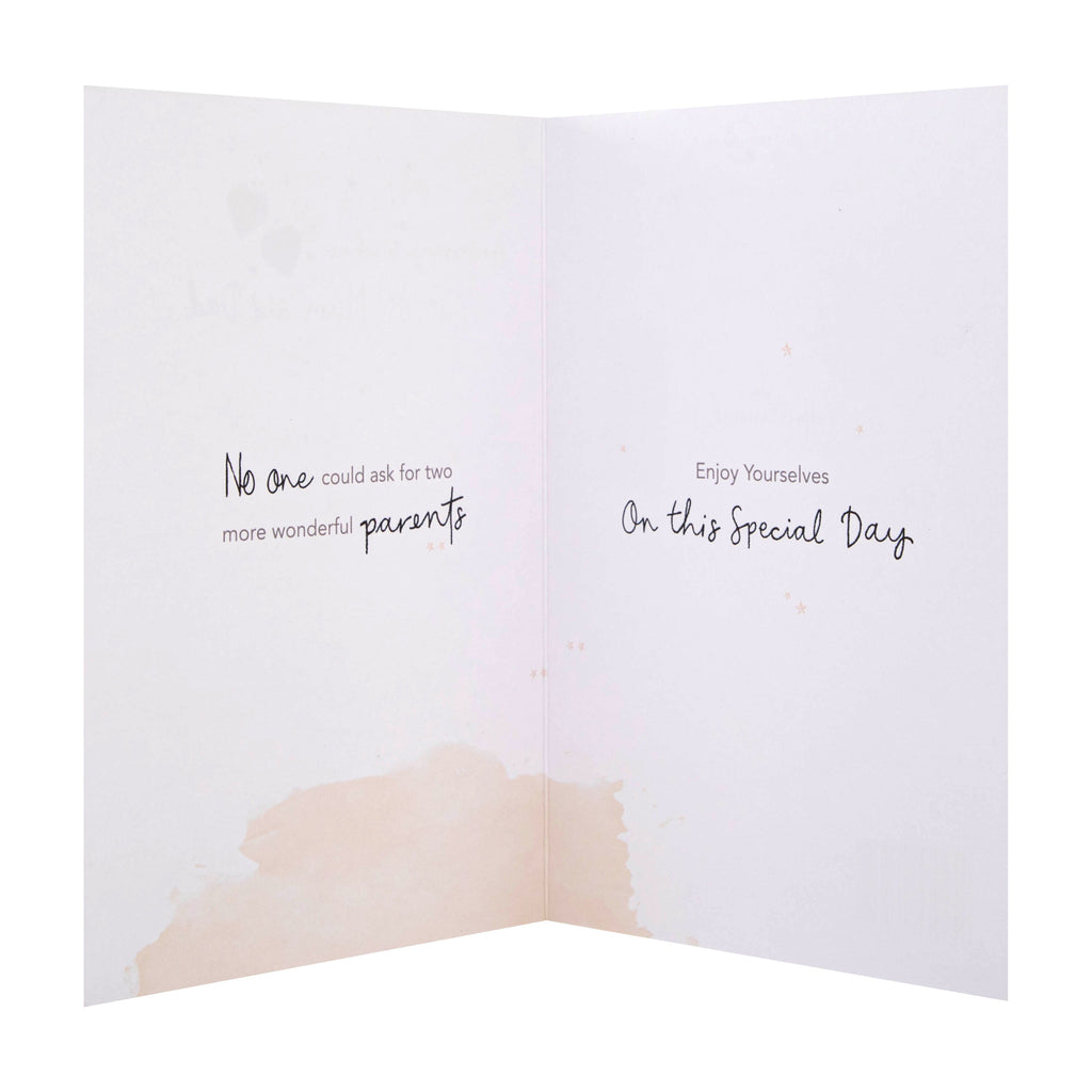 Message inside card reads: No one could ask for two more wonderful parents. Enjoy Yourselves On this Special Day
