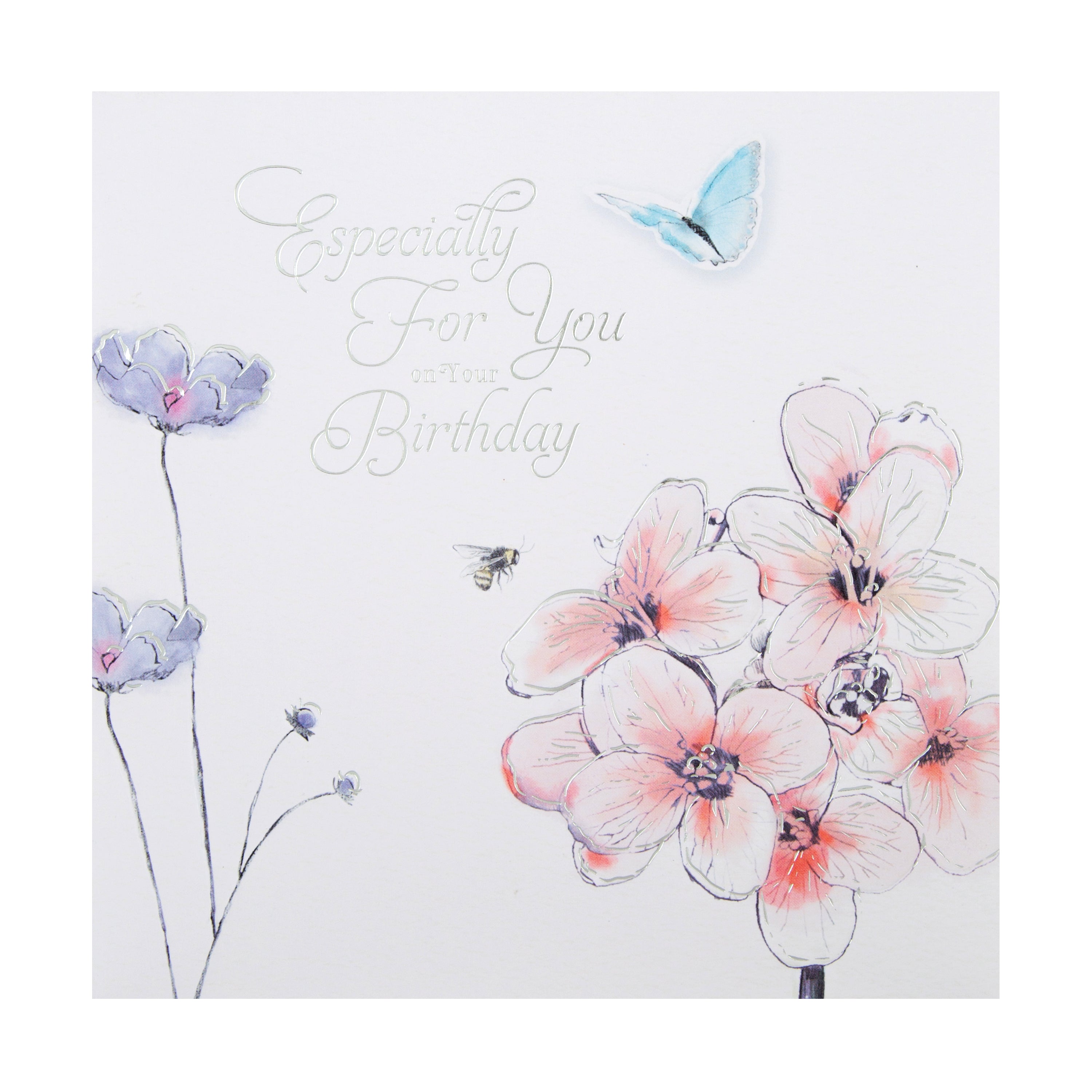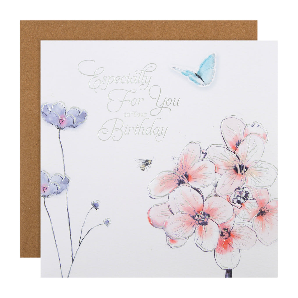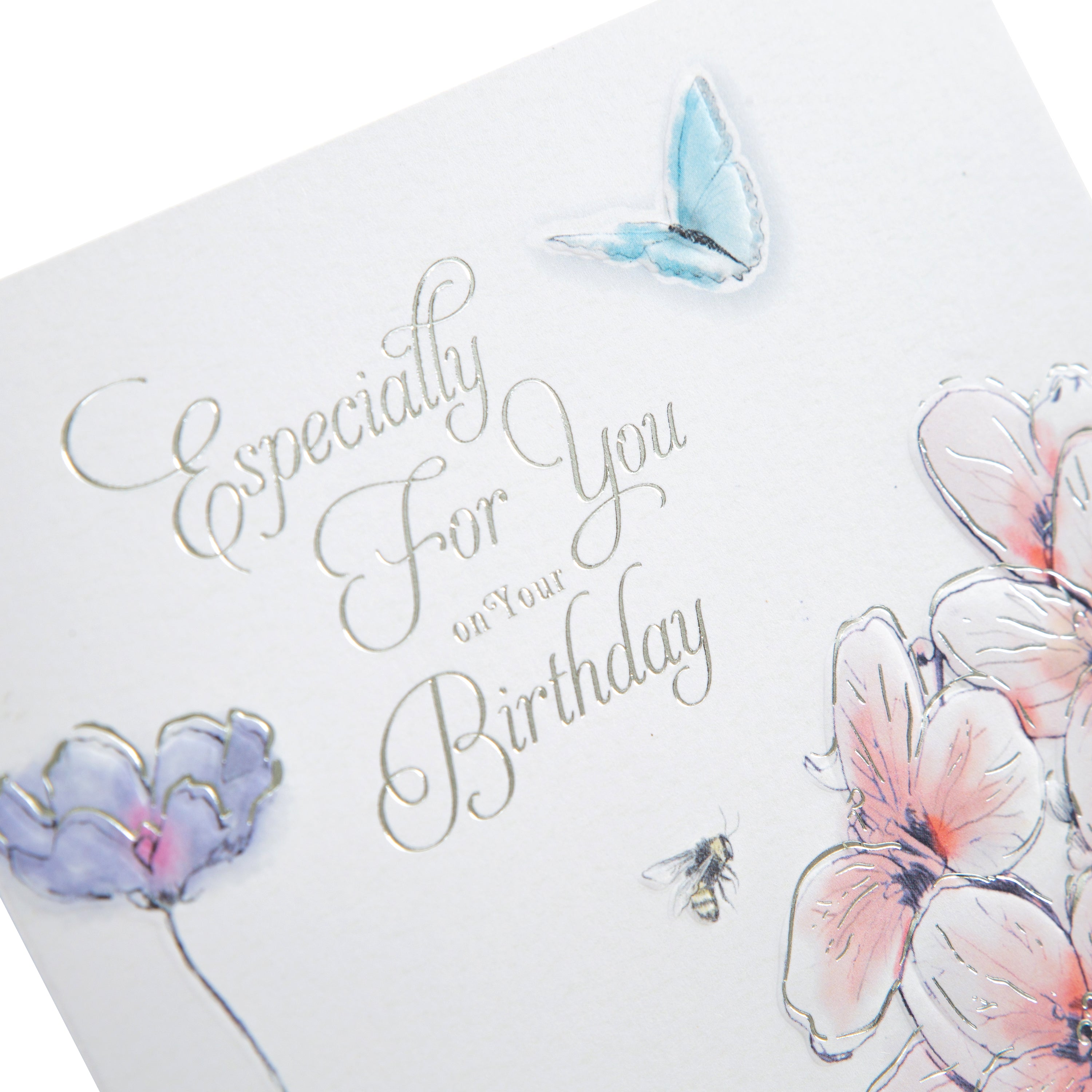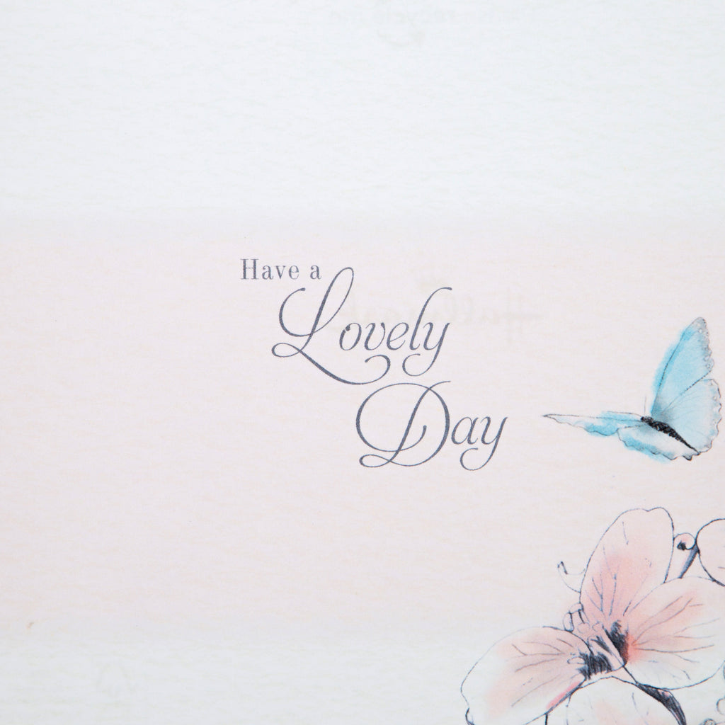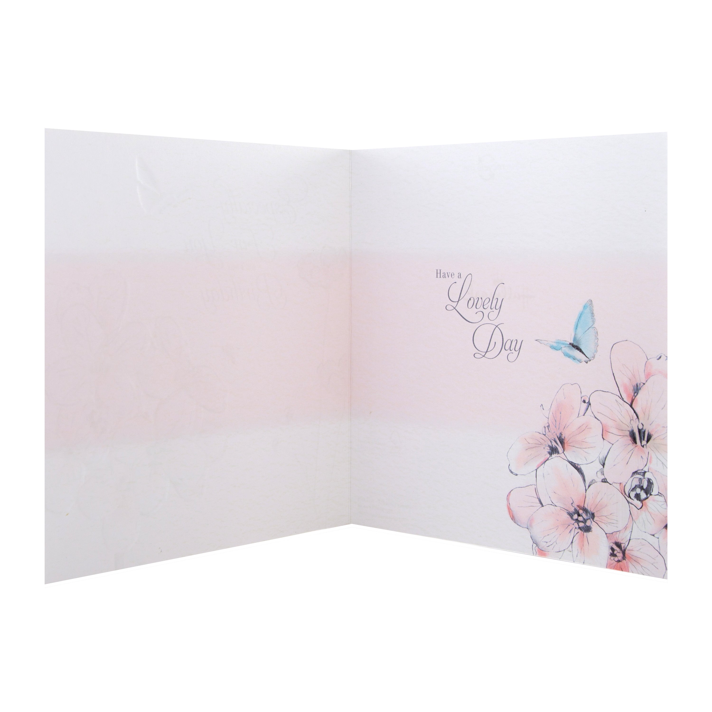Printed on high-quality board, this card features silver foil details, a floral design, embossed elements, and comes complete with a Hallmark branded, brown Kraft envelope.