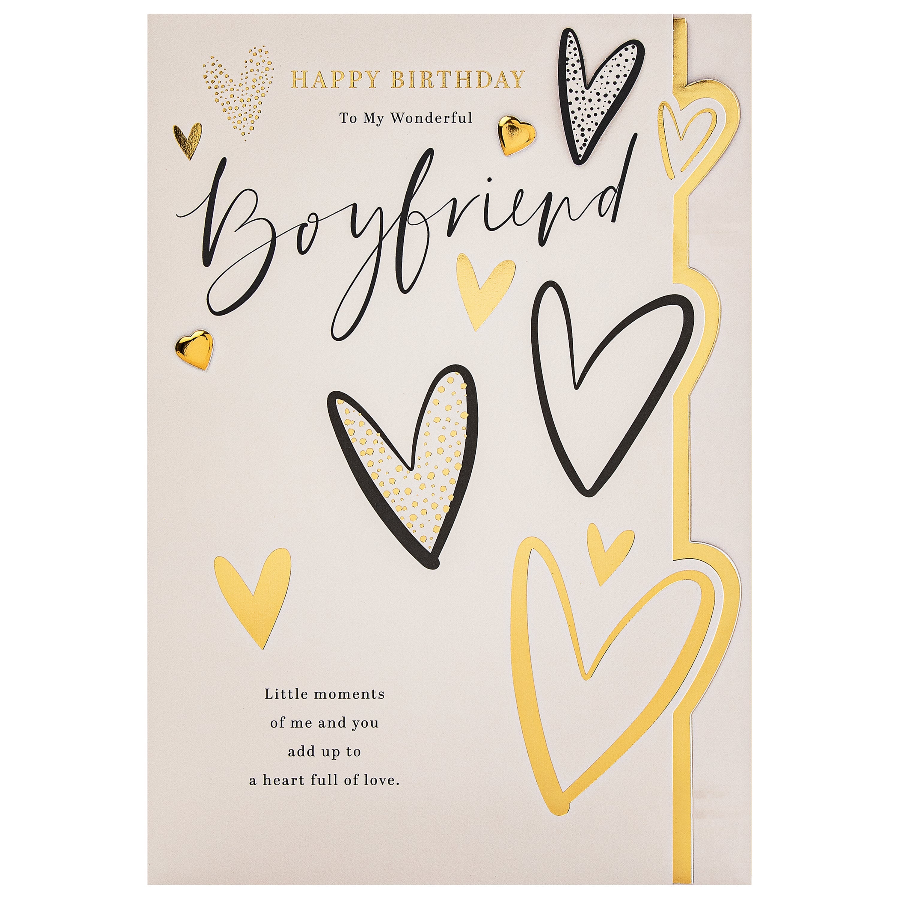 Message On Front Reads: HAPPY BIRTHDAY To My Wonderful Boyfriend. Little moments of me and you add up to a heart full of love.