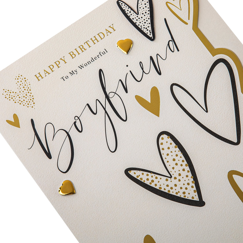 Birthday Card for Boyfriend - Gold Foil Hearts Design & Heartfelt Verse