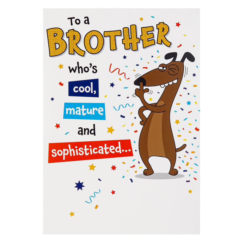 Birthday Card for Brother - Funny Pop-Up Party Dog Design