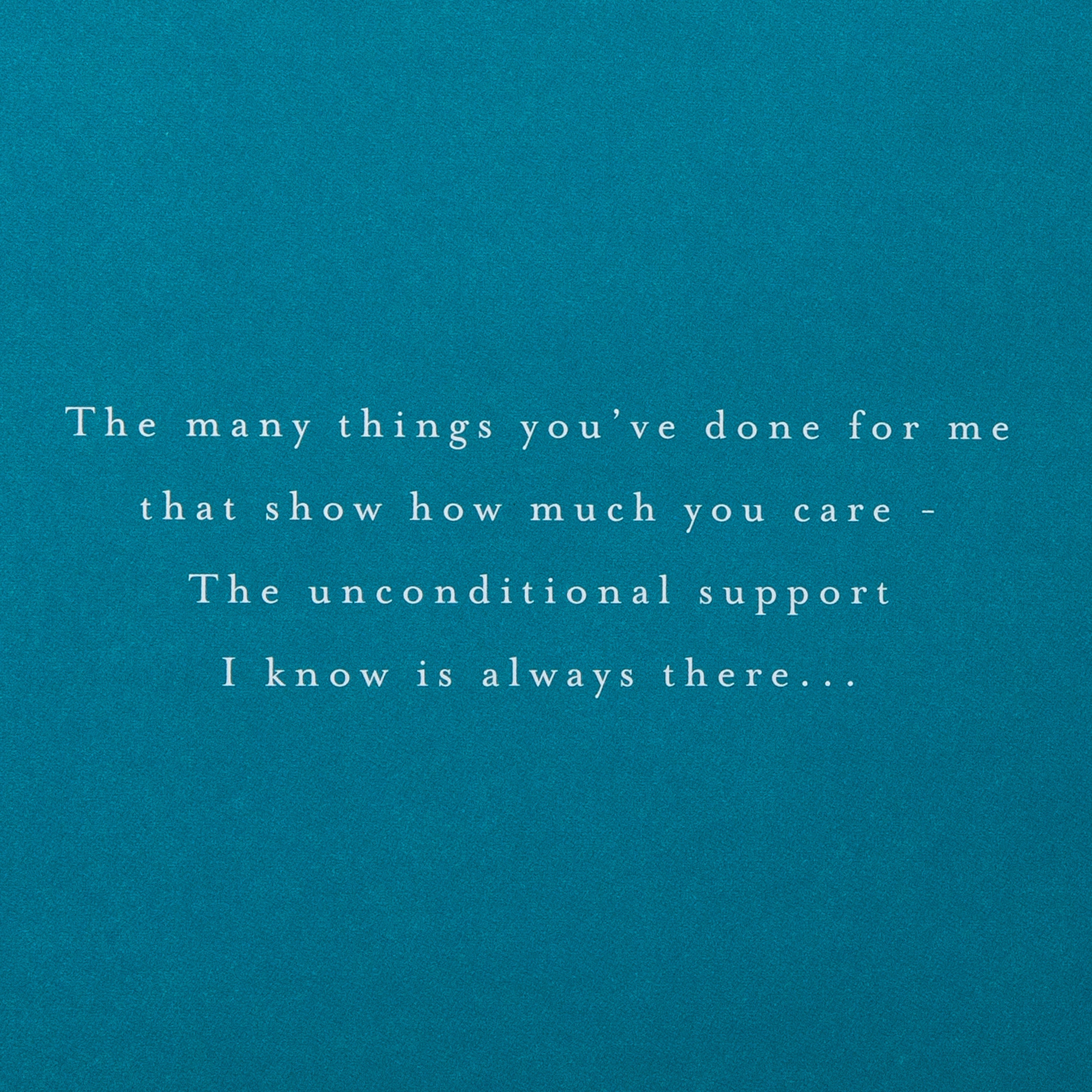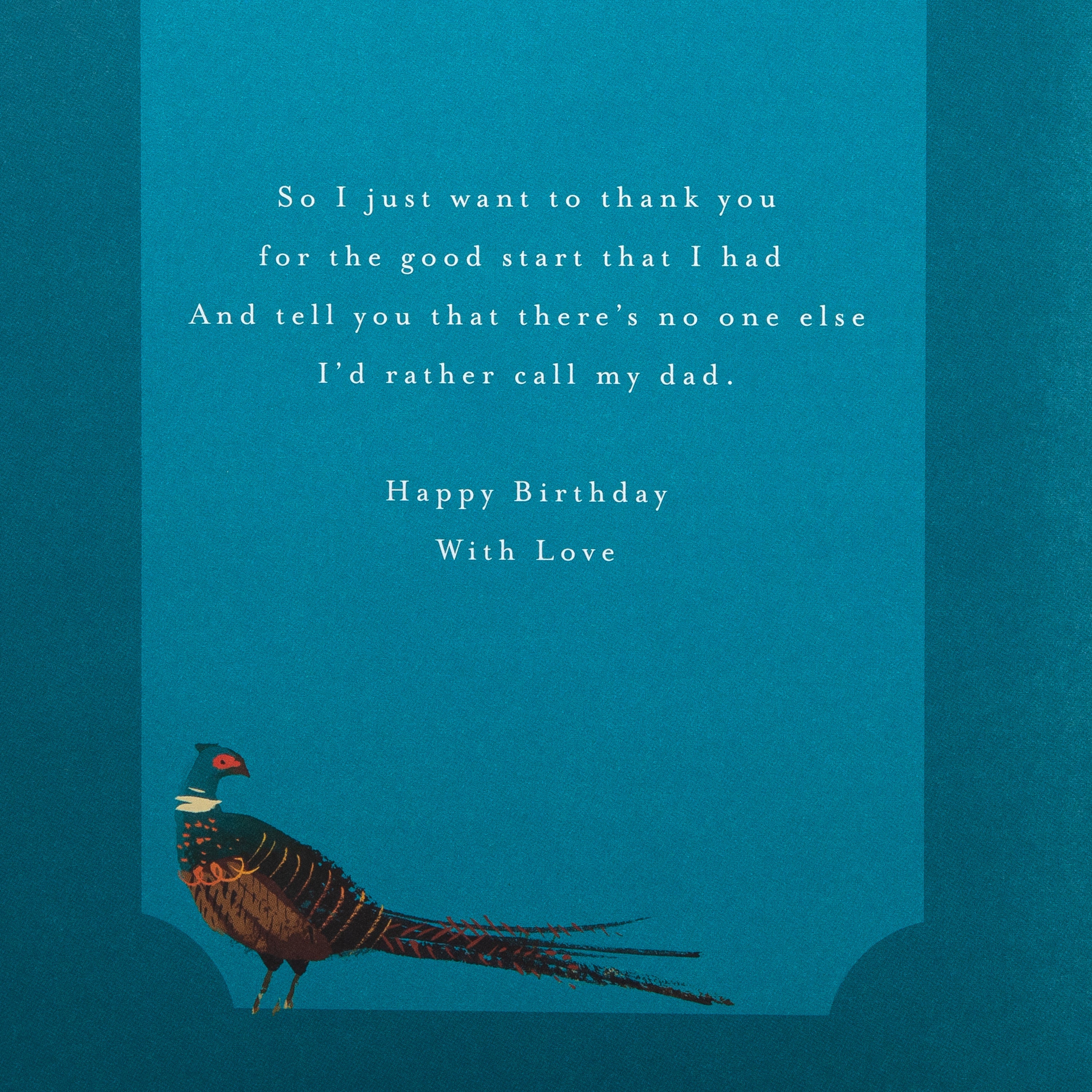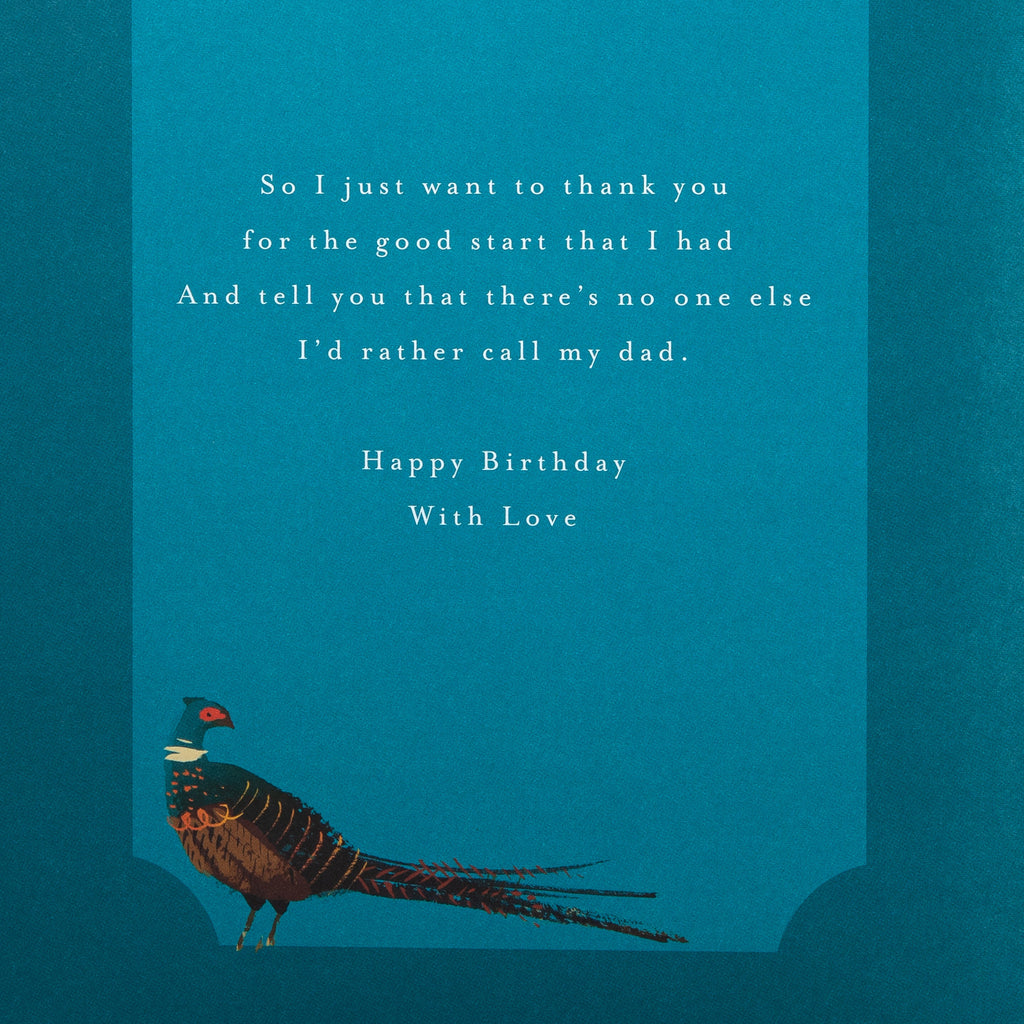 Message Inside Reads: The many things you've done for me that show how much you care - the unconditional support I know is always there… So I just want to thank you for the good start that I had and tell you that there's no one else I'd rather call my dad. Happy Birthday With Love