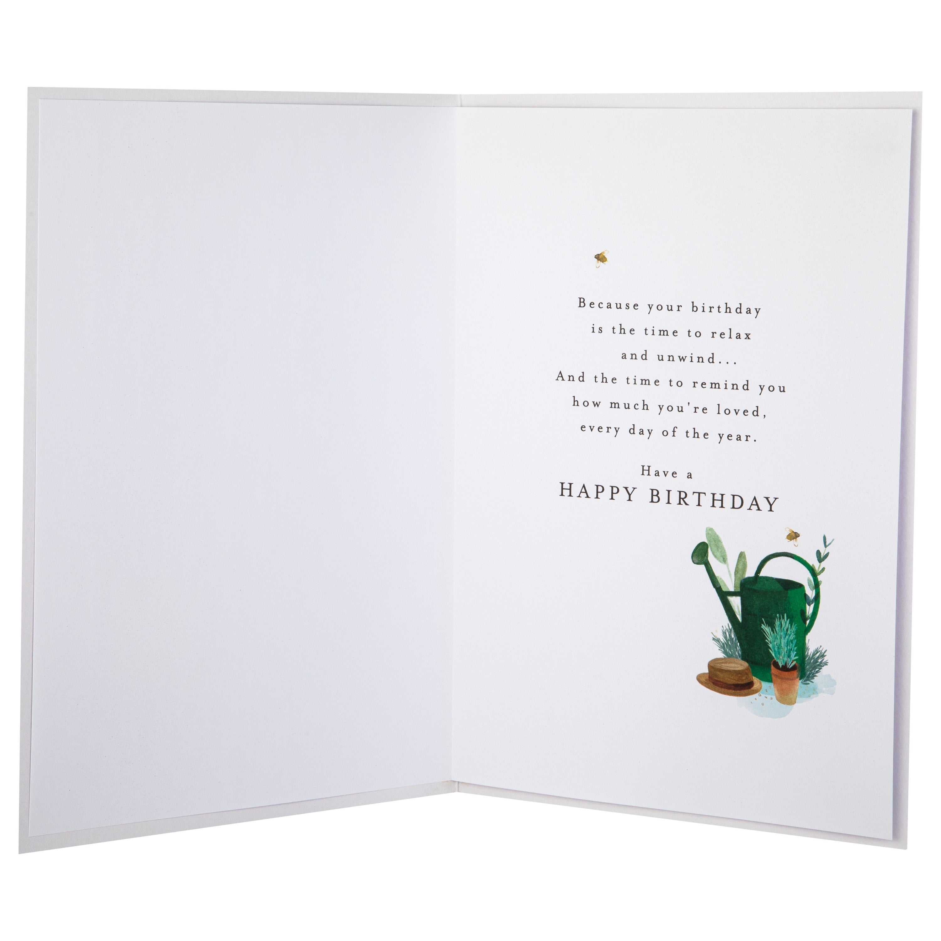 Message Inside Reads: Because your birthday is the time to relax and unwind... And the time to remind you how much you're loved, every day of the year. Have a Happy Birthday