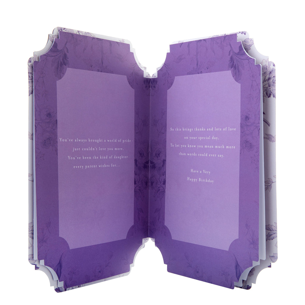 Message Inside Reads: You've always brought a world of pride - just couldn't love you more, you've been the kind of daughter every parent wishes for… So this brings thanks and lots of love on your special day, to let you know you mean much more than words could ever say. Have a Very Happy Birthday