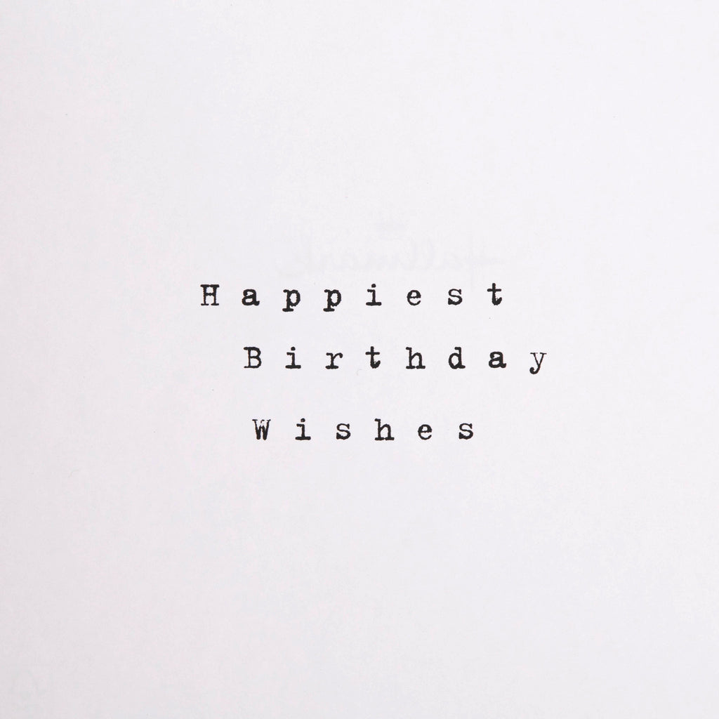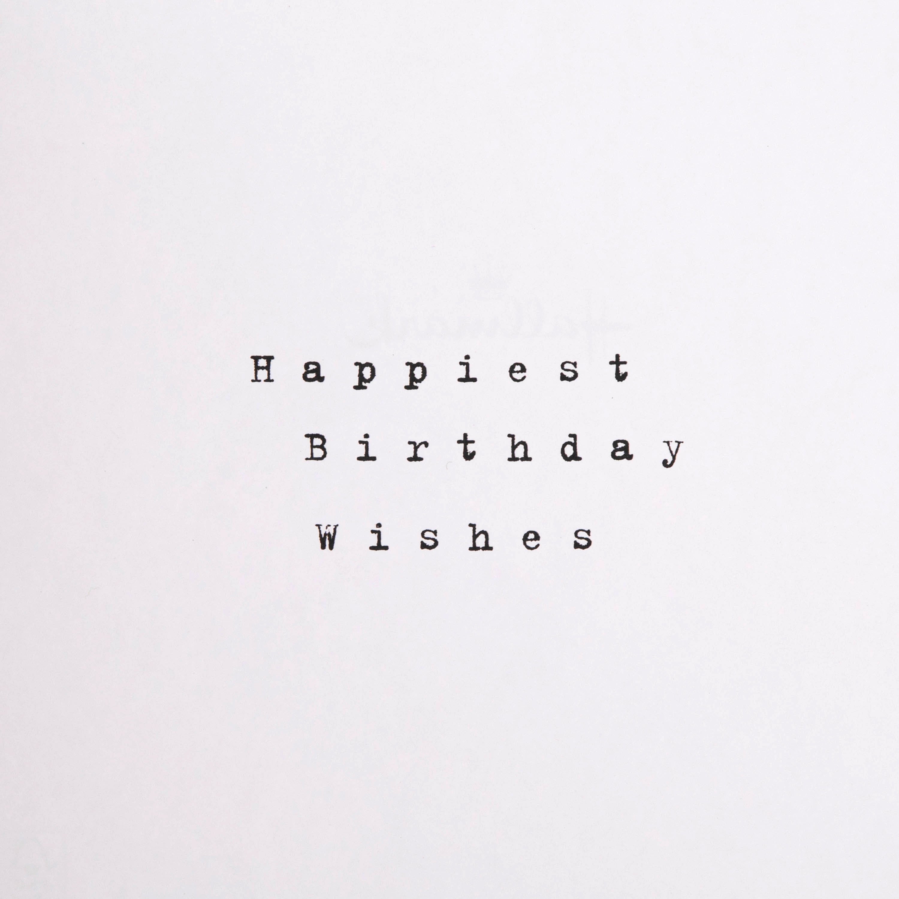 Printed on high-quality board, this card features gold paper raffia embellishment, a 3D die cut attachment, embossed elements, gold foil lettering and details, and comes complete with a Hallmark branded, pink envelope.