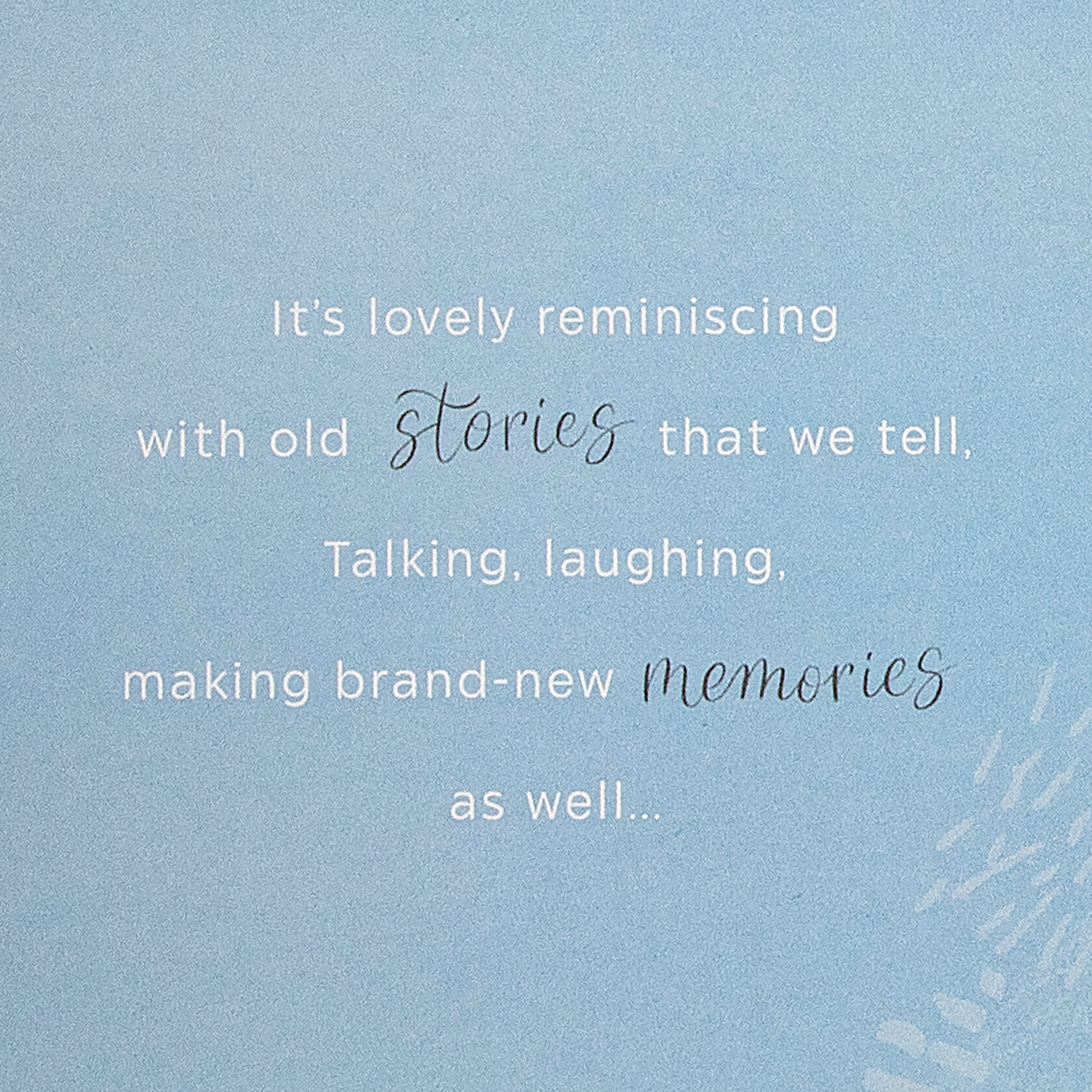 Message Inside Reads: It's lovely reminiscing with old stories that we tell, Talking, laughing, making brand-new memories as well...