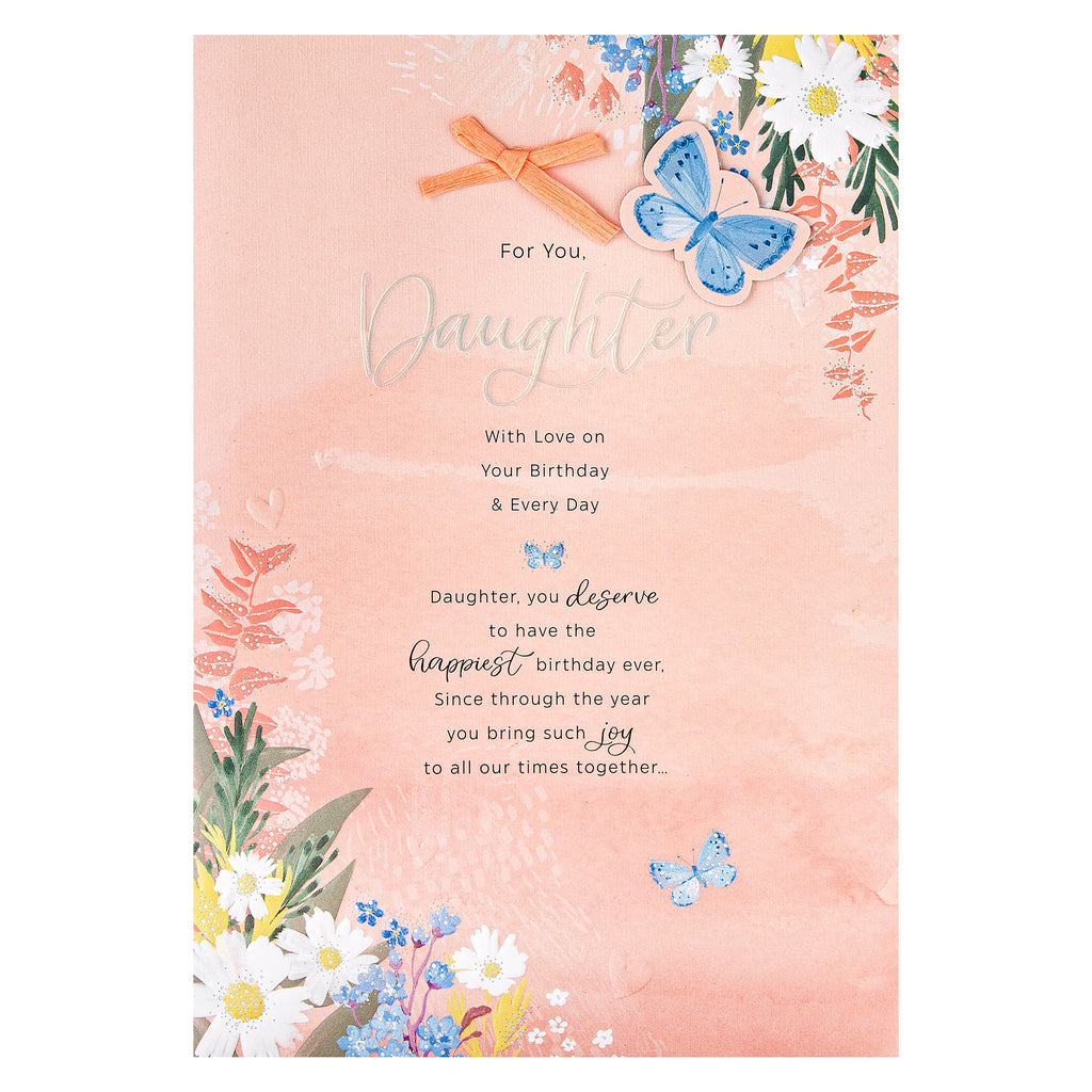 Message On Front Reads: For You, Daughter With Love on Your Birthday & Every Day. Daughter, you deserve to have the happiest birthday ever, Since through the year you bring such joy to all our times together...