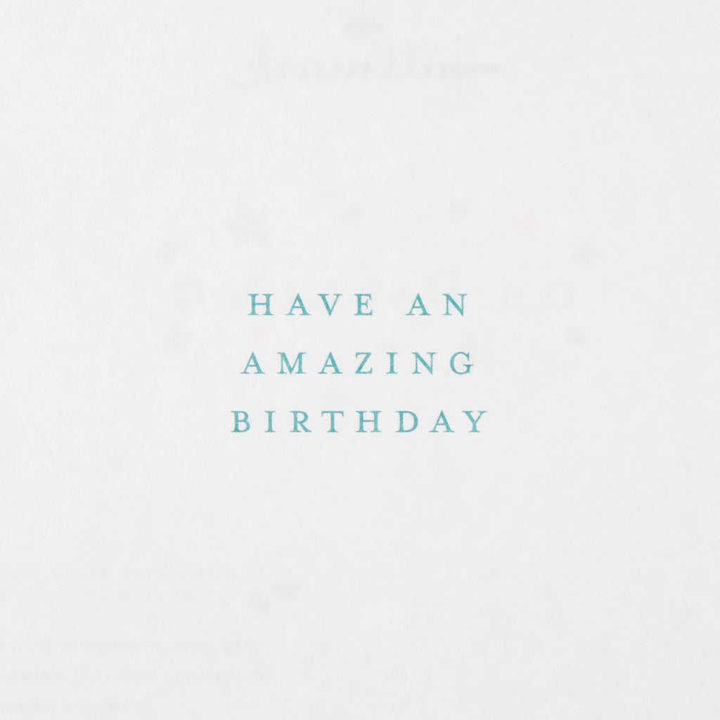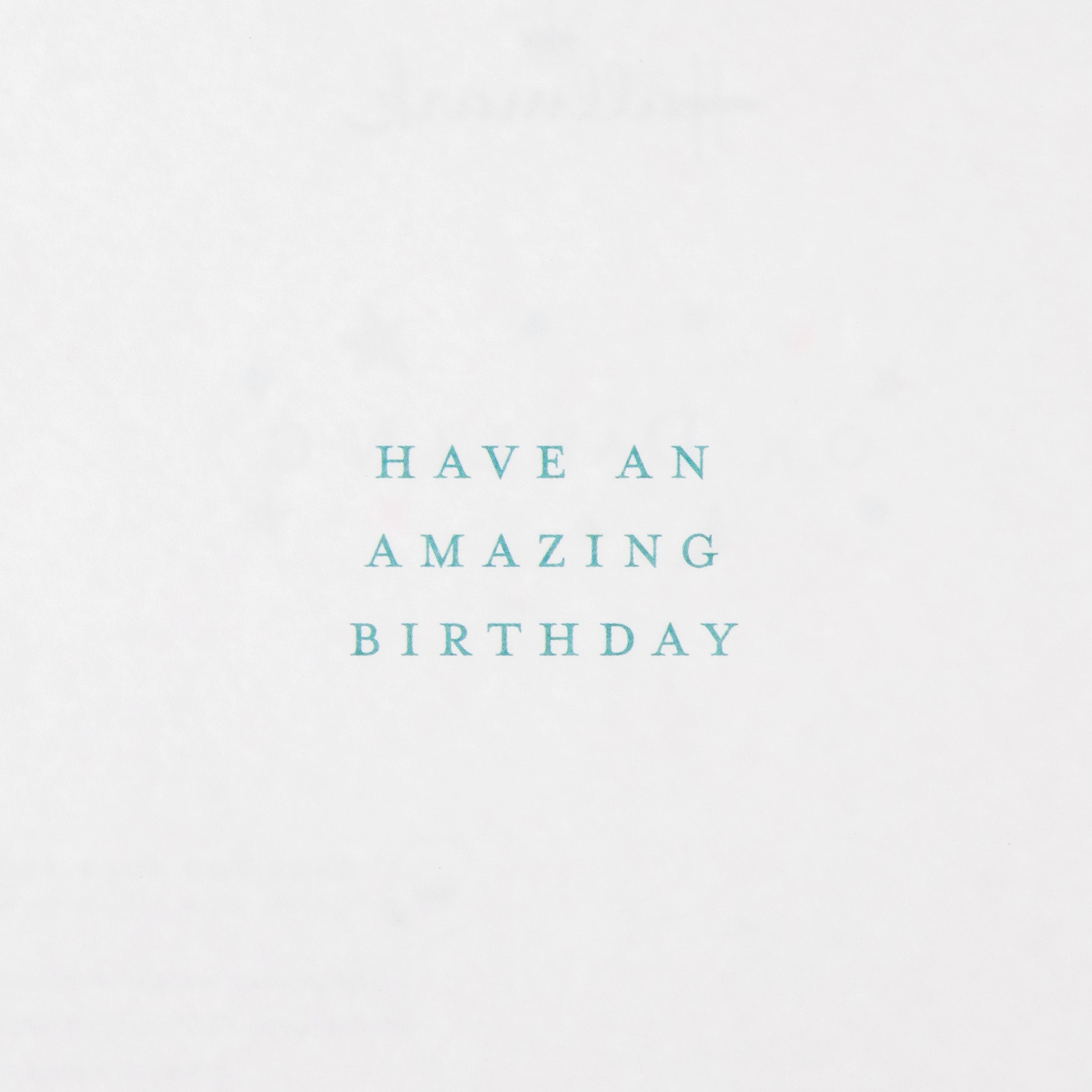 Printed on high-quality textured board, this card features embossed elements, textured embossed foil elements, neon print design, shaped edges, and comes complete with a co-ordinating Hallmark branded, Kraft envelope.