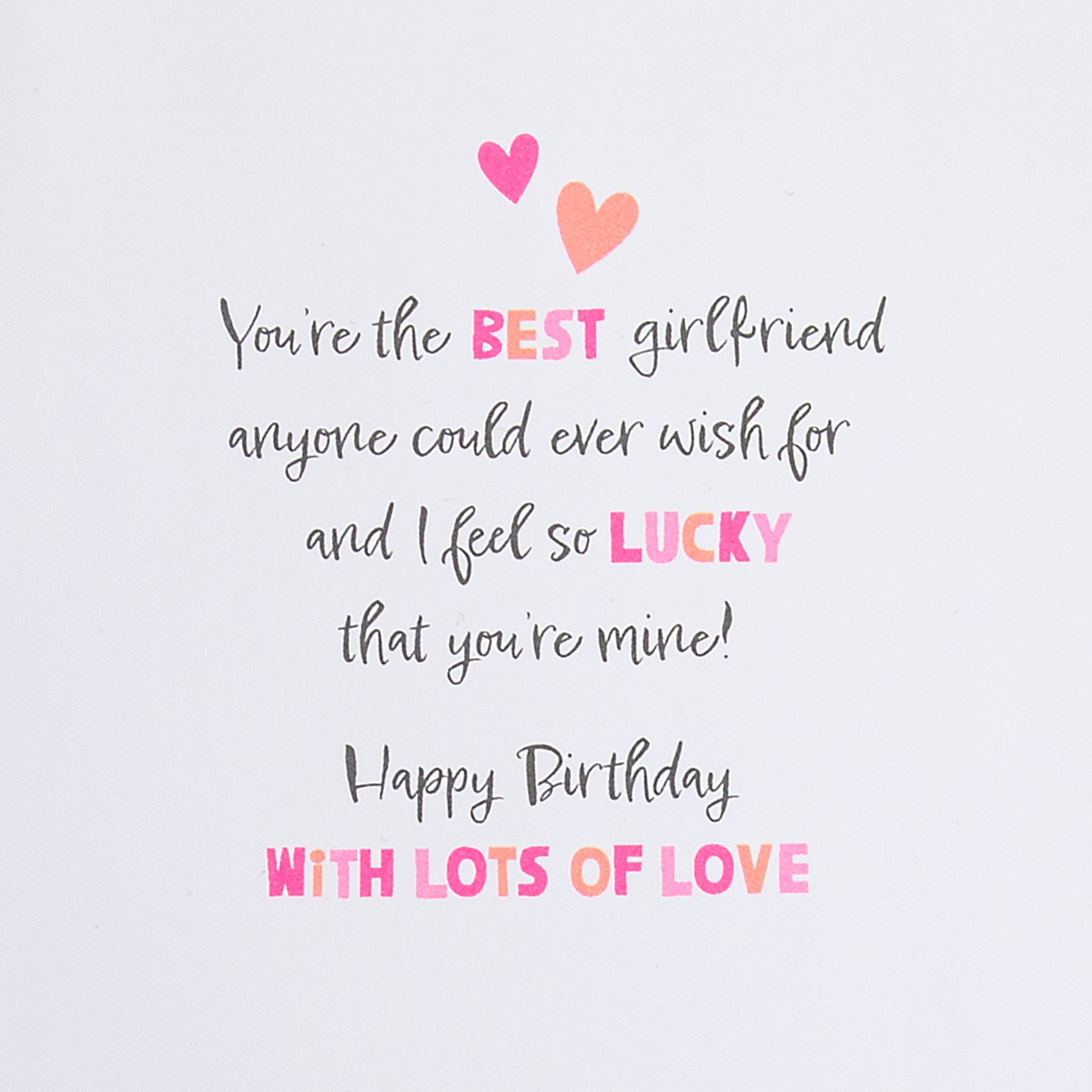 Message On Front Reads: For My Amazing Girlfriend WITH LOTS OF LOVE. You deserve a million birthday hugs & kisses because you're extra-special all year!
