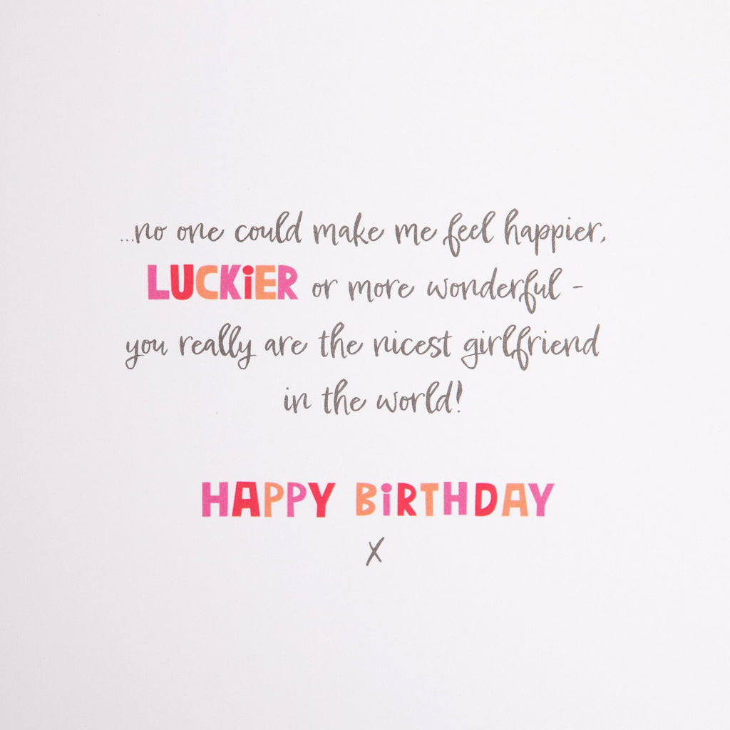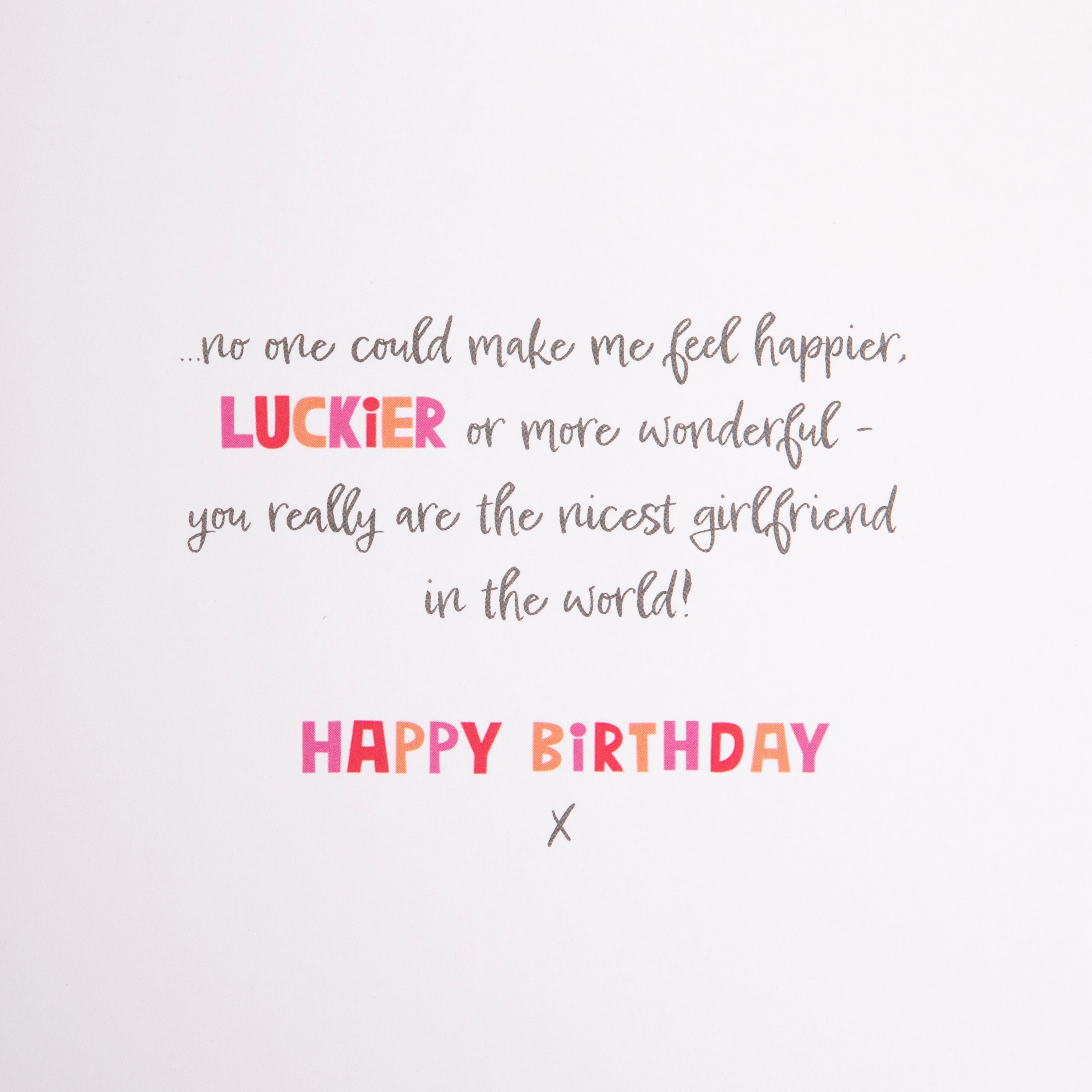 Message Inside Reads: There's nothing nicer than having an amazing girlfriend like you… no one could make me feel happier, luckier or more wonderful - you really are the nicest girlfriend in the world! Happy birthday x