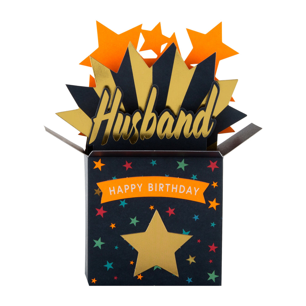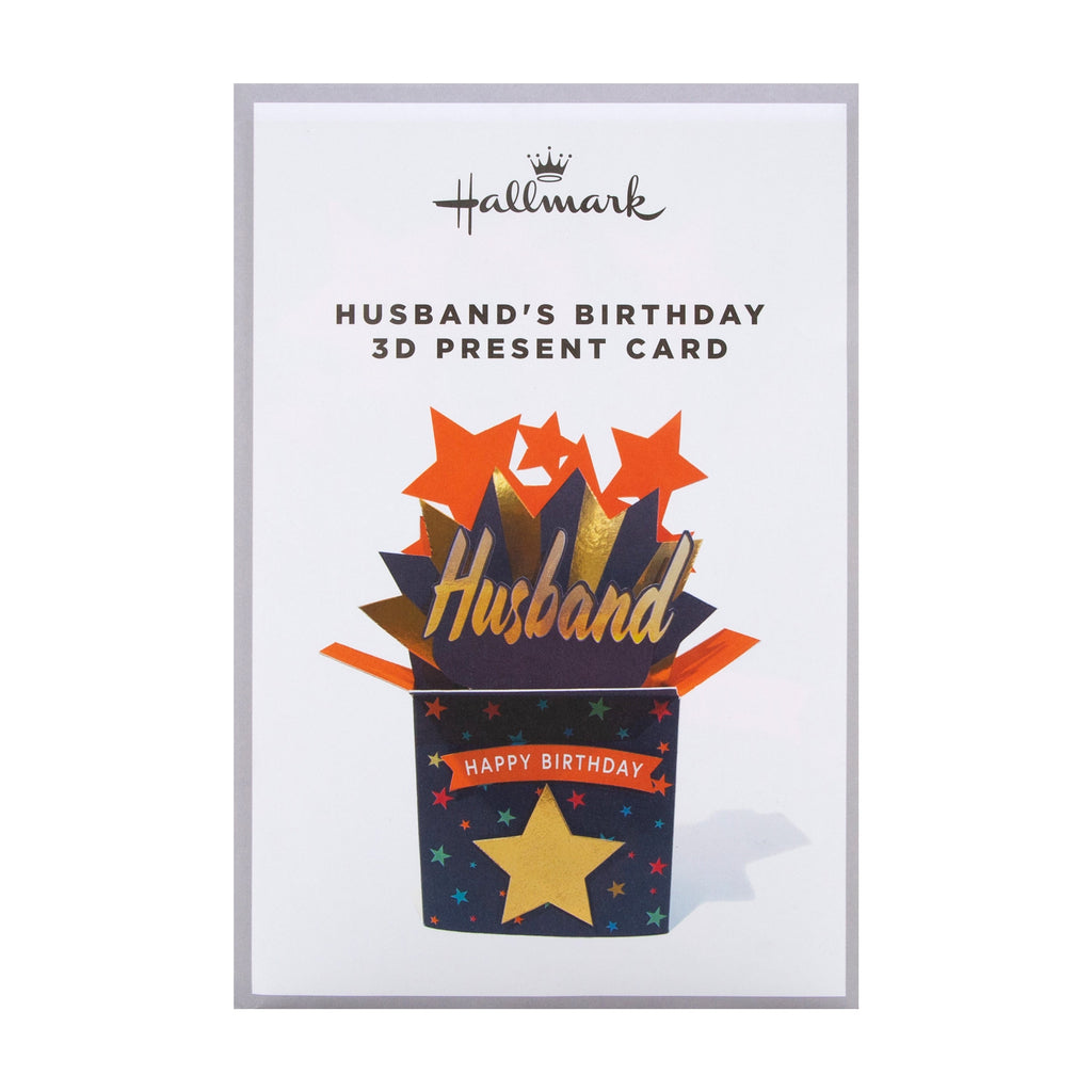 Send your Husband a present full of love on his Birthday, with this striking 3D gift box themed card.