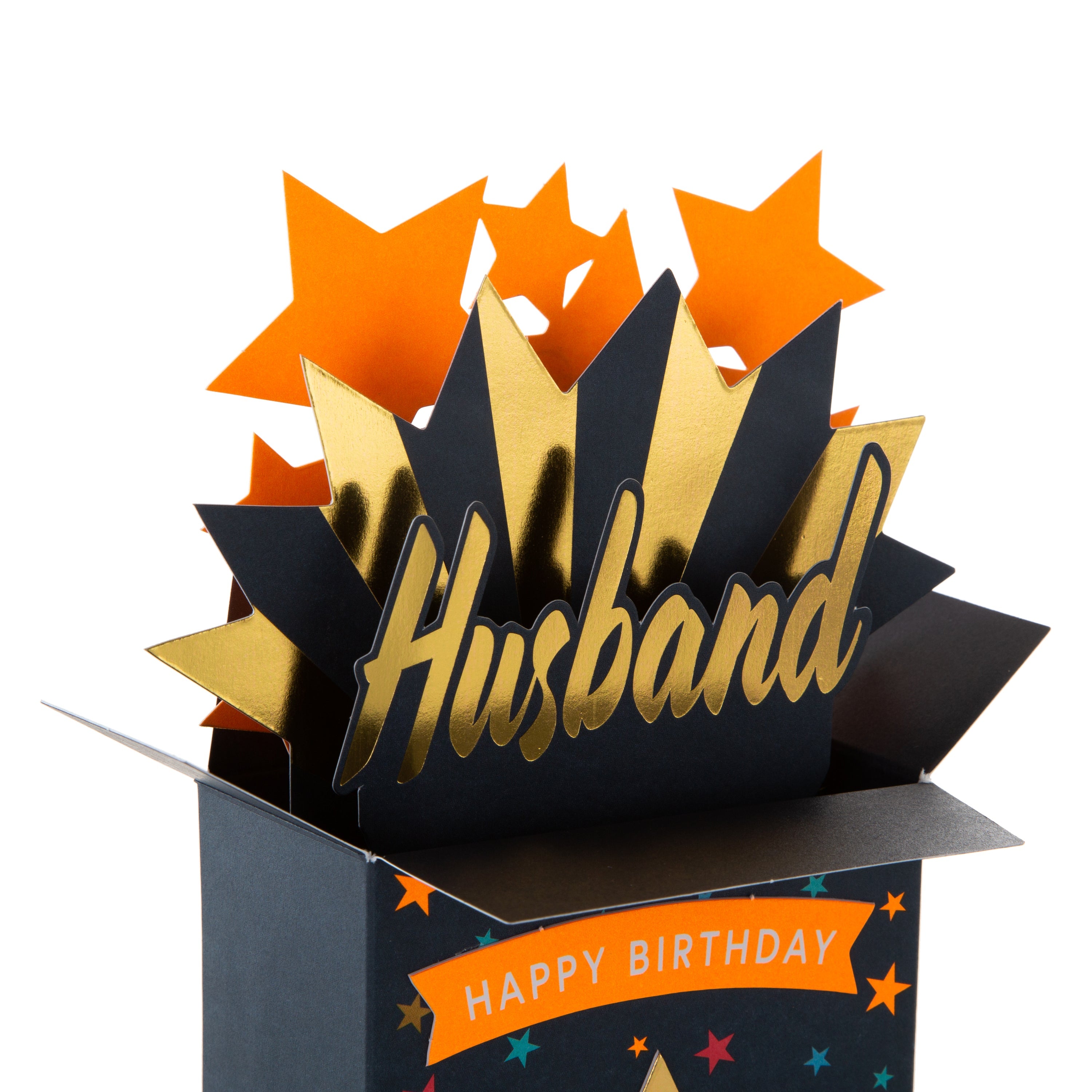 Birthday Card for Husband - 3D Celebration & Stars Design
