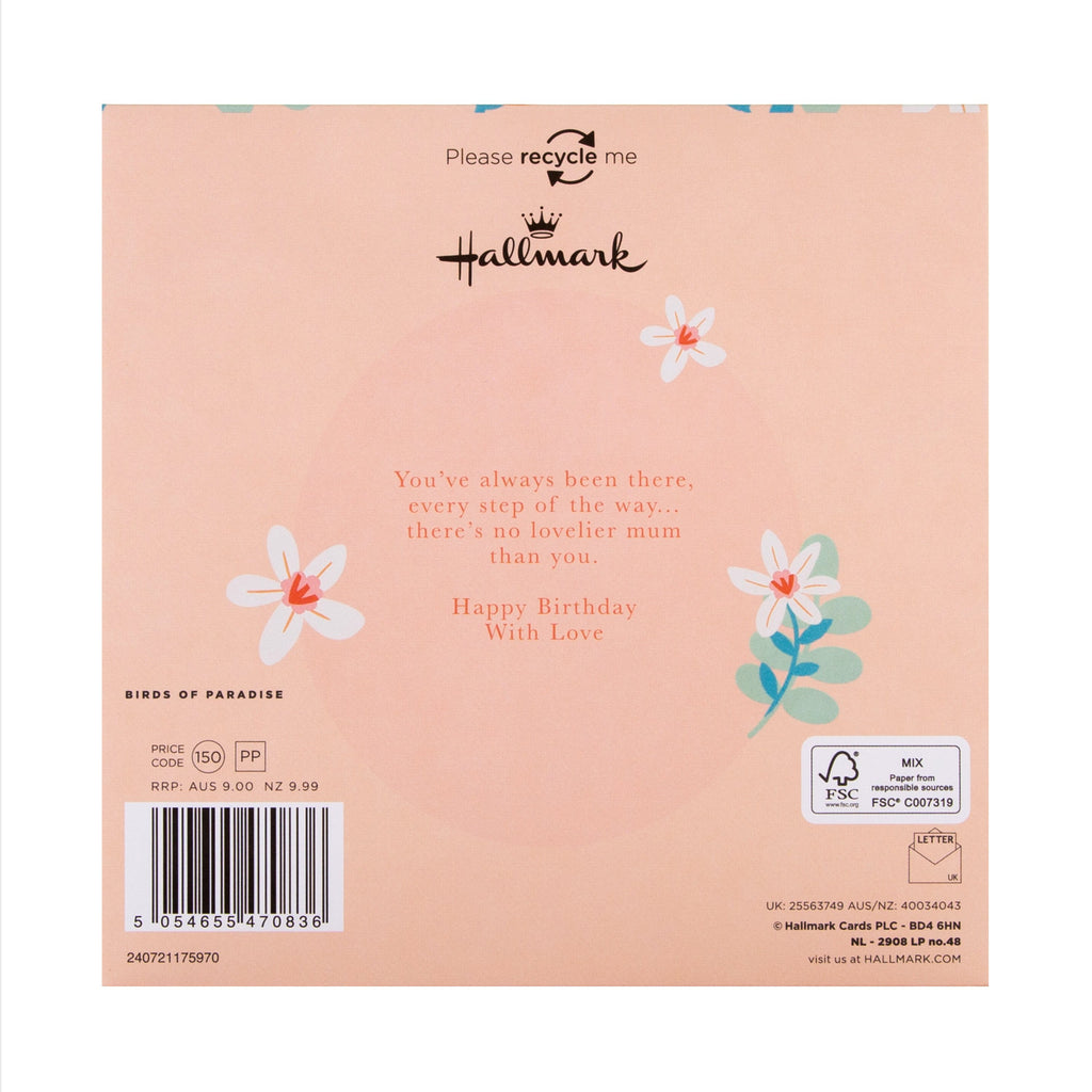 Message on back reads: You've always been there, every step of the way…there's no lovelier mum than you. Happy Birthday With Love
