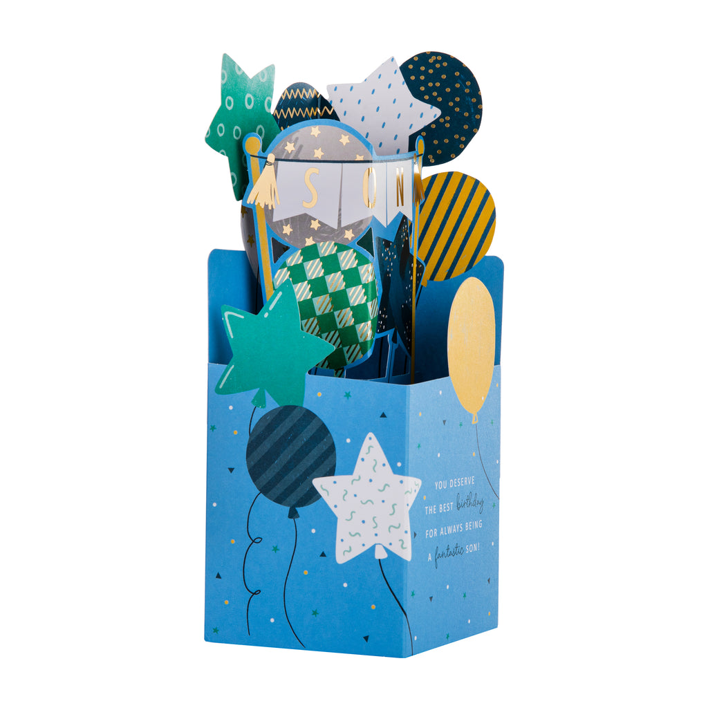 Birthday Card for Son - 3D Pop-Up Star Balloons Design