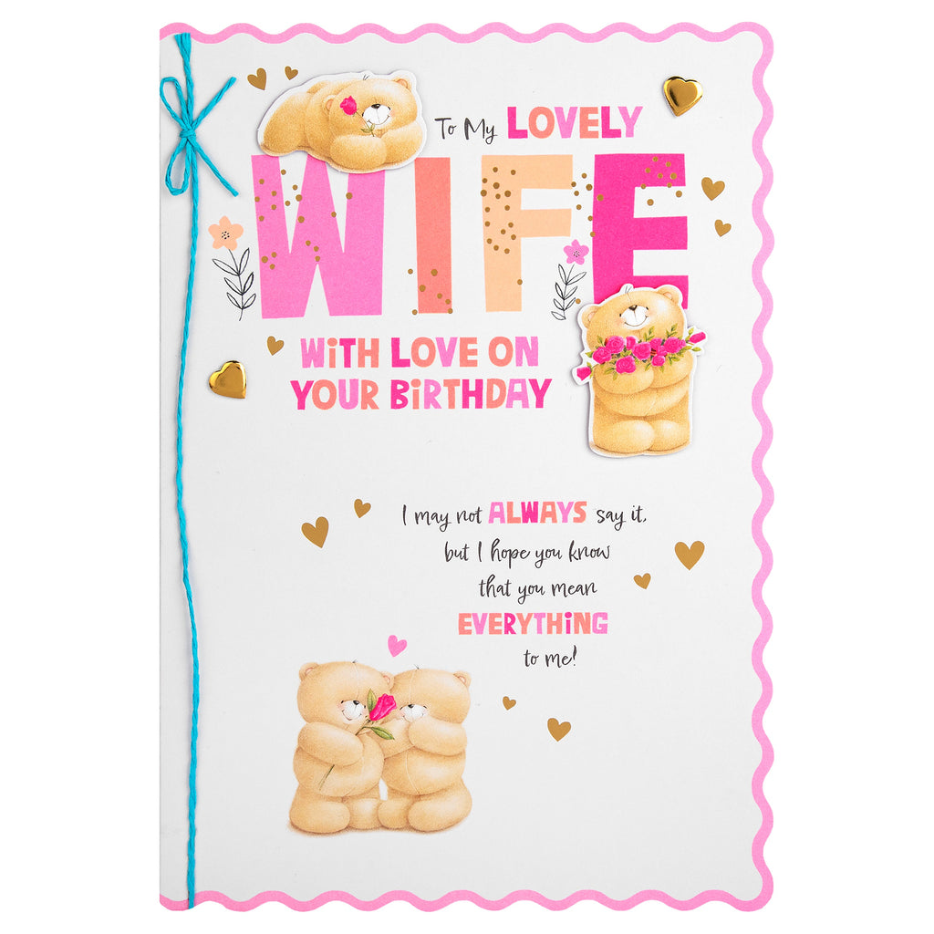 Bring so much love and warmth to your wife on her special day, with this adorable Birthday card. The perfect way to celebrate all your love with Hallmark's timeless Forever Friends Bears.