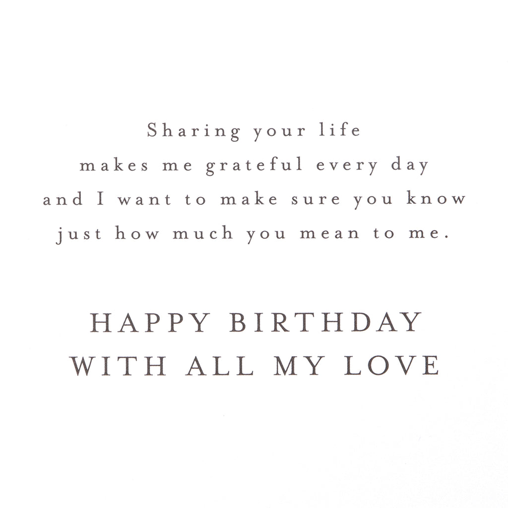 Message Inside Reads: Sharing your life makes me grateful every day and I want to make sure you know just how much you mean to me. Happy Birthday with all my love