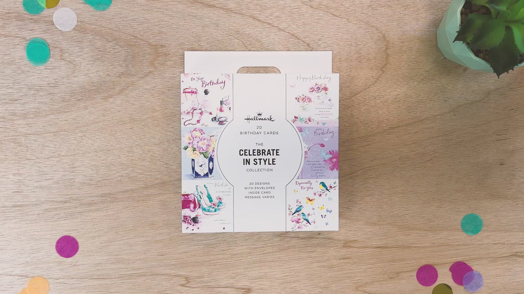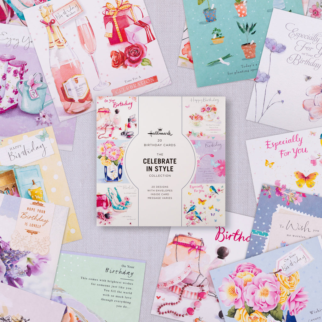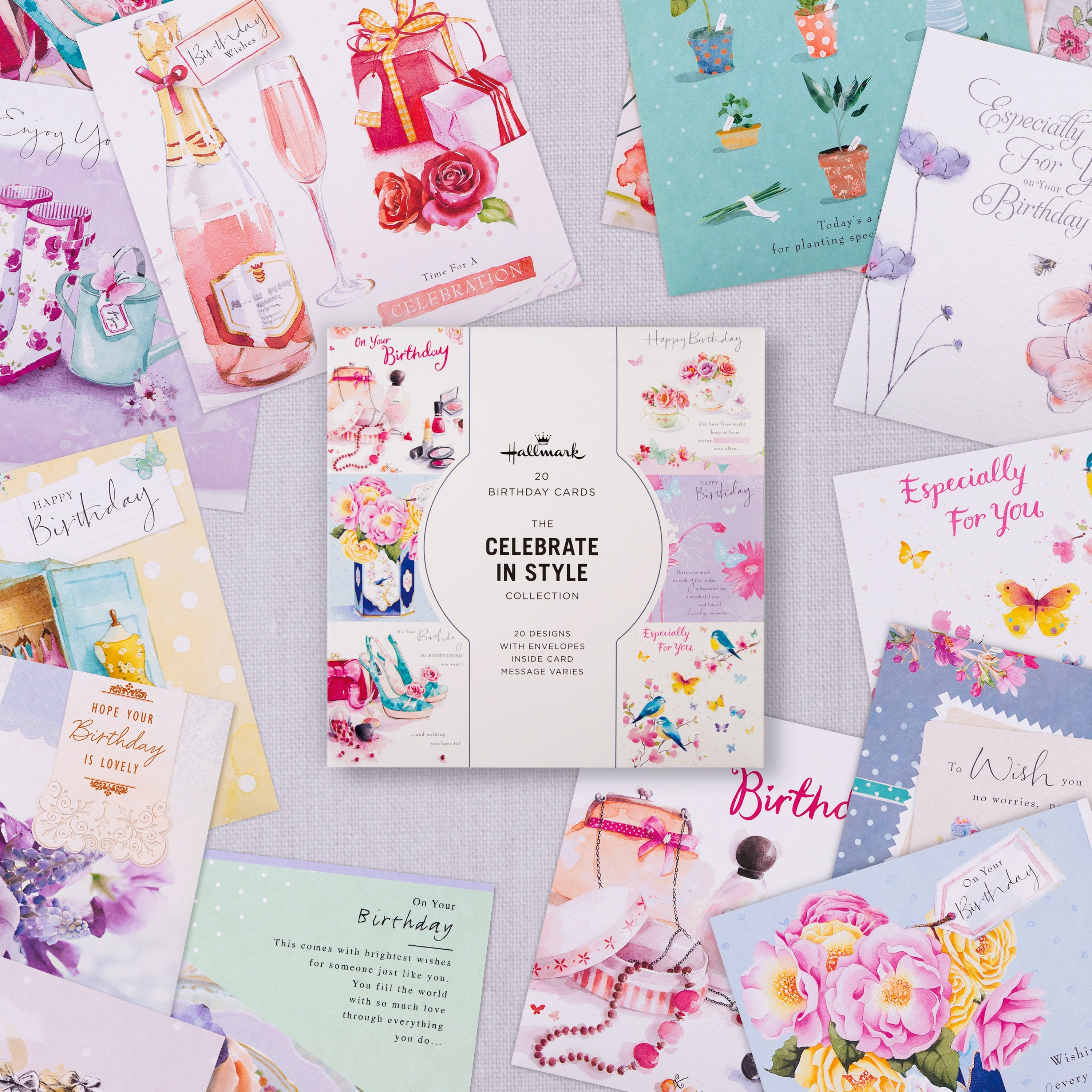 Printed on high-quality board, this pack of 20 birthday cards comes in 20 stylish designs, each card features an uncoated matte finish; the cards come compete with co-ordinating white, Hallmark branded envelopes