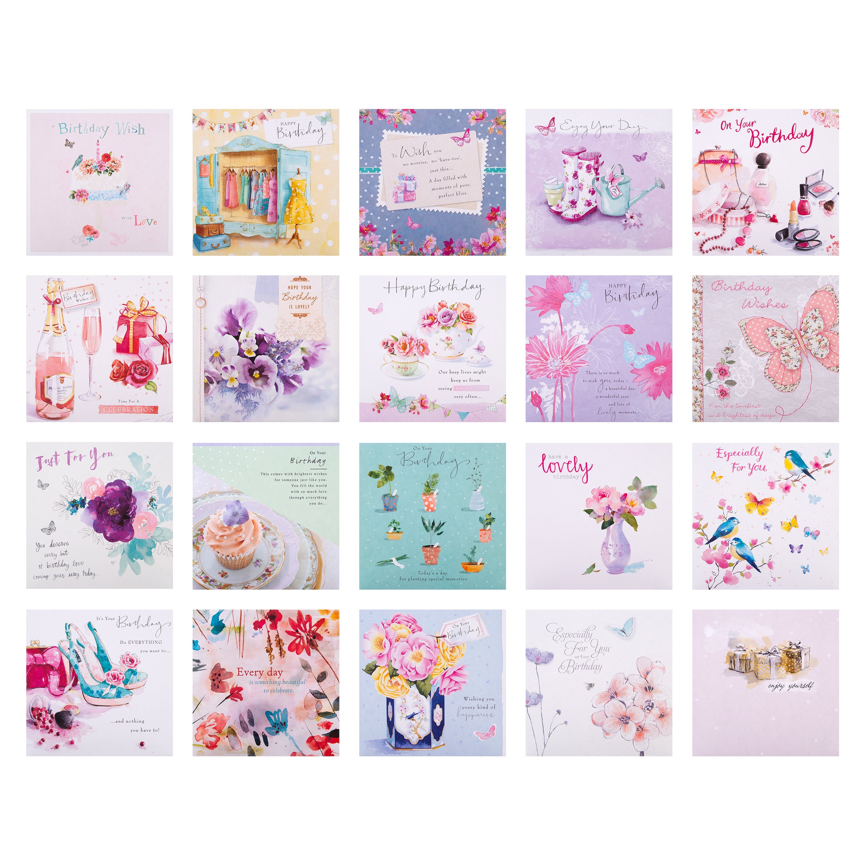 Birthday Cards - Multipack of 20 in 20 Floral Designs