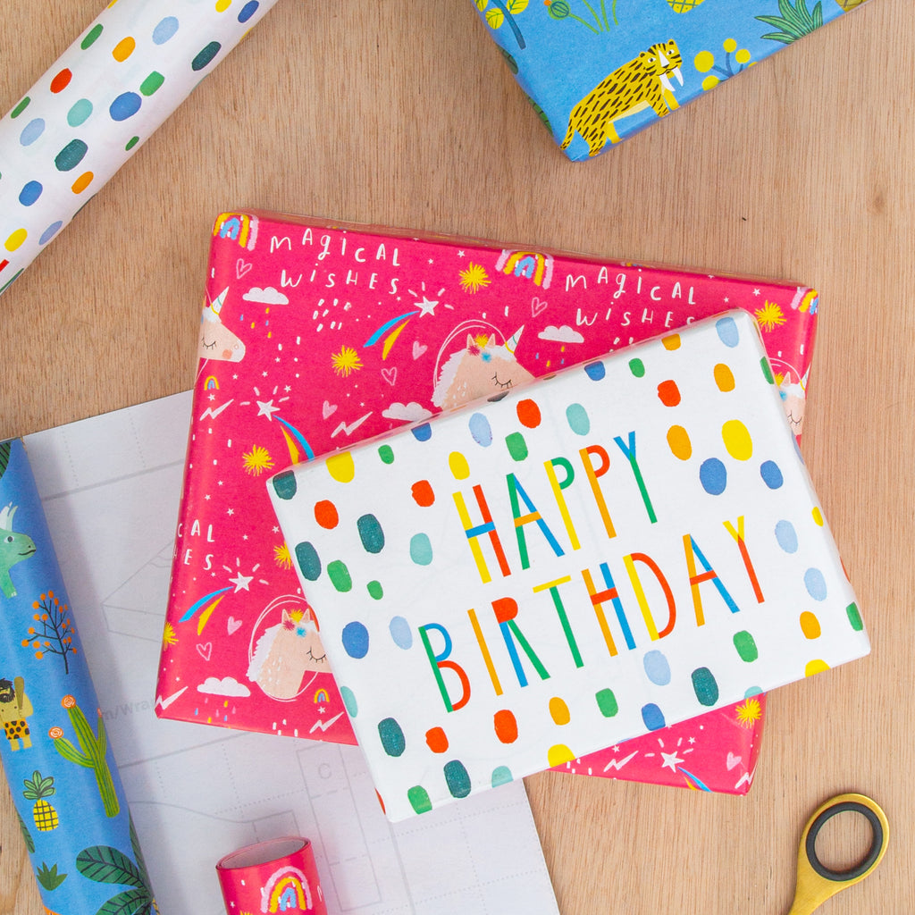 6M Birthday Wrapping Paper Pack for Kids - 3 x 2M Rolls in 3 Fun Designs