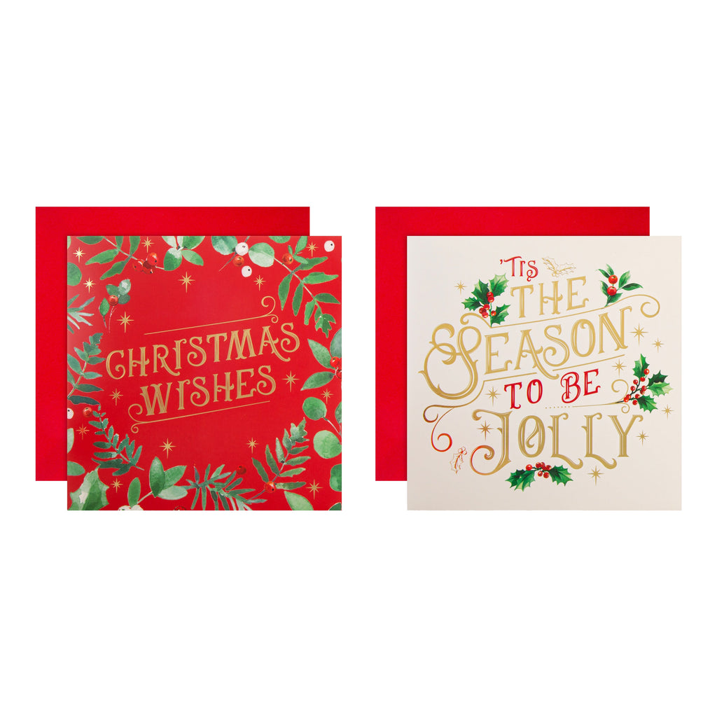 Printed on high-quality board, the cards feature gold foil details and come complete with co-ordinating red, Hallmark branded envelopes.