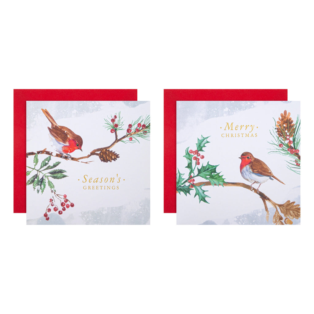 Send Season's Greetings with everyone's favourite festive bird, the robin, with this pack of 16 charity Christmas cards, in 2 Robin designs.