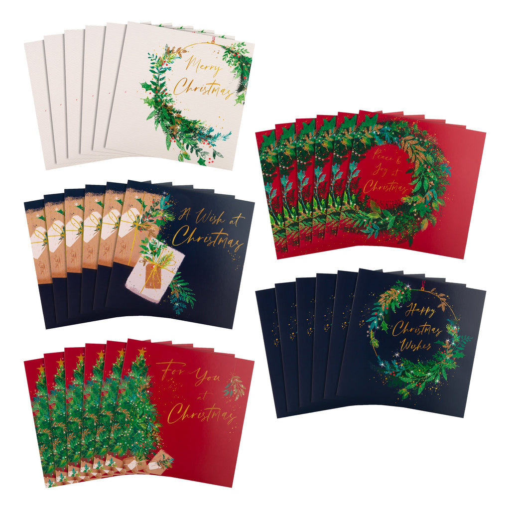 Charity Christmas Cards - Pack of 30 in 5 Classic Wreath Designs
