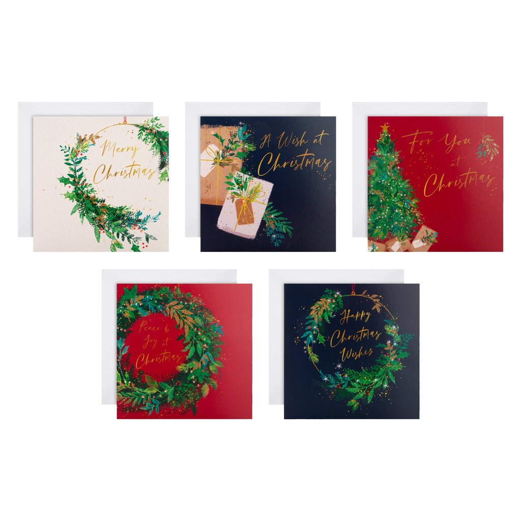 Printed on high-quality board, these cards feature 5 festive foliage designs with a gloss finish on all cards and come complete with co-ordinating white, Hallmark branded envelopes.