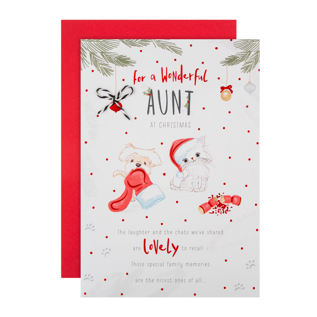 Christmas Card for Aunt - Cute Poppy & Frank Festive Design