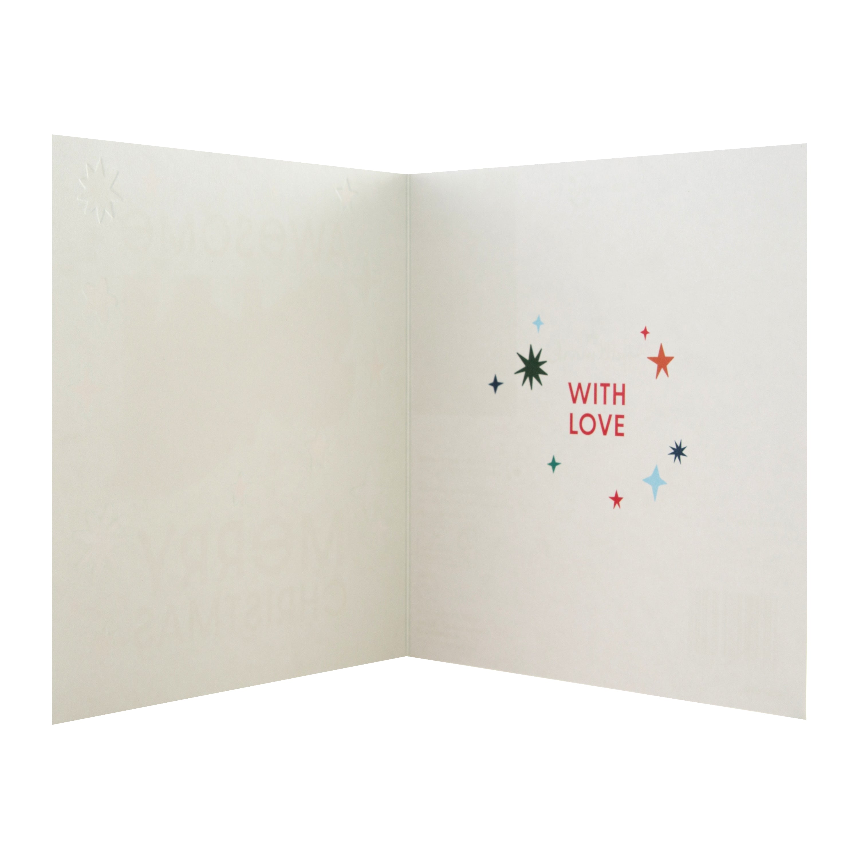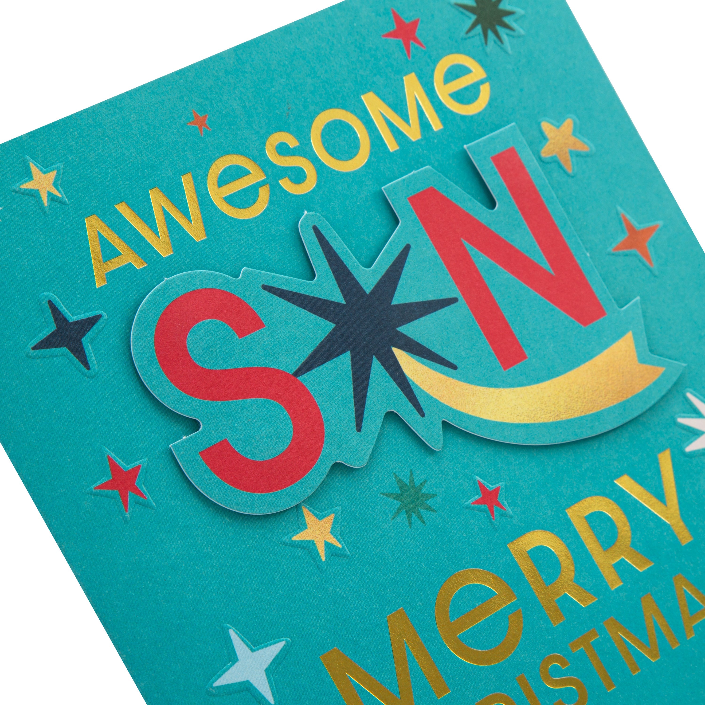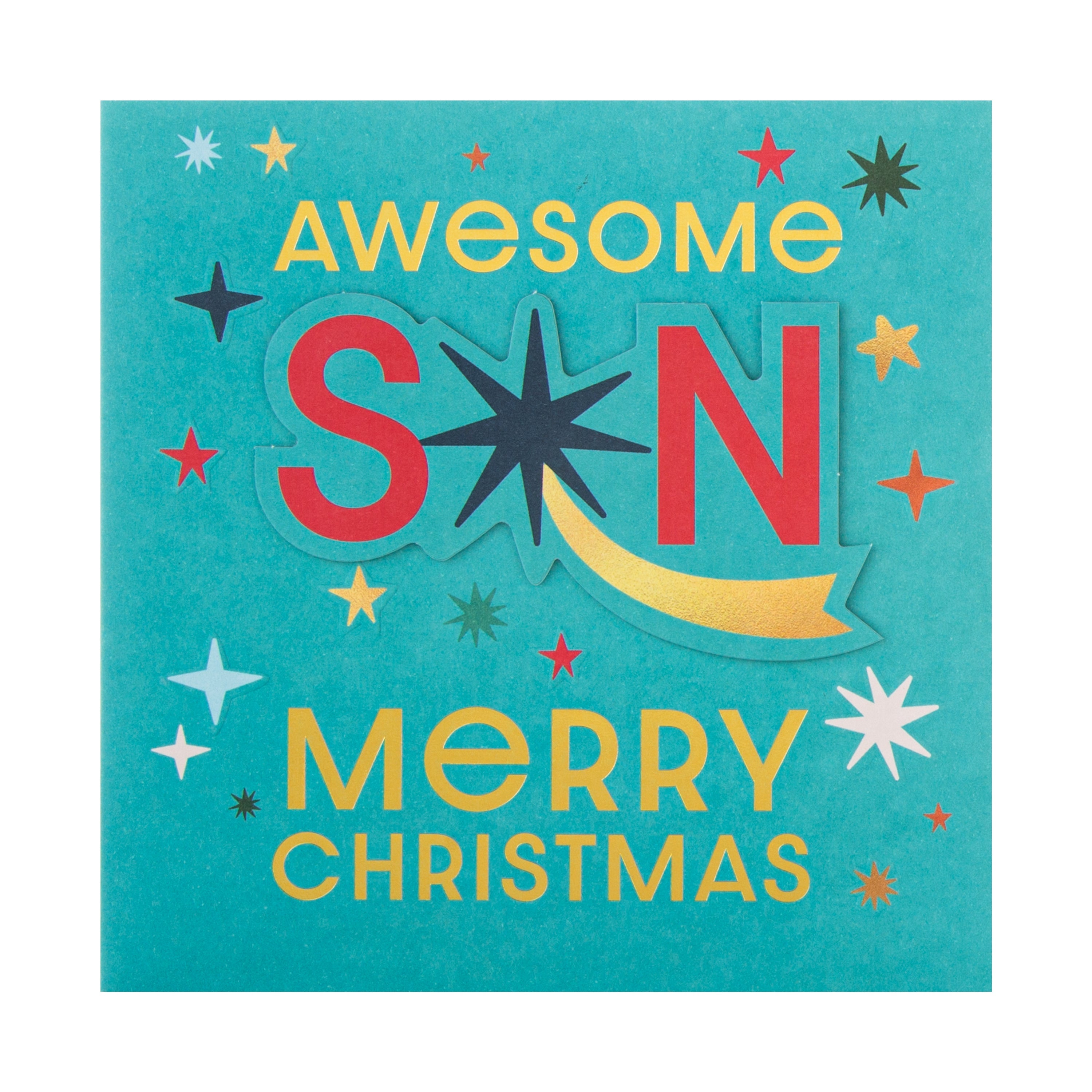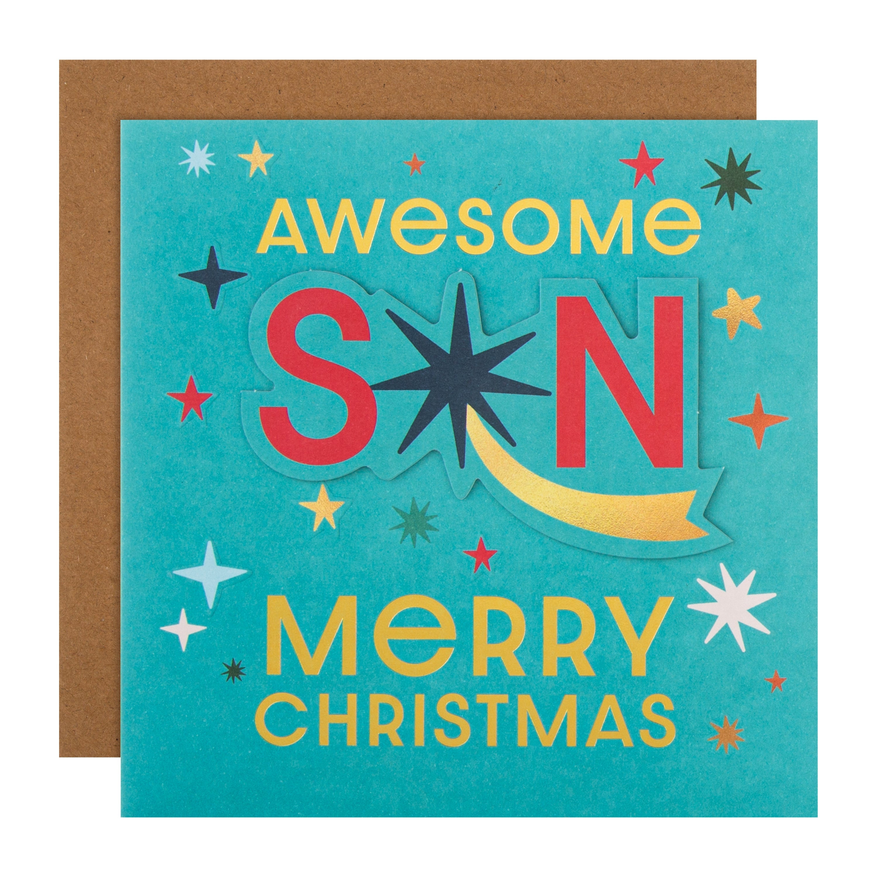 Make sure your awesome son has a fantastic festive season and celebrate all season long, with this bold and bright card,