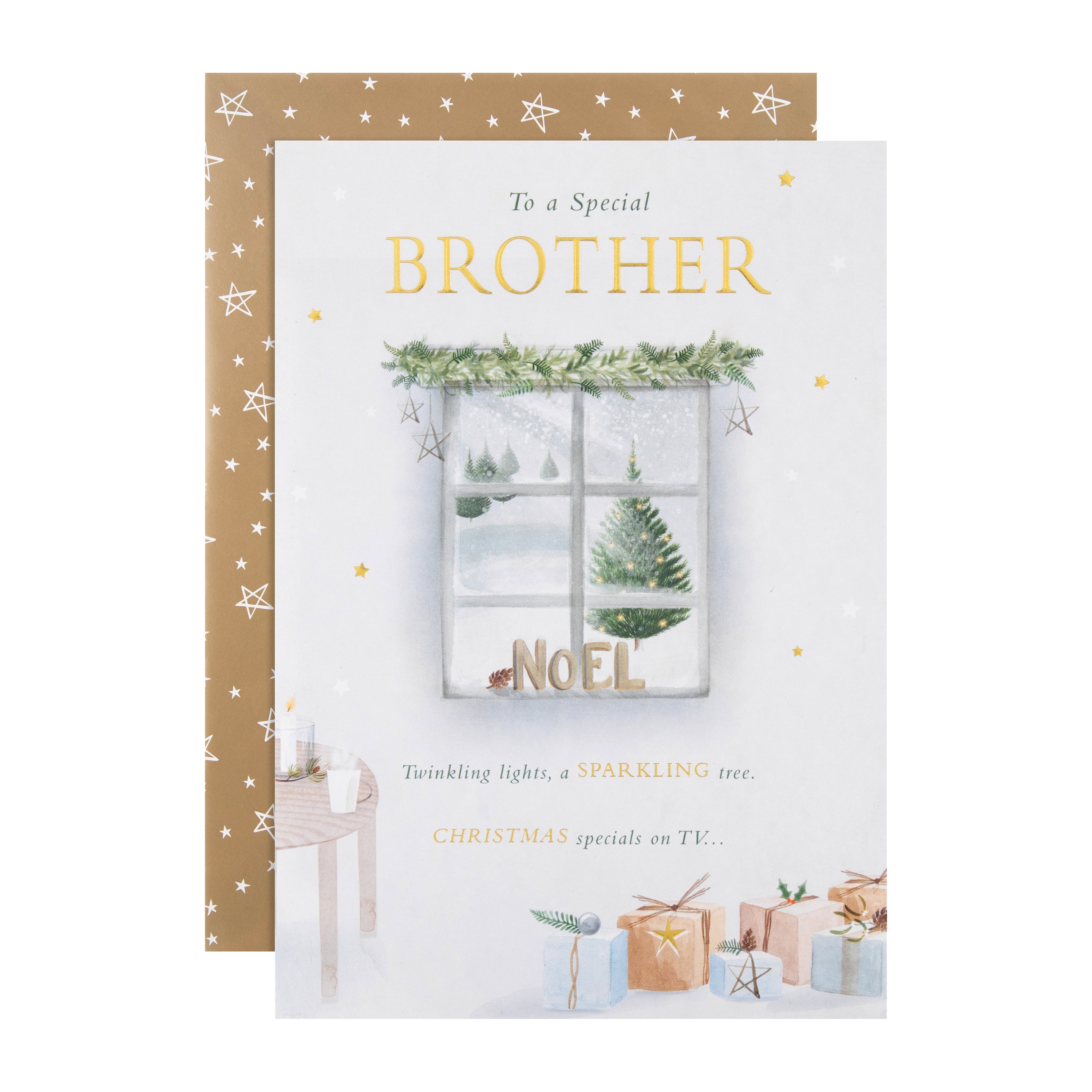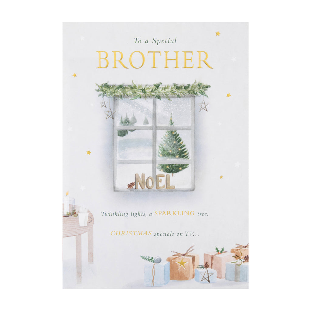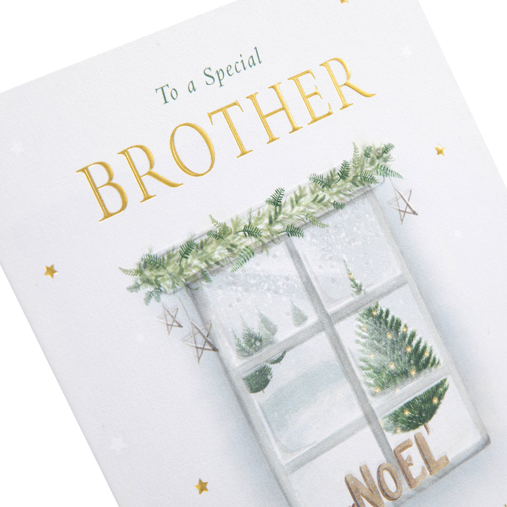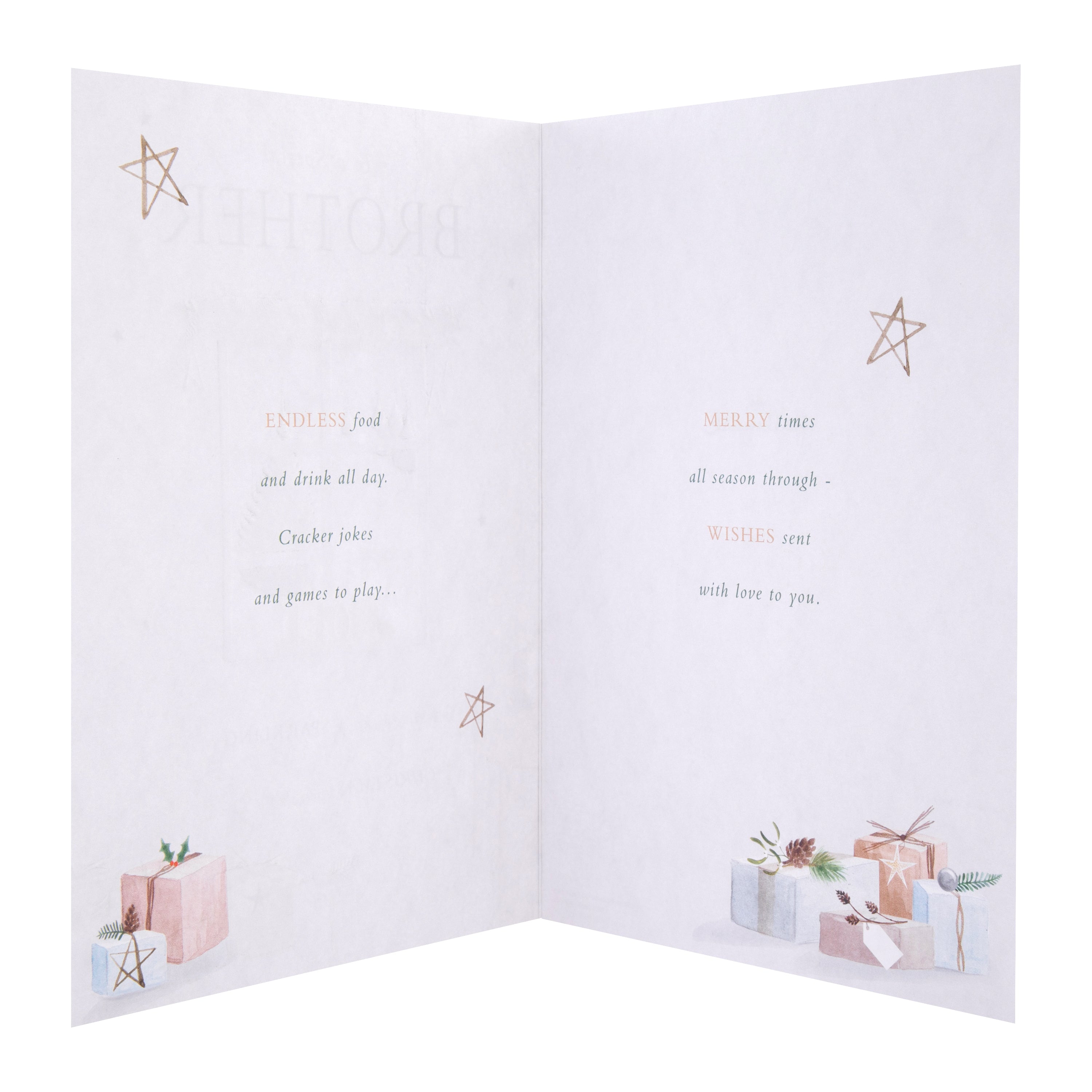 Send some special festive wishes to a dear brother with this beautifully illustrated, classic Christmas card.