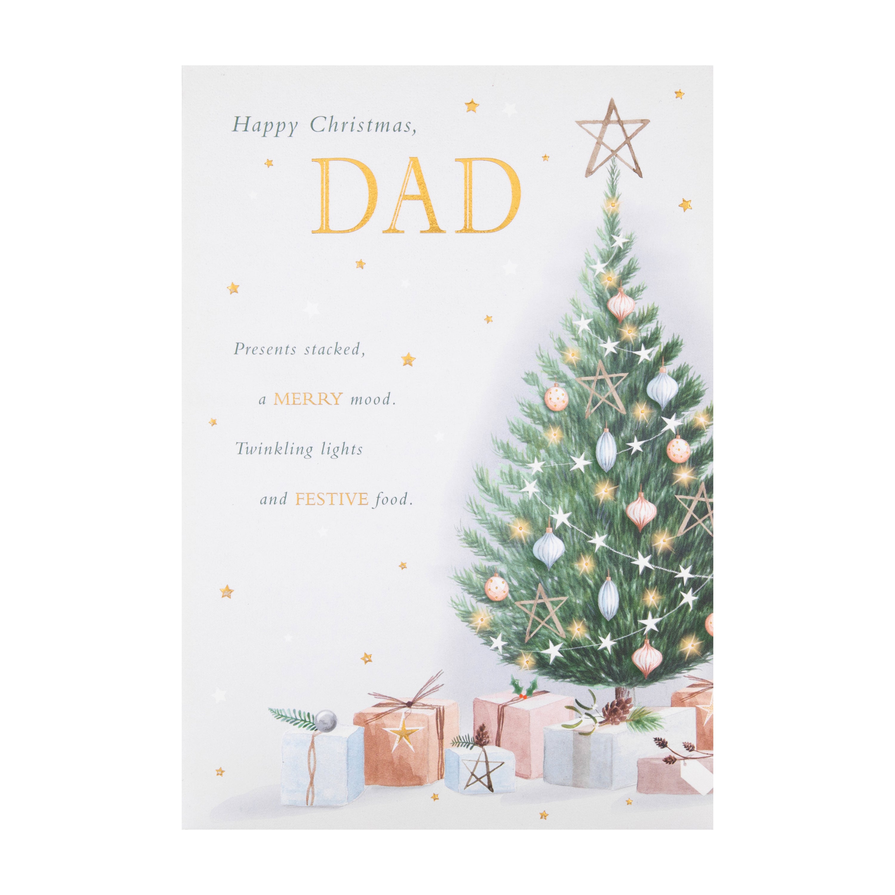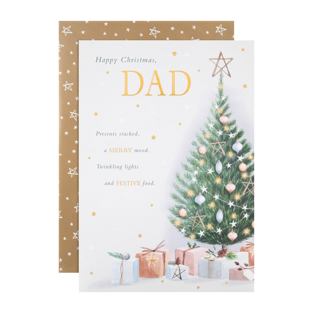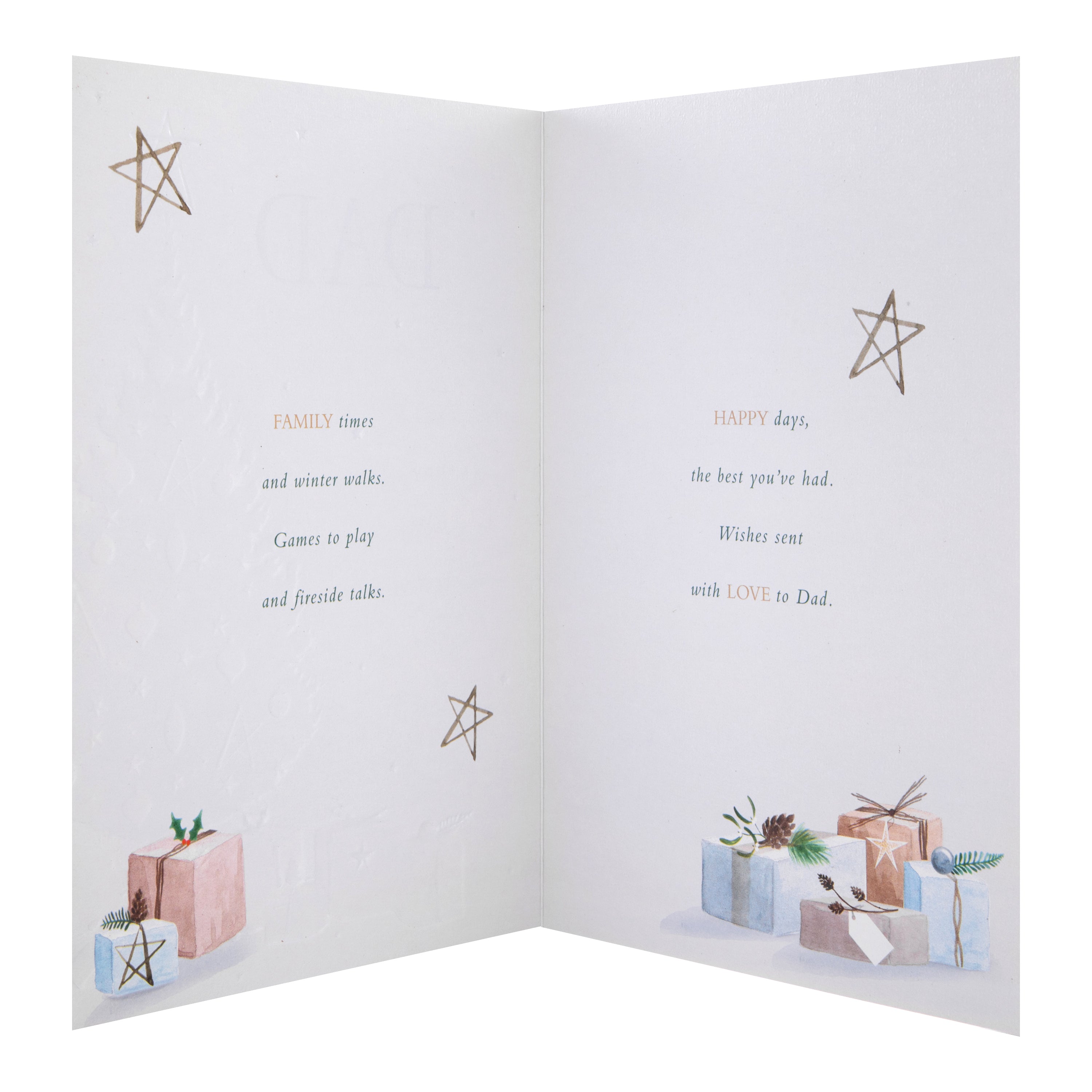 Send a special Christmas wish to Dad and remind him of all the special festive moments you've shared with this lovely card .