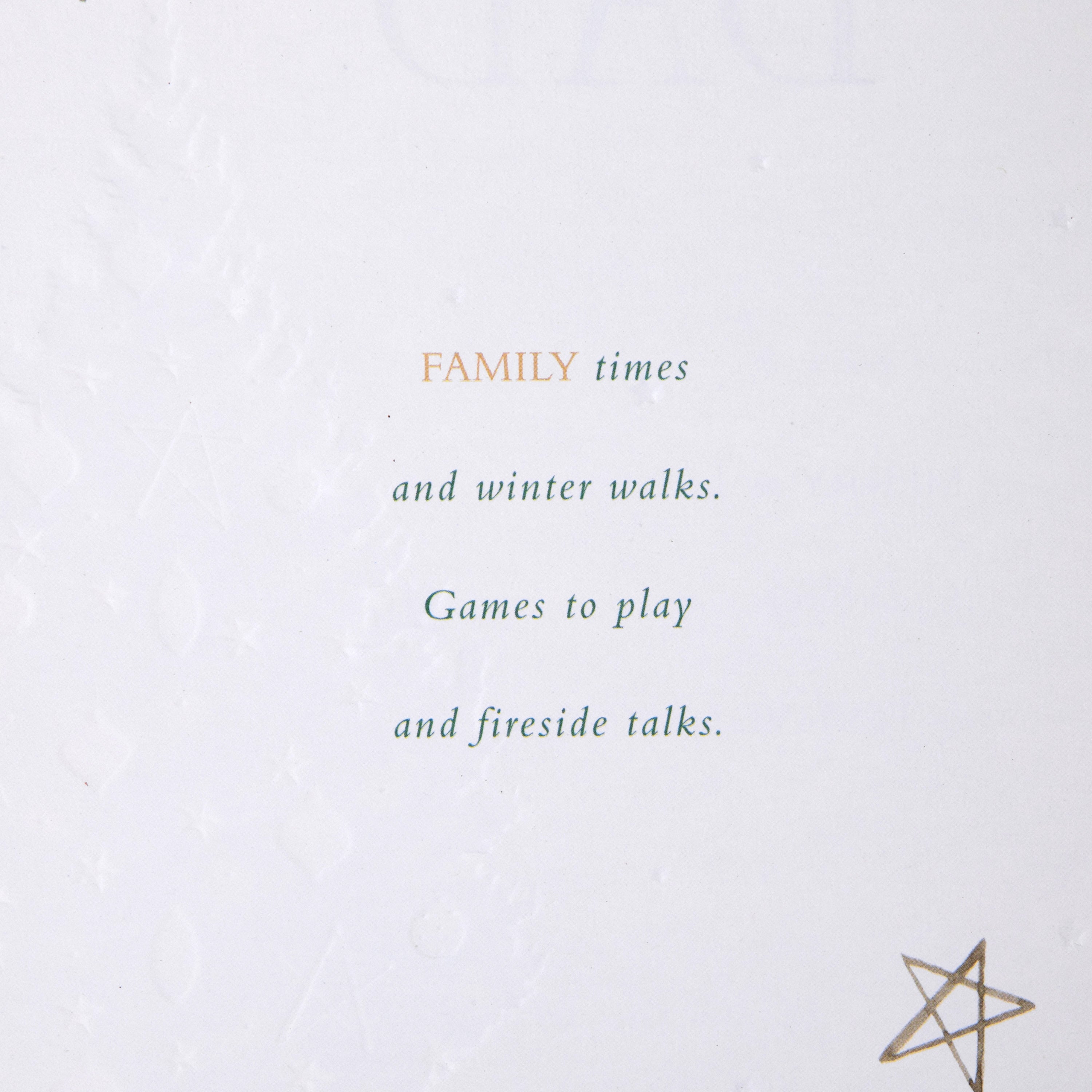 Features Textured Board, Textured Gold Foil Lettering and Design Details, Embossed Elements and a Co-ordinating Star Patterned, Hallmark Branded Envelope.